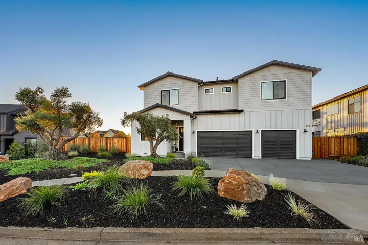Set on a cul-de-sac in Santa Rosa's sought-after Fountaingrove neighborhood, this newly completed single-level residence offers exceptional modern design and energy efficiency. The open floor plan features 10-foot ceilings, engineered hardwood floors, and large windows that fill the home with natural light.