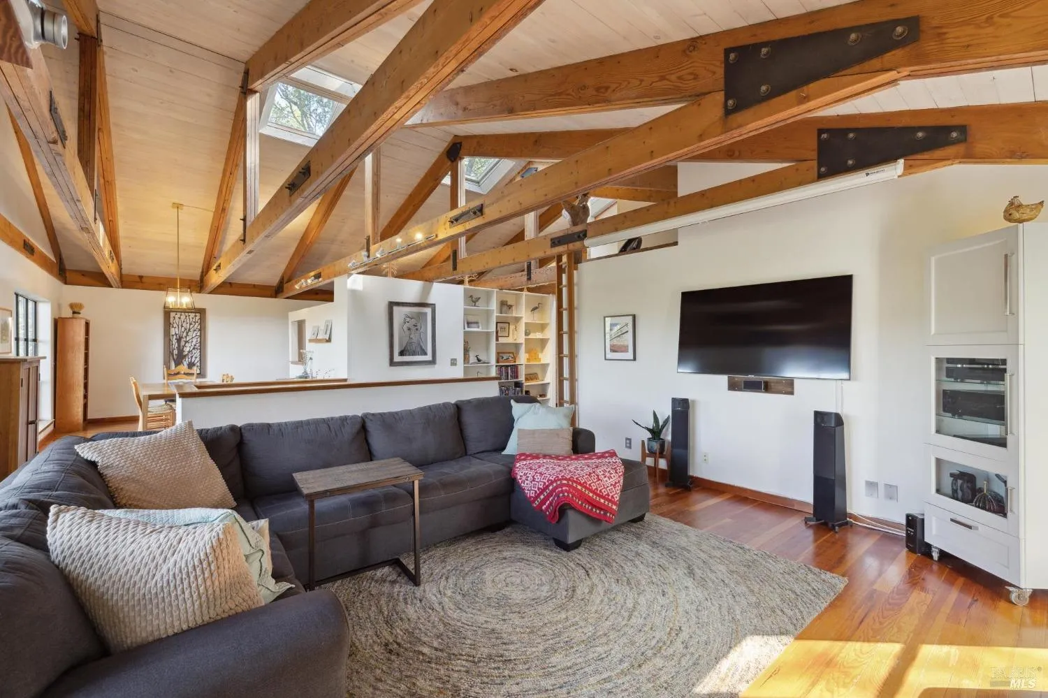 Nestled on the NW hillside of Sonoma Mountain, this stunning Penngrove home has been thoughtfully refreshed and is ready to impress. With recently replaced roofs and rebuilt decks, this is an ideal opportunity for buyers seeking peace of mind and move-in-ready comfort. This nearly 2000 SF, 3 Bd, 2.5 Ba home sits on a serene 1.77 acre lot with vibrant perennial gardens and no grass to mowperfect for low-maintenance living. Soaring vaulted ceilings with exposed beams, expansive windows, and an open layout invite natural light and sweeping views. The living room features a cozy wood-burning fireplace, while the chef’s kitchen offers modern appliances, a quartz island with prep sink, and a sunny window seat. The dining room opens via a pass-through window for easy entertaining. The main floor primary suite includes an office, walk-in closet, and ensuite bath. Downstairs bedrooms boast built-ins and hillside views. Extras include a 425 SF day studio, a 500 SF workshop, a 200 SF cabin, citrus trees, fountains, and a tranquil wading pool. A peaceful retreat with modern comforts and recent upgradescome see what’s new!