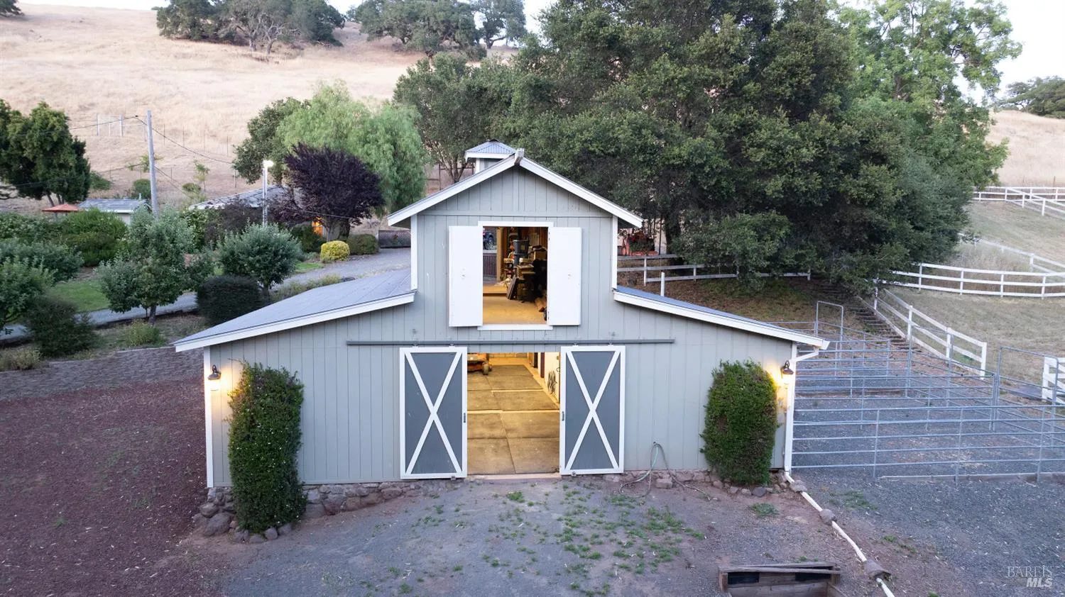 Stunning wine country estate proudly positioned on over 25 prime acres with gorgeous views. Main house features vaulted ceilings, rich hardwood flooring, an expansive living room with stone surround fireplace, chef’s kitchen with high-end appliances and double French doors that lead to a wrap-around deck overlooking the swimming pool, spa and lovely pastoral grounds. The adjacent pool house offers additional living space, a kitchenette and bathroom. Interested in horses? This property offers a six-stall barn, paddocks and an outdoor arena. Hobby vineyard and owned solar.