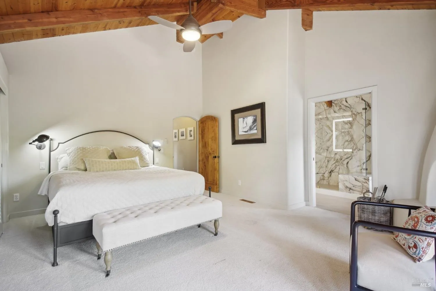 Prime Eastside Sonoma location just steps from the Plaza. This original 1925 bungalow has been artfully transformed into an architectural masterpiece. 4 bedroom/3 bath with detached guest house. Interior features include 2 fireplaces, exposed open beam ceilings, hardwood floors, and master bedrooms on both floors. Large balcony overlooking the very private backyard with saline pool and lush landscaping. Detached guesthouse with full bath.