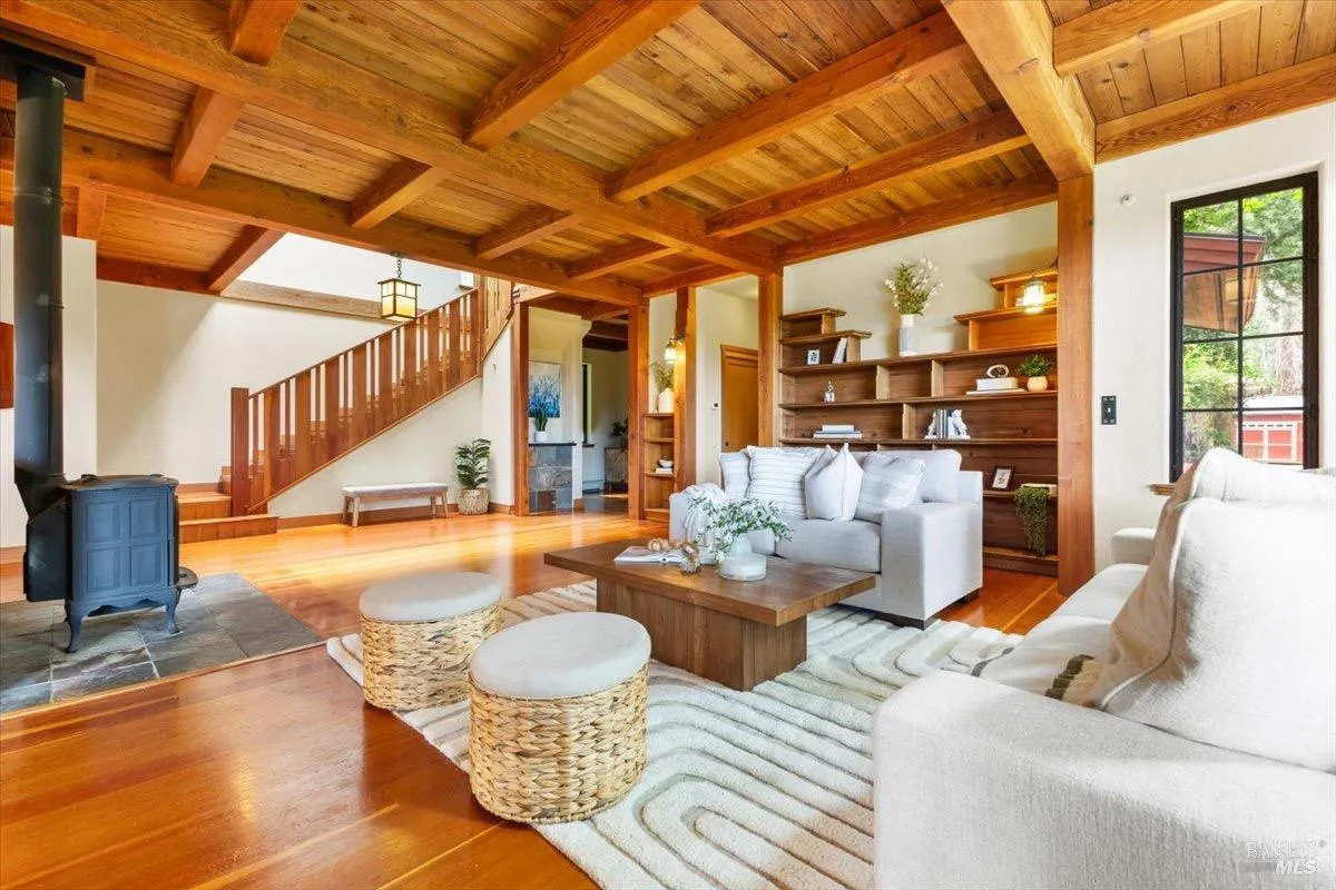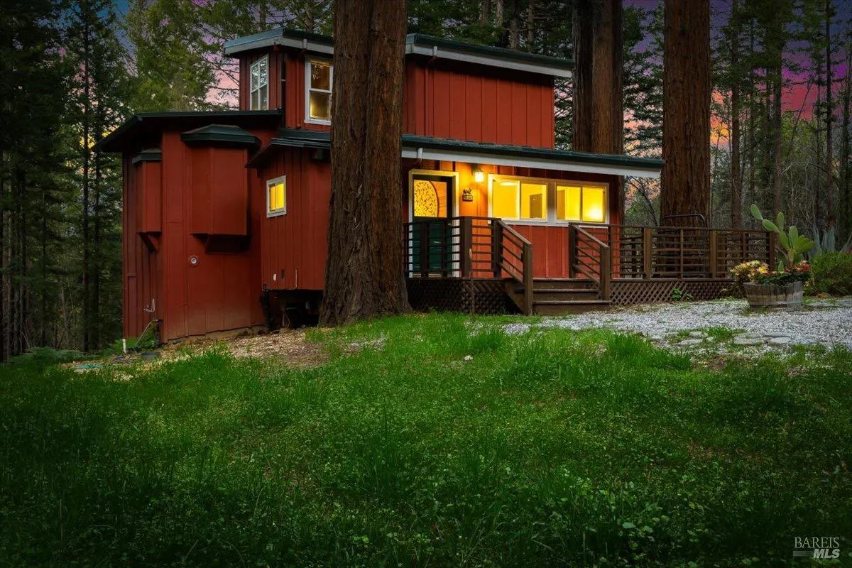 Situated amidst the redwoods in Healdsburg’s scenic Mill Creek, this nearly 43-acre property blends peace, privacy, and timeless design. Accessed by a private road, the main home is a 4BD/3BA Craftsman built from first-growth redwood, with one bed and bath conveniently located on the main level. A spacious paver patio wraps the home, offering the perfect spot to soak in the views. Inside, the great room features a wood-burning stove, hardwood floors, and expansive picture windows that invite the outside in. The remodeled kitchen boasts a Wedgewood range, built-in Viking fridge, custom cabinetry, and a walk-in pantry. A large mudroom/laundry area sits just off the kitchen for added functionality. Down the road, a separate guest cabin offers a full kitchen, wood floors, indoor laundry, wood stove, two bedrooms & full bath, and a wraparound deck that basks in sunlight. An additional secluded redwood deck creates a peaceful escape ideal for art, yoga, or summer fun. Both homes and the well system are powered by owned solar and a Generac generator. Just 15 minutes to downtown Healdsburg’s restaurants, tasting rooms, and Hwy 101 this retreat offers complete privacy without sacrificing convenience. **Seller fianancing possible**.