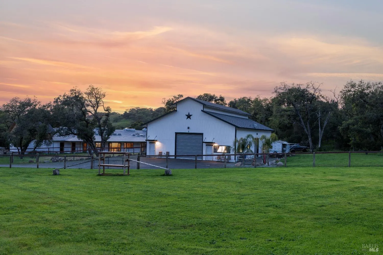 Stunning, 5.05 acre property within an exclusive gated community surrounded by larger homes providing a unique canvas to build your future dream home, farming or potential for future horse/equestrian property. Enjoy the tranquil sounds from the seasonal creek and lush landscaping.The impressive Ag/Barn is 3,910 Sq. ft. 46′ x 85′ structure featuring three convenient roll-up garage doors and a grand RV-sized electric roll-up door, ensuring effortless space for vehicles & storage. Inside, explore expansive flex space on both levels, adaptable to your needs, and a huge attic, measuring approx. 8′ x 85′, perfect for all your storage needs. Several fenced areas are thoughtfully prepped for future growth. An orchard paradise awaits with an array of fruit trees with purple figs, plums, pears, citrus fruits, and edible grapevine varieties. Raised garden beds invite you to cultivate fresh vegetables and live an organic lifestyle. Happy chickens occupy an adorable chicken house. Stroll beneath the shade of a magnificent oak tree, where where a swing awaits to capture joyful moments, amidst garden lighting that transforms outdoor spaces into serene evening retreats. Scenic, rare property with an opportunity to create your dream home/lifestyle.