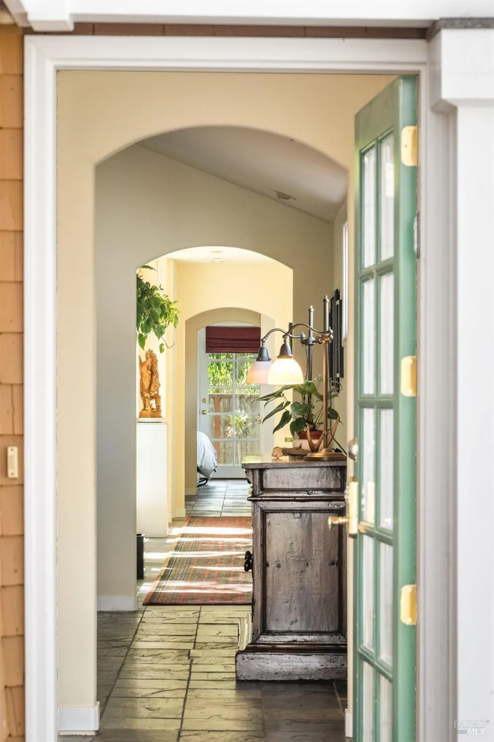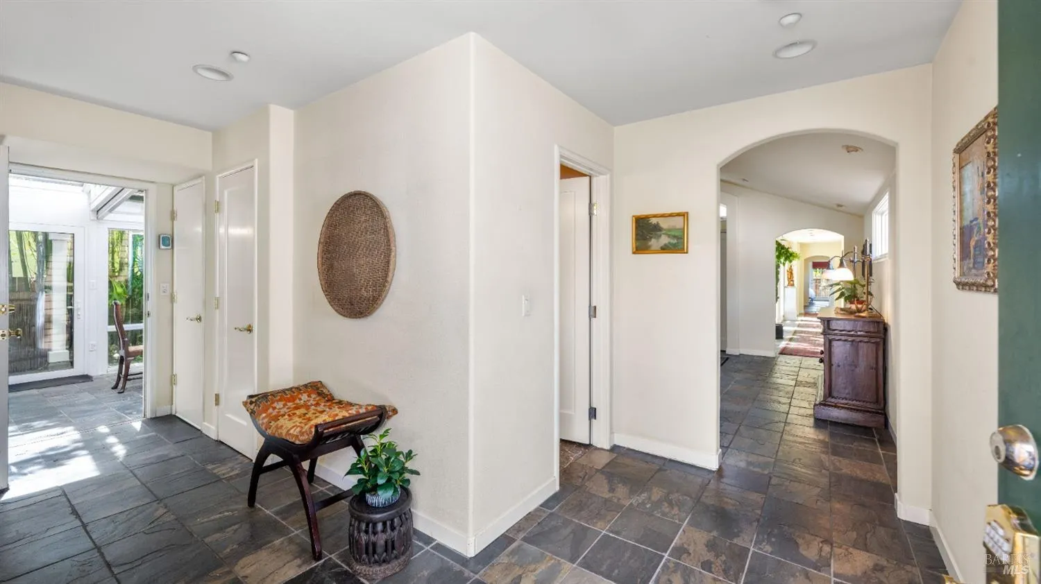 This unique three bedroom home is situated in a quiet neighborhood, with the Historic Sonoma Plaza just blocks away. A slate tile pathway leads you past garden beds to the entry of the home. Designed with the experienced cook in mind, the restaurant style kitchen features stainless steel countertops, a Dynasty gas range, and an expansive stainless steel sink. A separate walk-in pantry holds a full-sized refrigerator and additional custom-built cabinetry. The spacious living room boasts high ceilings and doors opening onto an all-weather glass sunroom. One of the many desirable features of this home is the unique layout separating the bedrooms from the living spaces. A long window lined hallway stretches towards the back of the house where you’ll find the bedrooms and laundry. A private courtyard has been cultivated with remarkable and exotic gardens including a collector’s assortment of plants, and tall bamboo bordering the fence line. 637 5th Street East is a quiet and beautiful oasis.