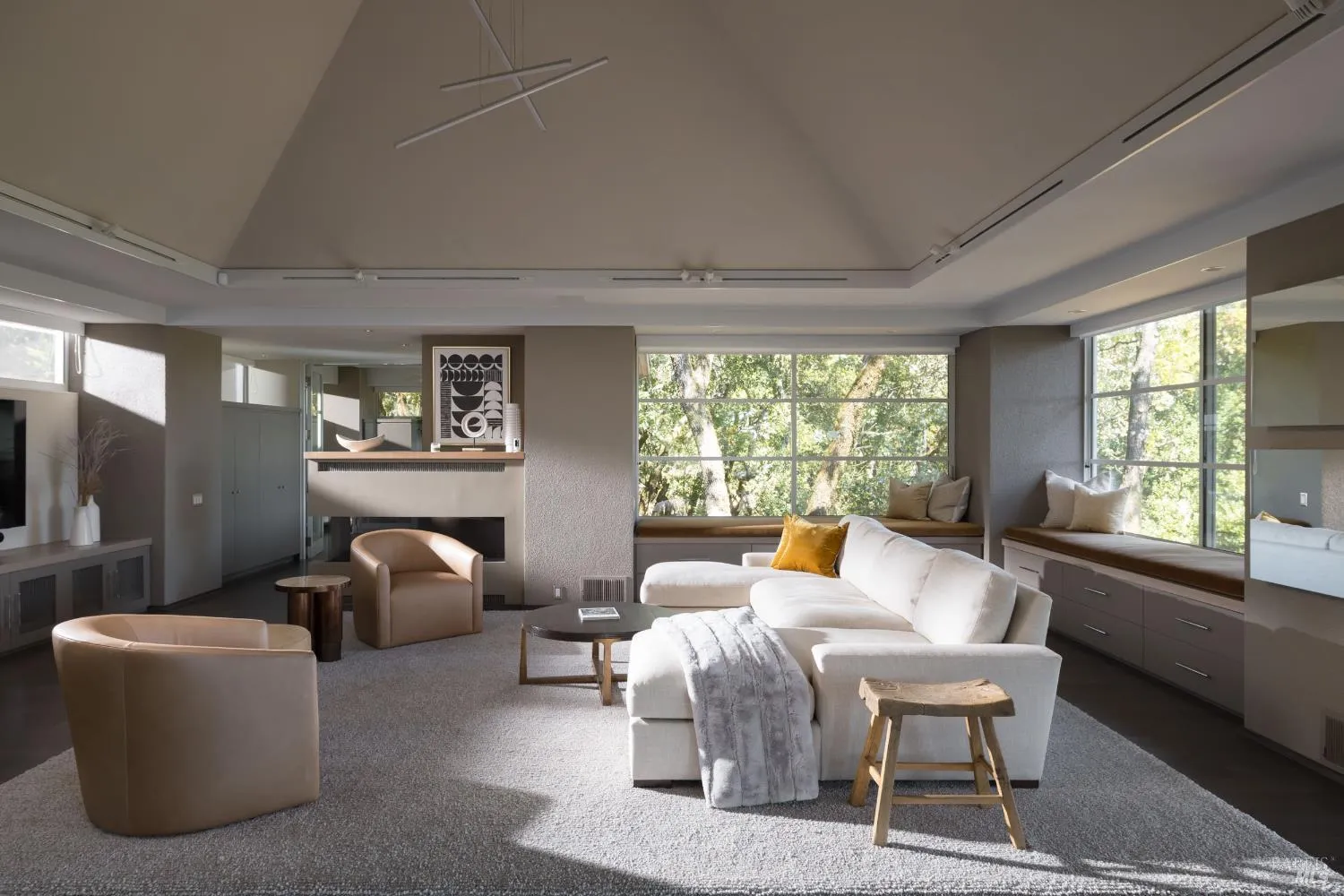 This award-winning contemporary residence was designed by architect J.R. Smith to intentionally unfold along the northern slope of Sonoma’s George Ranch. Approached via a wide stone staircase and marked by an entrance constructed of aluminum and double-glazed doors, the interior features walls of glass and awe-inspiring views. Sophisticated, multi-level and decidedly adult, this is a home that is both perfect for quiet contemplation as well as grand gatherings. The main level has an expansive living area with breathtaking views across the valley. The sleek kitchen features dual islands and premium appliances. Just beyond glass doors at the edge of the kitchen, an outdoor dining area with built-in grill and fire pit await. Back inside, the formal dining area offers its own balcony overlooking the pool below. As if stepping down through the trees and resting comfortably on its site, the primary suite offers a sitting area, custom walk-in closet and spa-like bath. Nearby, a library with terrace of its own provides a quiet workspace. Traverse past the turquoise plunge pool to the detached guest space w/sitting room and two en suite bedrooms. Built for those that appreciate distinctive architecture, privacy and the luxury of owning a secluded hillside retreat in Sonoma wine country.
