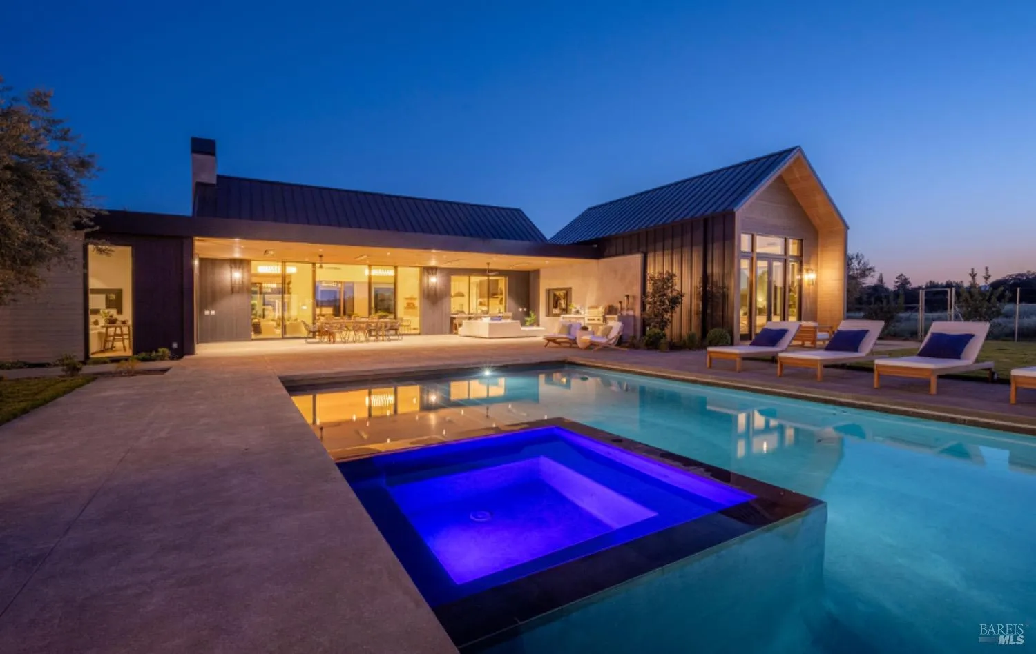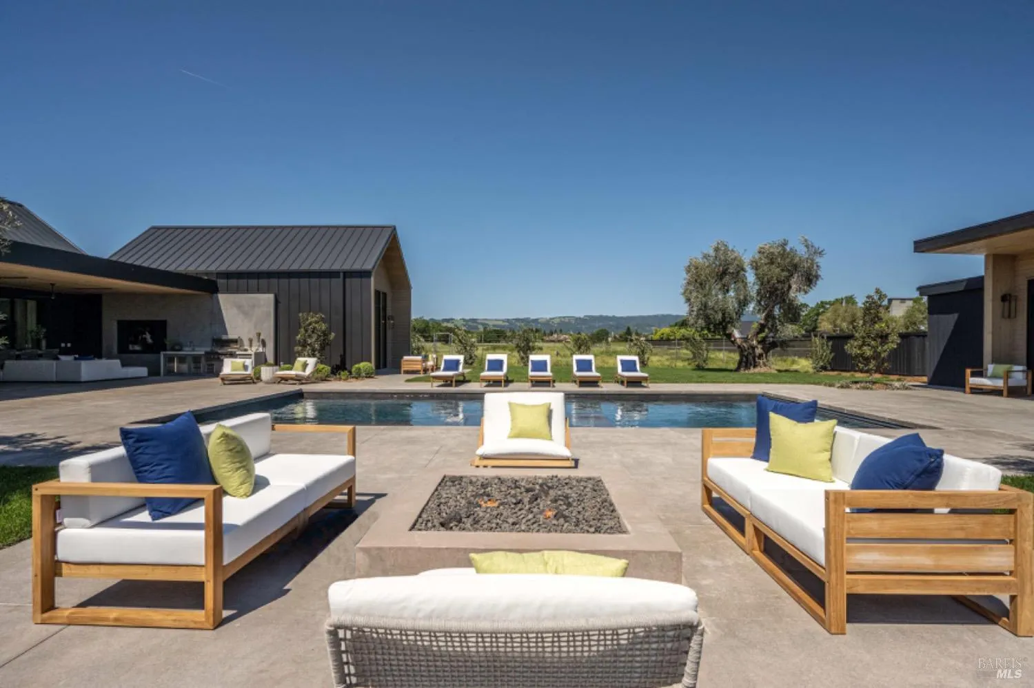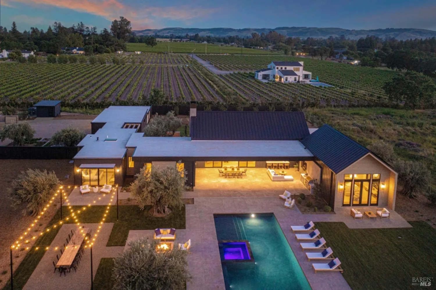 Sited in an enclave of four recently built luxury estate homes, and just blocks from the historic Sonoma Plaza, this private yet conveniently located home epitomizes chic Wine Country living. Situated on Sonoma’s Eastside, this Property comes fully furnished with 4,800 SF of living space, offering 4 BD, 5.5 BA between the main house and pool house. The interior features floor-to-ceiling windows, French Oak floors, a temperature-controlled wine room, and a media room, with each bedroom offering an ensuite bathroom. Expansive walls of glass create a seamless transition between indoor and outdoor spaces. The Chef’s kitchen opens to a Great Room, perfect for gatherings. The private grounds set on 3.83 acres includes a pool + spa, covered outdoor dining area with a kitchen, lounge areas, and a fire pit, making it ideal for indoor/outdoor living and entertaining. The detached pool house has a full bath and large living space which makes for perfect over flow sleeping quarters. Partial interest (or fractional share or partial share ownership, etc) available for qualified buyers.