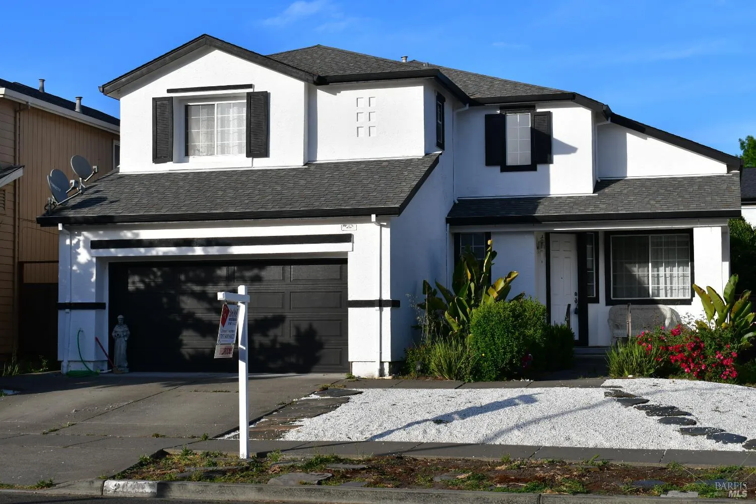 Come home to this beautiful house with vaulted ceilings and plenty of room for entertaining. The large primary bedroom is complemented with an open master bath and walk in closet. In addition to the 3 beds and 2 baths upstairs, the home features a downstairs bedroom/office with full bath. Separate family and living rooms give way to all kinds of options. Very spacious back yard, close to park, shopping area and freeway access.