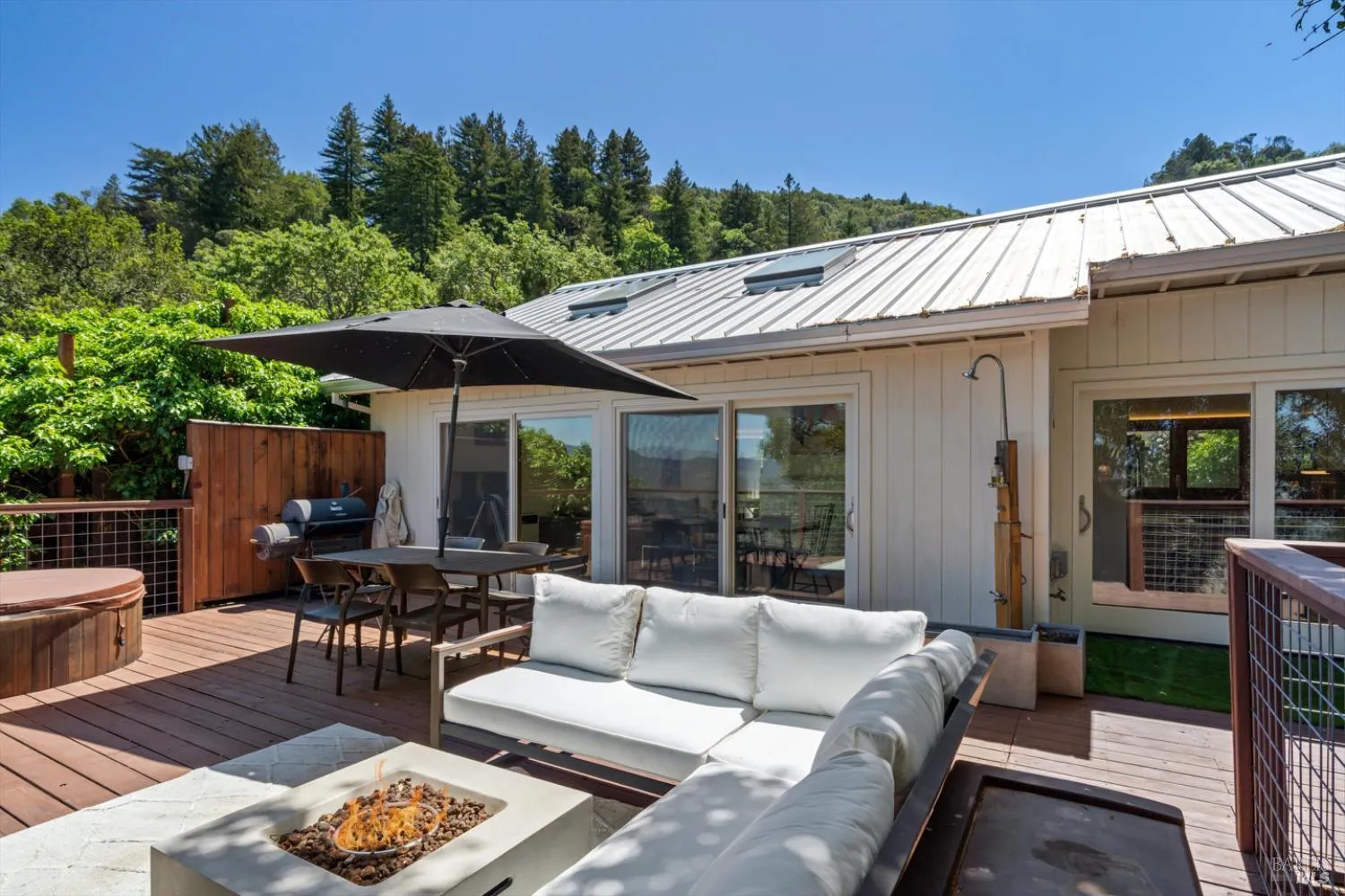 Tucked away in the heart of Sonoma Valley’s most sought-after enclave, this rare Glen Ellen gem offers not one but two chic, single-level modern residences on a lushly landscaped .21 acre parcel. From vibrant, curated gardens and a charming hobby vineyard to citrus trees and jaw-dropping vistas of the Mayacamas Mountains, this property promises the ultimate in laid-back luxury living. The primary residence is a striking blend of style and comfort, featuring an airy open-concept design, soaring ceilings, gleaming wood floors, and a chef’s kitchen adorned with stainless steel appliances, granite countertops, and garden-view windows. Slide open the doors to your expansive deck where a built-in hot tub, cozy fire pit, and panoramic mountain views set the scene for relaxed gatherings and serene evenings. A separate, designer-appointed guest house includes a full kitchen, living room, one bedroom plus an office, and a spa-inspired bath perfect for hosting guests or generating income as a high-end rental. Ideally located just minutes from Glen Ellen’s charming village, acclaimed wineries, boutique shops, and scenic trails, this property offers a casually elegant lifestyle in the heart of wine country.