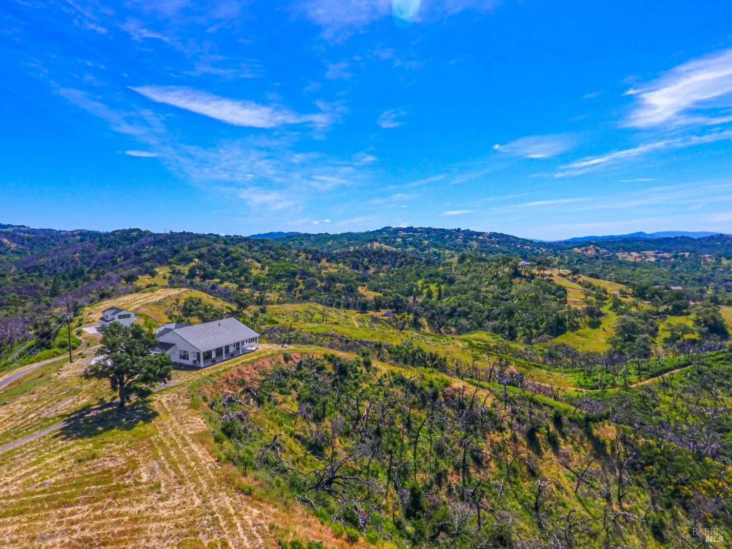 Don’t miss this splendid property! A gated entry crosses a private bridge over a rocky creek bed. Just around the corner is an enchanted pond enhanced by boat and swimming docks. The pond is bordered by mature trees and augmented by a fenced garden with fruit trees. A newer RV unit sits near the lake so that camp outs, swimming, barbeques and volley ball, and rests can be thoroughly enjoyed. Wind your way up the driveway to the recently built modern farmhouse constructed by local builders in 2023. Upon entering, notice the high ceilings and huge windows. You simply cannot escape the panoramic views from every window. The Mayacamas, Mt. St. Helena, surrounding valleys with many vineyards and wineries, forested slopes and azure skies are all part of the vista. The main house contains an abundance of amenities, 4 Bedrooms, 3.5 Baths, a stunning great room, outdoor decks and a generous 4 car garage. Enjoy the new landscaping surrounding the primary residence, completed this spring. The adjacent ADU has 2 Bedroom, 2 Bath, with its own impressive views and made extra cozy with a fireplace, built above a large 3-6 car garage/shop. 100 +/- acre lot with improvements. This spectacular wine country property is ready for a steward with discerning taste.
