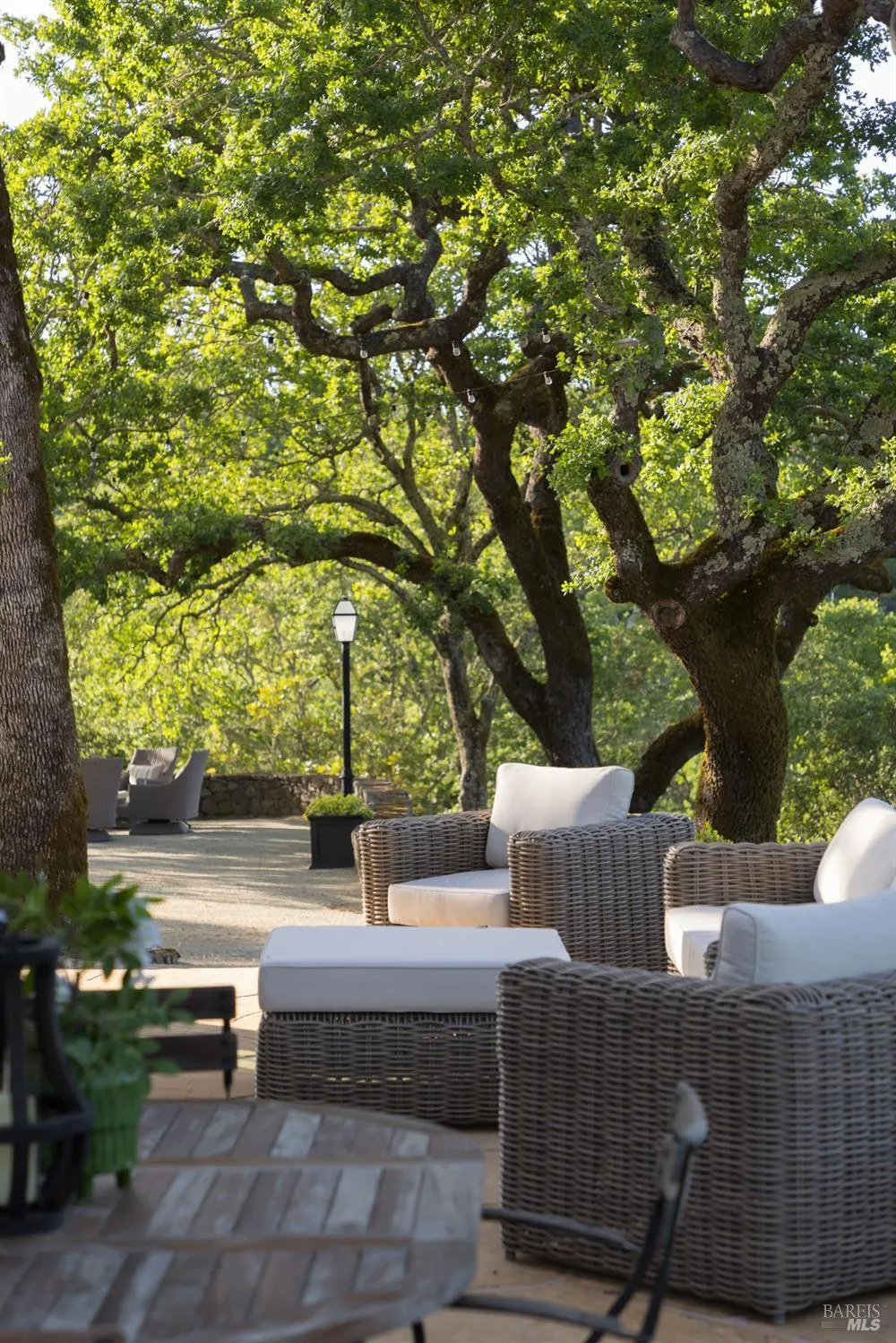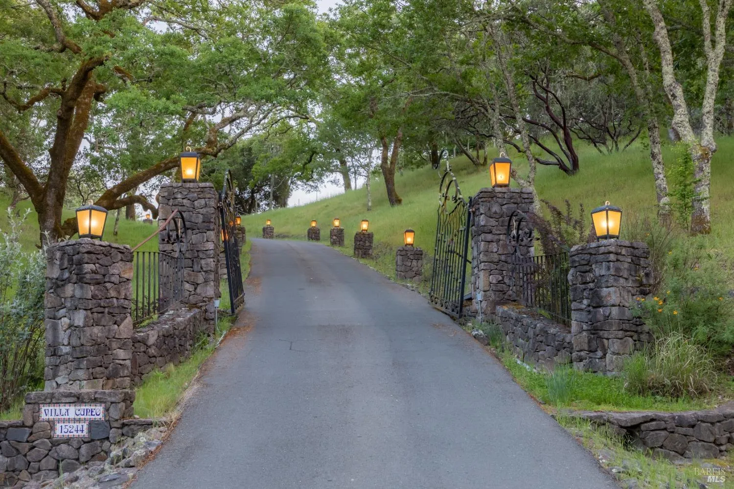 Discover this private five acre stunning Luxury Compound and romantic paradise. Magnificent views from this timeless estate, re-imagined in 2010, lives like a single-level residence with a gorgeous primary suite on the main level and 2nd primary suite gracing the entire upper level. Spanning 4598+/- SF, the main residence includes 4 bedrooms and 3.5 baths, plus a 1 bed/1 bath Guest House set against the backdrop of mountain-to-mountain views overlooking the Valley of the Moon. Standout features include period French oak flooring, Exquisite Surfaces tiled flooring, Venetian plaster walls, custom windows,cabinetry, Lacanche 6-burner range, Carrara marble counters & radiant heated floors. Flagstone pathways, patios & pavilions lead to a solar-heated swimming pool, lush landscaping, a rose & vegetable garden, fountains, manicured mature oaks and bocce ball court. A 1900 +/- Villa Barn w/office & full bath offers many potential uses plus a detached three car garage & Garden View Studio with huge windows. Secluded, yet easily accessible & less than 1 hour from San Francisco. Make this your primary Wine Country residence or vacation rental (buyer to verify). This gated estate exudes warmth, space and privacy while inviting you to experience the captivating beauty of Sonoma Valley.