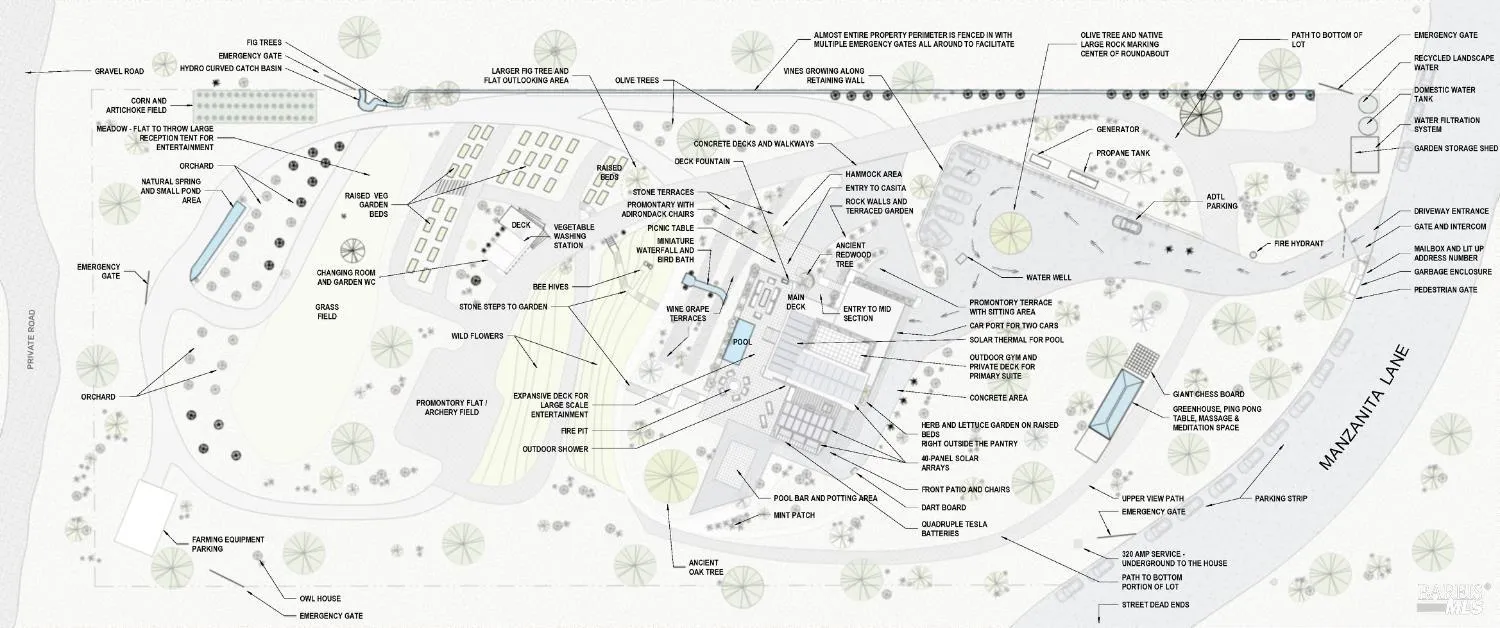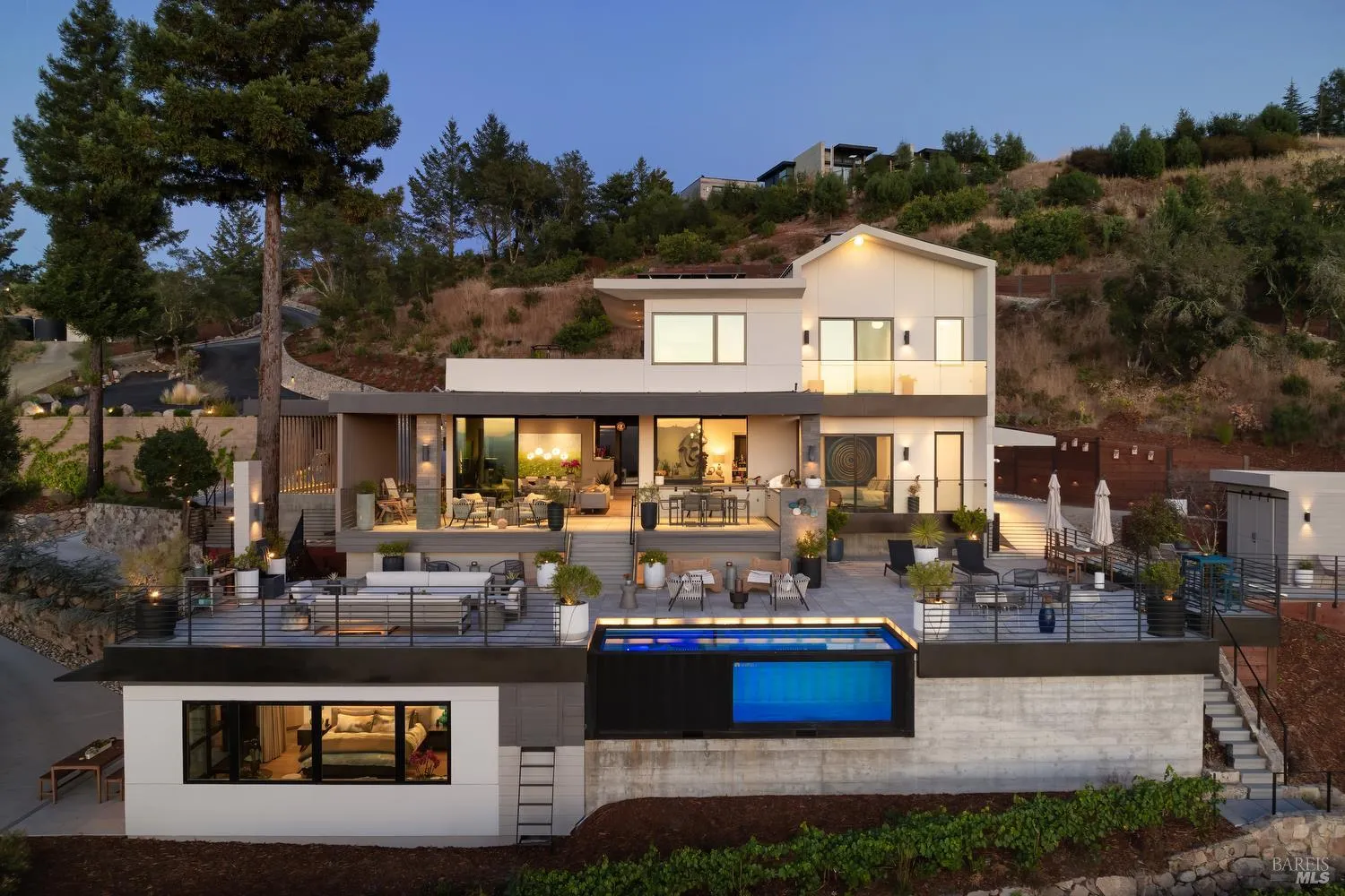 Discover serenity and modern luxury at 12305 Manzanita Lane, a resort-style retreat with panoramic Sonoma Valley views and stunning year-round sunsets. This three-acre property blends contemporary design with sustainable living offering a lifestyle that is both refined and responsible. The 3,275-square-foot home, plus a 500-square-foot heated, covered deck, invites indoor-outdoor living with three en-suite bedrooms, a beautifully equipped guest suite and a curated private lounge. Sunlit interiors maximize valley views, while over 8,000 square feet of paved decks and paths invite connection with nature. Designed by EAG Studio, the estate features multiple gathering spaces, tiered terraces, and vegetable gardens with smart irrigation ideal for epic entertaining or a restful sanctuary. Advanced water reuse systems, smart tech, and durable materials ensure fully off-grid living and long-term resilience. Minutes from Glen Ellen and central to both Sonoma and Napa, this exceptional property offers access to Wine Country’s best while staying close to San Francisco. Whether a private escape or a full-time home, 12305 Manzanita Lane delivers peace, luxury, and innovation in one rare offering.