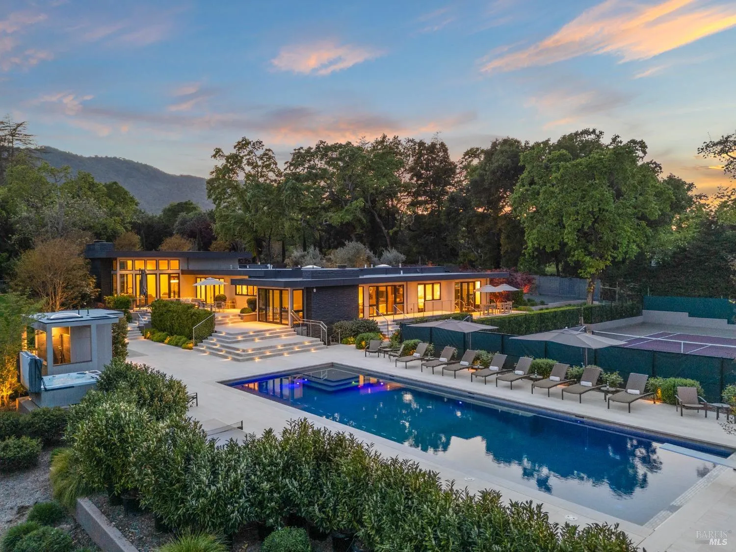 An Extraordinary Opportunity at an Incredible New Price! Privately set behind custom-designed gates in historic Sobre Vista Estates, this one-of-a-kind 2.26 acre estate blends classic mid-century modern architecture with sophisticated contemporary design and resort-caliber amenities. Once part the Spreckel’s summer residence, the property underwent a complete gut/remodel in 2019 and offers 6,420 +/- sq ft of single-level living with soaring ceilings, clean lines, and walls of glass that dissolve the boundary between indoors and out. Ideal for grand entertaining or intimate gatherings, the home offers an impressive great room, formal dining, billiards room, family room, and state-of-the-art gym. The gourmet kitchen with high-end appliances is the perfect blend of form and function. 7 ensuite bedrooms each open to a private terrace. A 60-ft saltwater pool with fire feature anchors the outdoor entertaining space, alongside a full kitchen, and limestone terraces. Recreational amenities include a private tennis court, bocce, croquet, volleyball courts, and geothermal soaking tubs fed by a 1000 ft deep geothermal well. The magnificent Penney Magrane-designed grounds boast a heirloom fruit orchard. Minutes to world-class wineries and Sonoma’s downtown plaza & just 50 +/- minutes to SF.