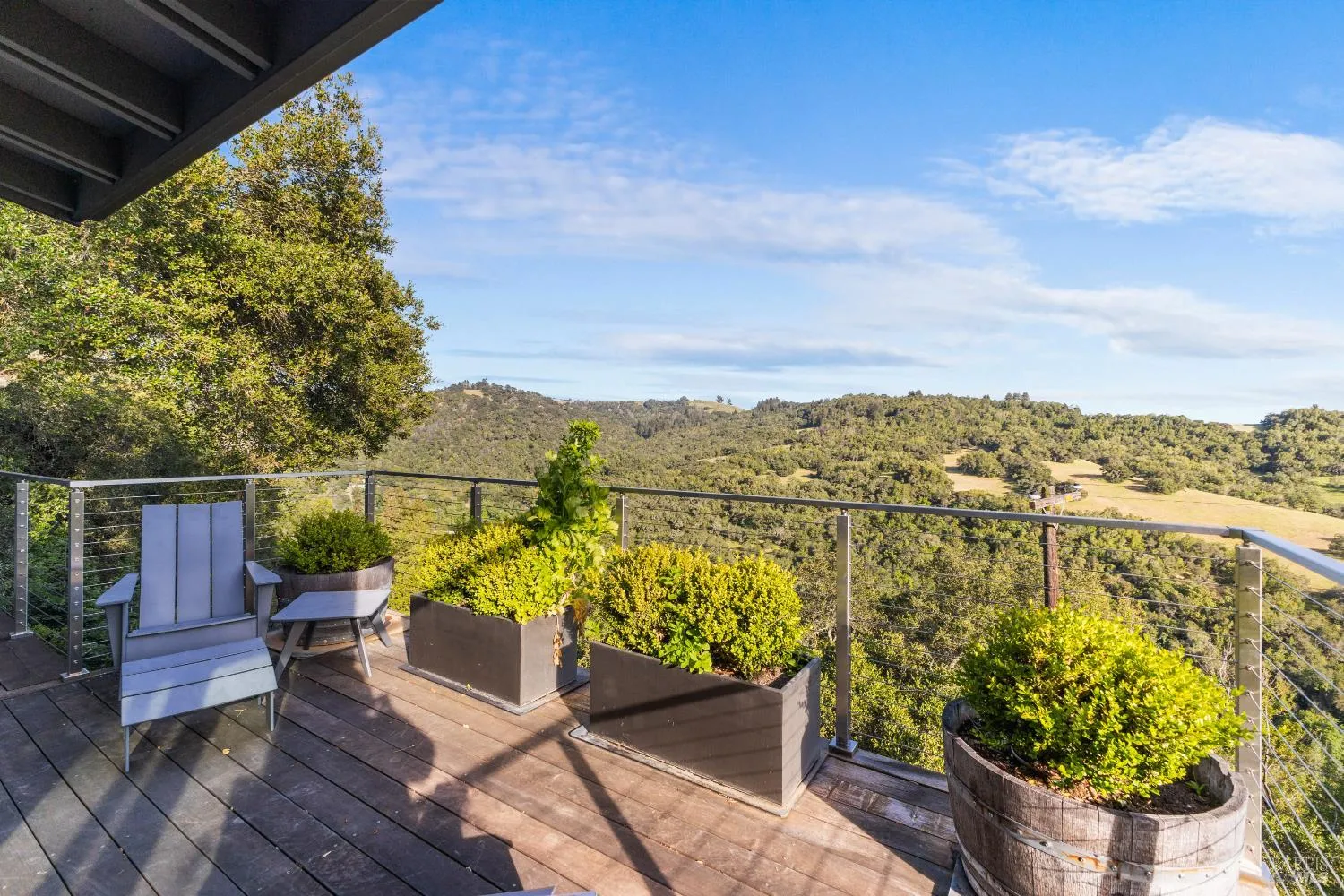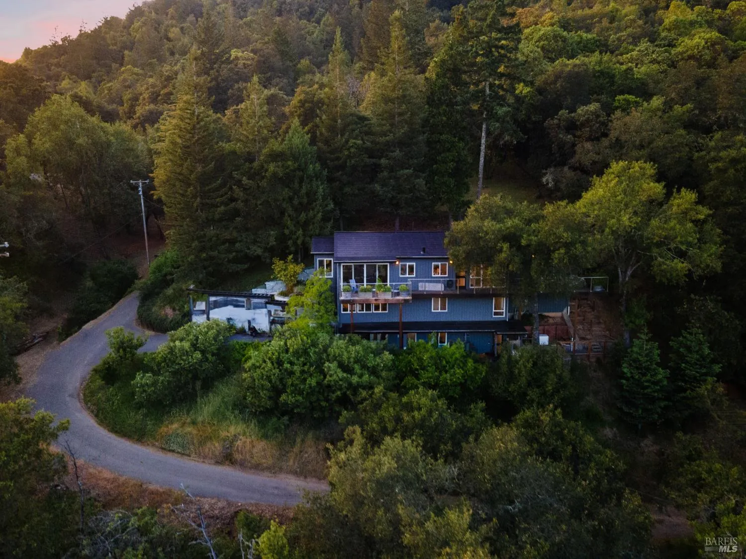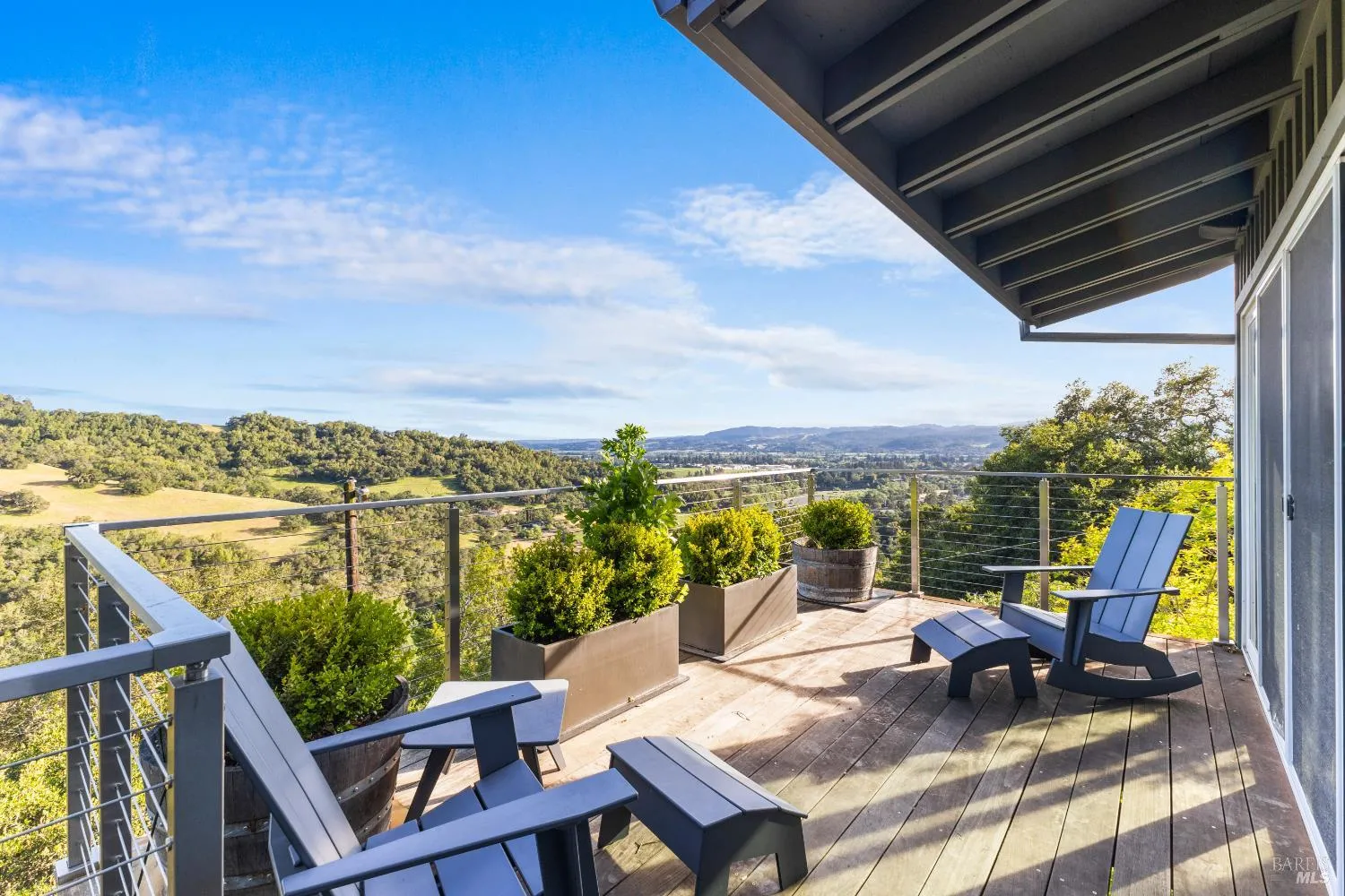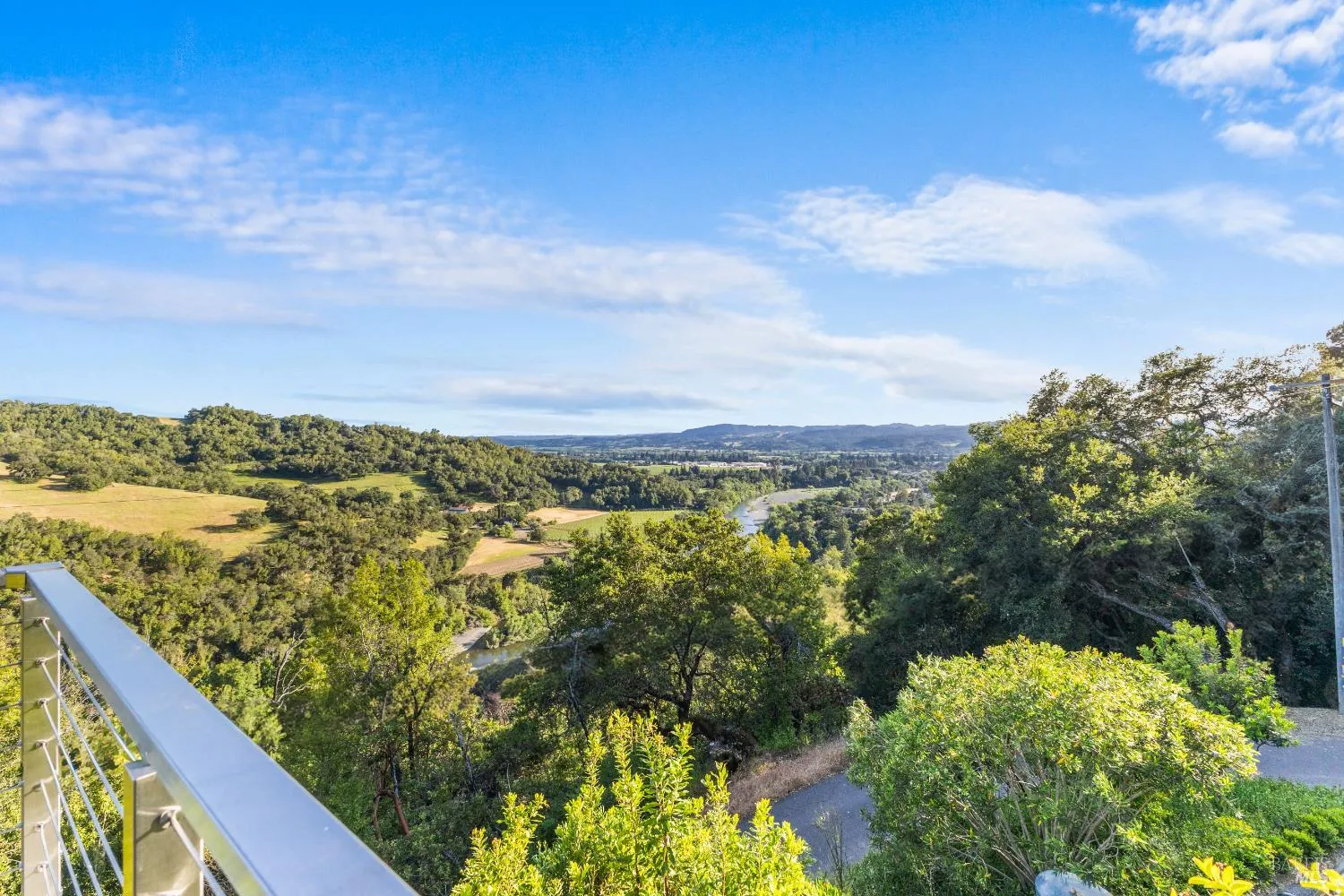 Tucked high above the Russian River Valley, just minutes from downtown Healdsburg, this Fitch Mountain gem offers elevated living with expansive Russian River views. Sunlight pours into the open spaces where clean design meets smart technology, and multiple decks and patios extend the living experience into the open airperfect for morning coffee, sunset wine, or inspired work-from-home days with vineyard and river vistas. This modern retreat is powered by a Tesla Solar Roof with multiple Powerwalls, a backup generator, and an EV charger for true energy independence. Smart-home features include Google security cameras, DoorBird smart doorbells, Crestron thermostats and locks, Nest smoke alarms, and Lutron motorized shades on the main level. Comfort is ensured with a high-efficiency heat pump, whole-house water filtration, newer gutters, and drip irrigation for easy care. Enterprise-level networking provides seamless connectivity. A wraparound deck connects the dining, kitchen, and primary suite, while a dedicated gym with floor-to-ceiling mirrors creates a professional workout space. Designed for those who value peace, privacy, and precision, this home feels like you’re not just living in Healdsburgyou’re soaring above it.