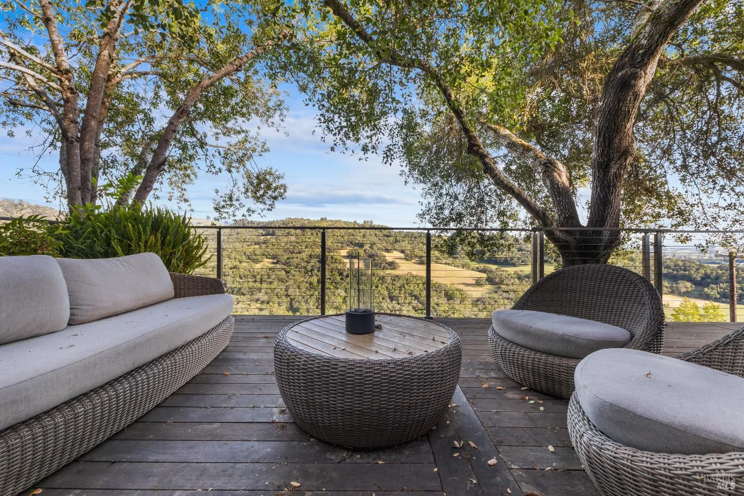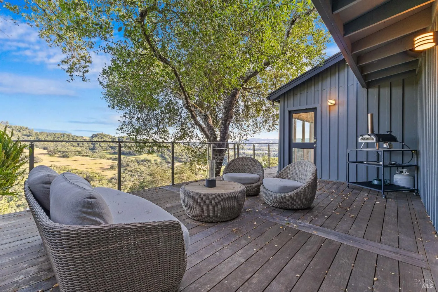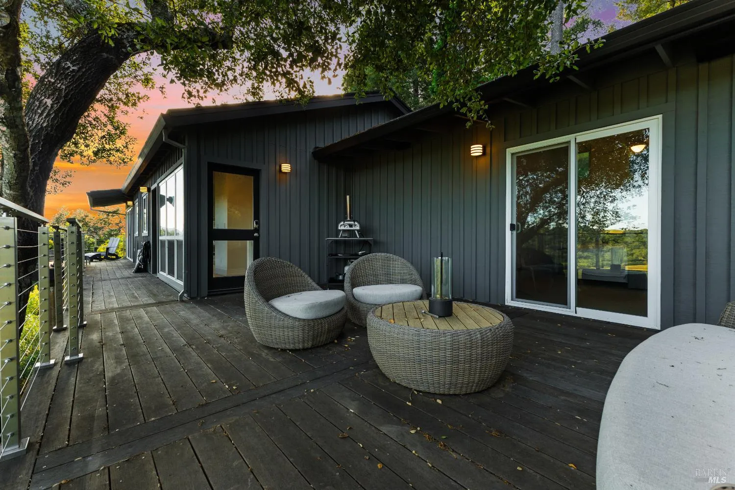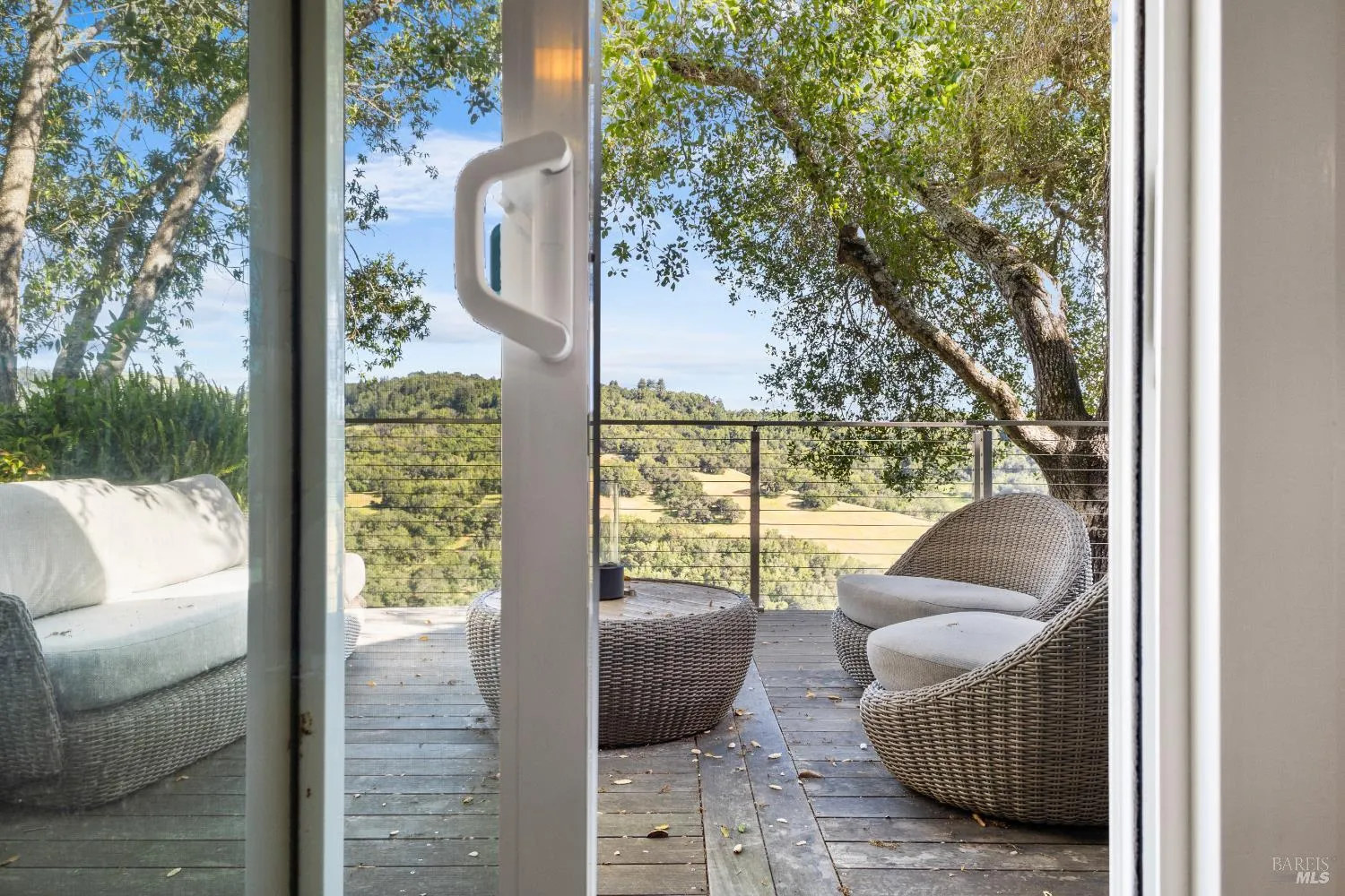 Tucked high above the Russian River Valley, just minutes from downtown Healdsburg, this Fitch Mountain gem offers elevated living with expansive Russian River views. Sunlight pours into the open spaces where clean design meets smart technology, and multiple decks and patios extend the living experience into the open airperfect for morning coffee, sunset wine, or inspired work-from-home days with vineyard and river vistas. This modern retreat is powered by a Tesla Solar Roof with multiple Powerwalls, a backup generator, and an EV charger for true energy independence. Smart-home features include Google security cameras, DoorBird smart doorbells, Crestron thermostats and locks, Nest smoke alarms, and Lutron motorized shades on the main level. Comfort is ensured with a high-efficiency heat pump, whole-house water filtration, newer gutters, and drip irrigation for easy care. Enterprise-level networking provides seamless connectivity. A wraparound deck connects the dining, kitchen, and primary suite, while a dedicated gym with floor-to-ceiling mirrors creates a professional workout space. Designed for those who value peace, privacy, and precision, this home feels like you’re not just living in Healdsburgyou’re soaring above it.