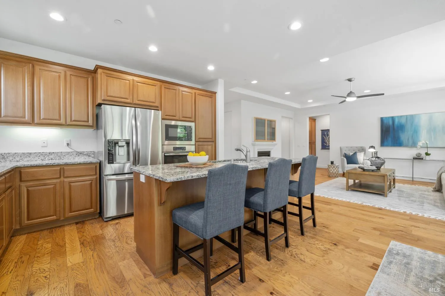 Welcome to The Meadows, the newest section in the Oakmont Village. This beautifully maintained home features hardwood floors throughout, a modern kitchen with granite countertops and stainless steel appliances. The spacious primary suite includes a generous walk-in closet, offering both comfort and convenience. Energy efficient living is easy with solar panels, a battery backup system, and a car charger in the oversized 2.5 car garage. Central air and heat, dual pane windows, and classic window coverings complete this move-in ready home. Enjoy mature landscaping and a stunning travertine tile back patio – perfect for relaxing or entertaining. Oakmont is an active-adult 55+ community with pickleball, hiking, swimming, tennis, golf, and much more in the heart of Sonoma County’s wine country.