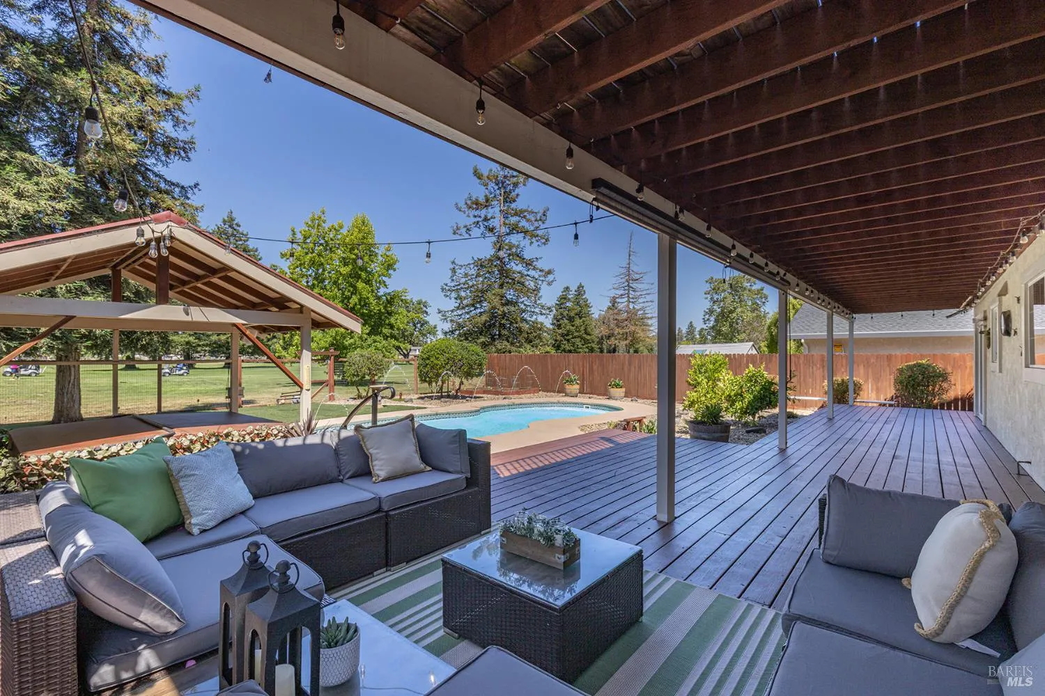 Significant price reduction!! Property Back on market due to no fault of the property! Welcome to 5741 Davis Circle, a beautifully appointed residence nestled in the heart of Rohnert Park, where modern comfort meets suburban charm! This home boasts an inviting open floor plan, ideal for both entertaining and everyday living. With approximately 2,500 square feet of living space, the interior features four spacious bedrooms (potentially five) and three bathrooms, each thoughtfully designed for maximum functionality and privacy. Step inside to discover gleaming floors that flow throughout the living, family and dining rooms, creating a warm, welcoming atmosphere. The updated kitchen is a chef’s dream: granite countertops, stainless steel appliances, and ample storage. The master suite is your private oasis, complete with en-suite bathroom, large windows and sliding glass door which bathe the room in natural light. Enjoy outdoor living in the pool, hot tub and expansive backyard, perfect for summer barbecues or simply relaxing under the sun. The home also boasts owned solar panels and Tesla storage for your electric use in addition to solar water heating for the pool. Located close to parks, shopping, and excellent schools, this home offers convenience at every turn.