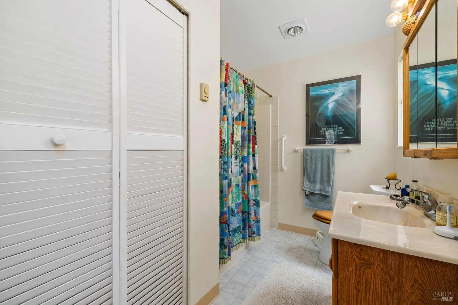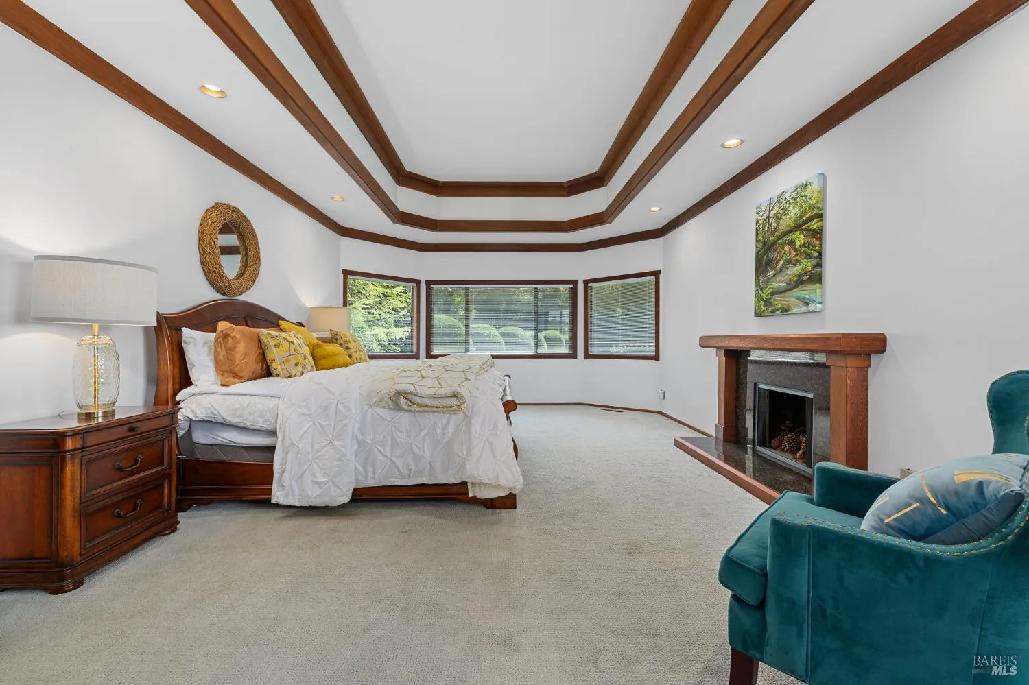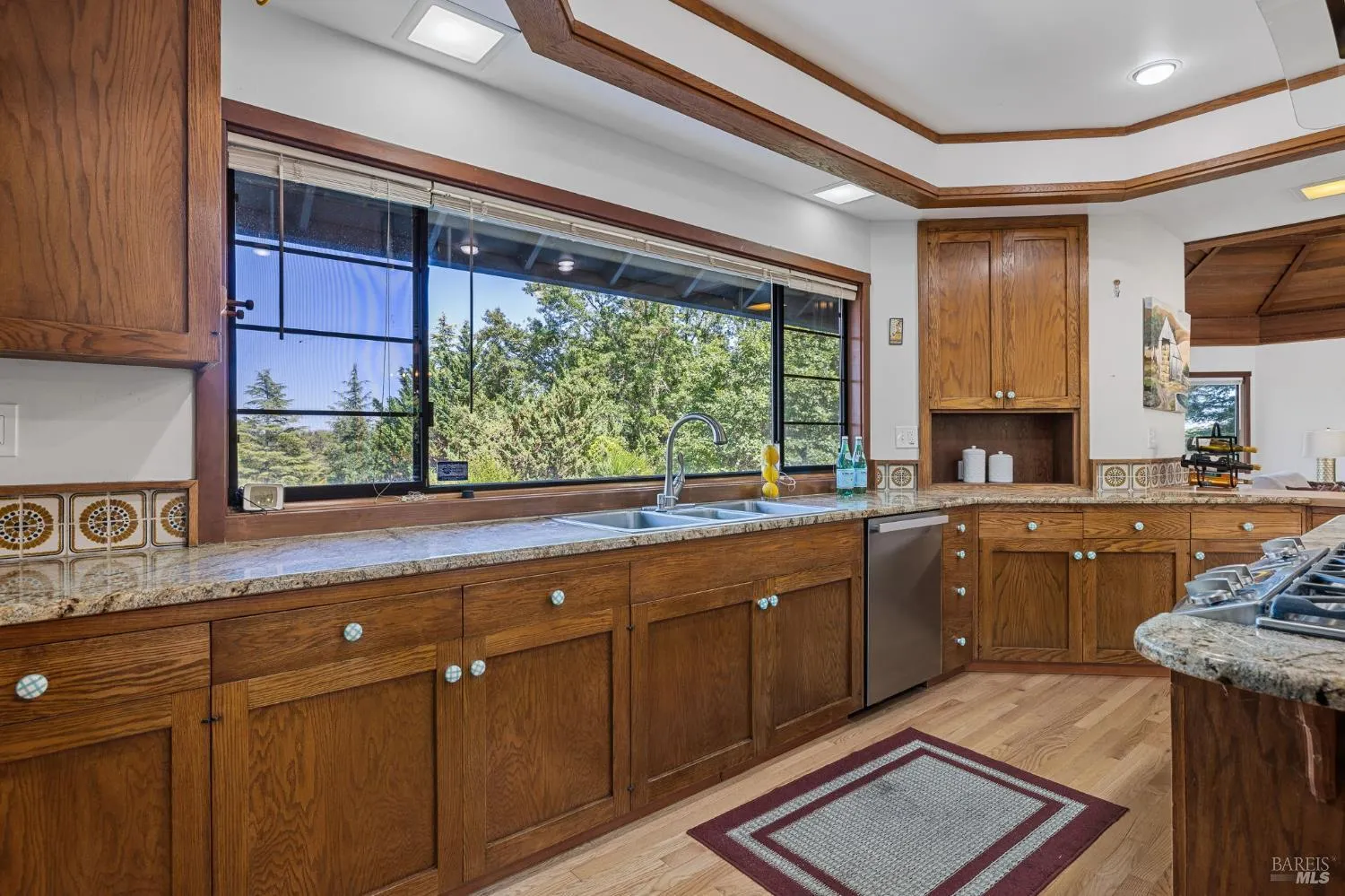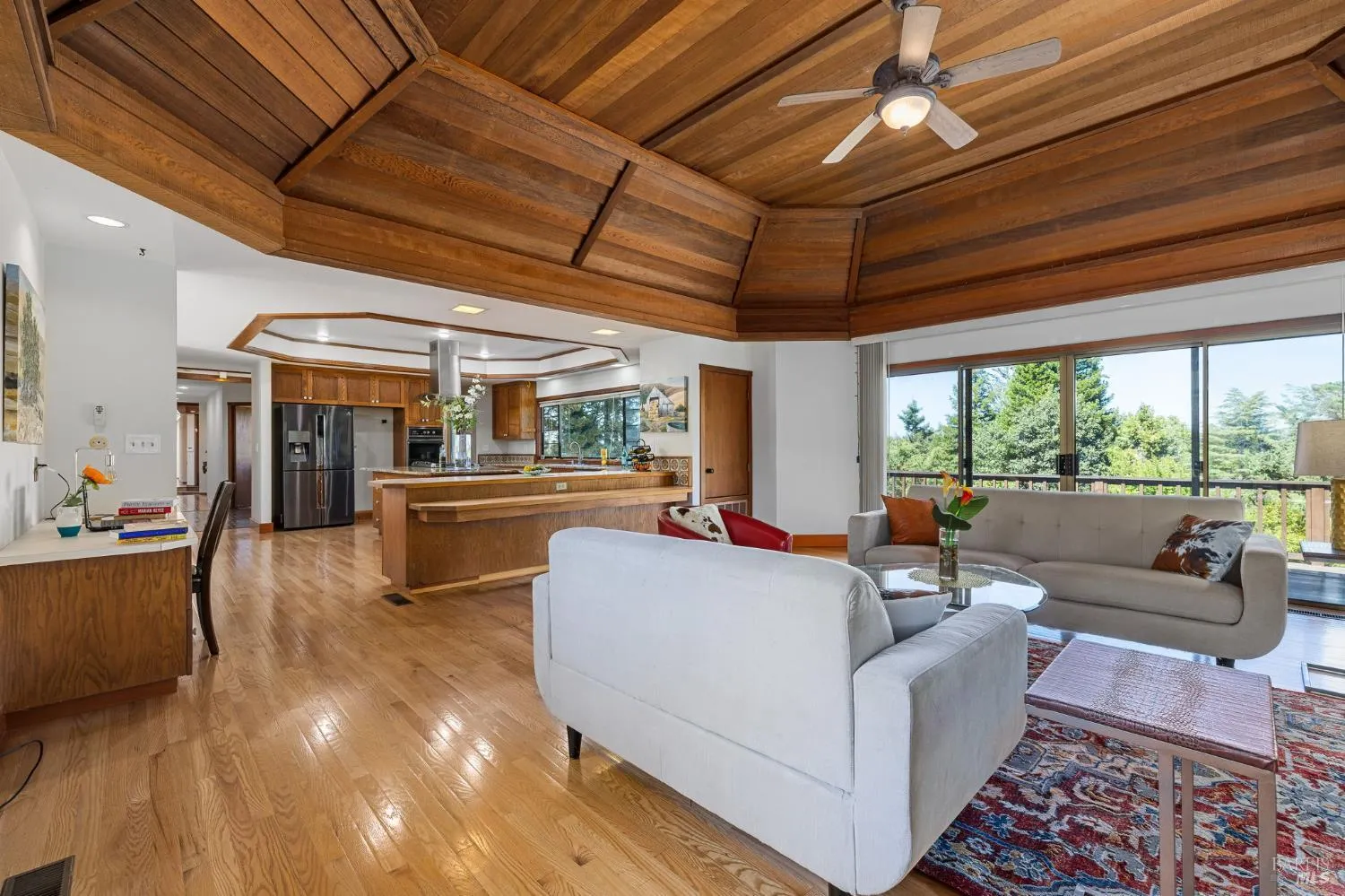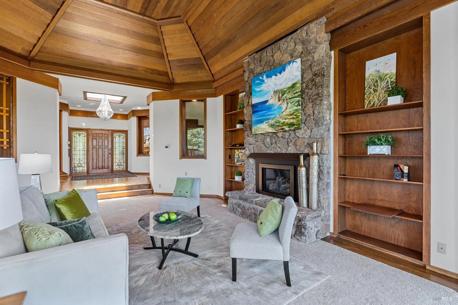 Tucked behind a gated entry in Sebastopol’s wine country, this 5600 sq ft estate is set on 2 private, fully fenced acres. Inside, warm wood details & soaring ceilings enhance light-filled living spaces. The single-level layout centers around an open living room with walls of glass, a fireplace, & sweeping views to the Geysers & Mount St Helena. The kitchen features gorgeous granite counters, a large center island, & an easy flow into the living & dining areas, ideal for entertaining. You will also find 3 bedrooms, 2.5 baths, a formal dining room, a spacious office, & a library with sliding ladder. The primary suite has its own fireplace & en suite. Multiple sliding doors open to a full wrap-around deck that continues to the front of the home. Below, a beautiful saltwater pool, spa, & patio are surrounded by lush gardens & privacy. Downstairs, a private guest suite includes a bedroom, full bath, kitchenette, laundry, carport, & private entrance. On the other wing of the home, the pool house provides a second guest suite with a bedroom, 1.5 baths, a kitchenette, & cedar-lined sauna. An inviting wine cellar with arched stone ceilings adds a surprising finishing touch. Come see this unique wine country retreat, just minutes from downtown Sebastopol & Graton.