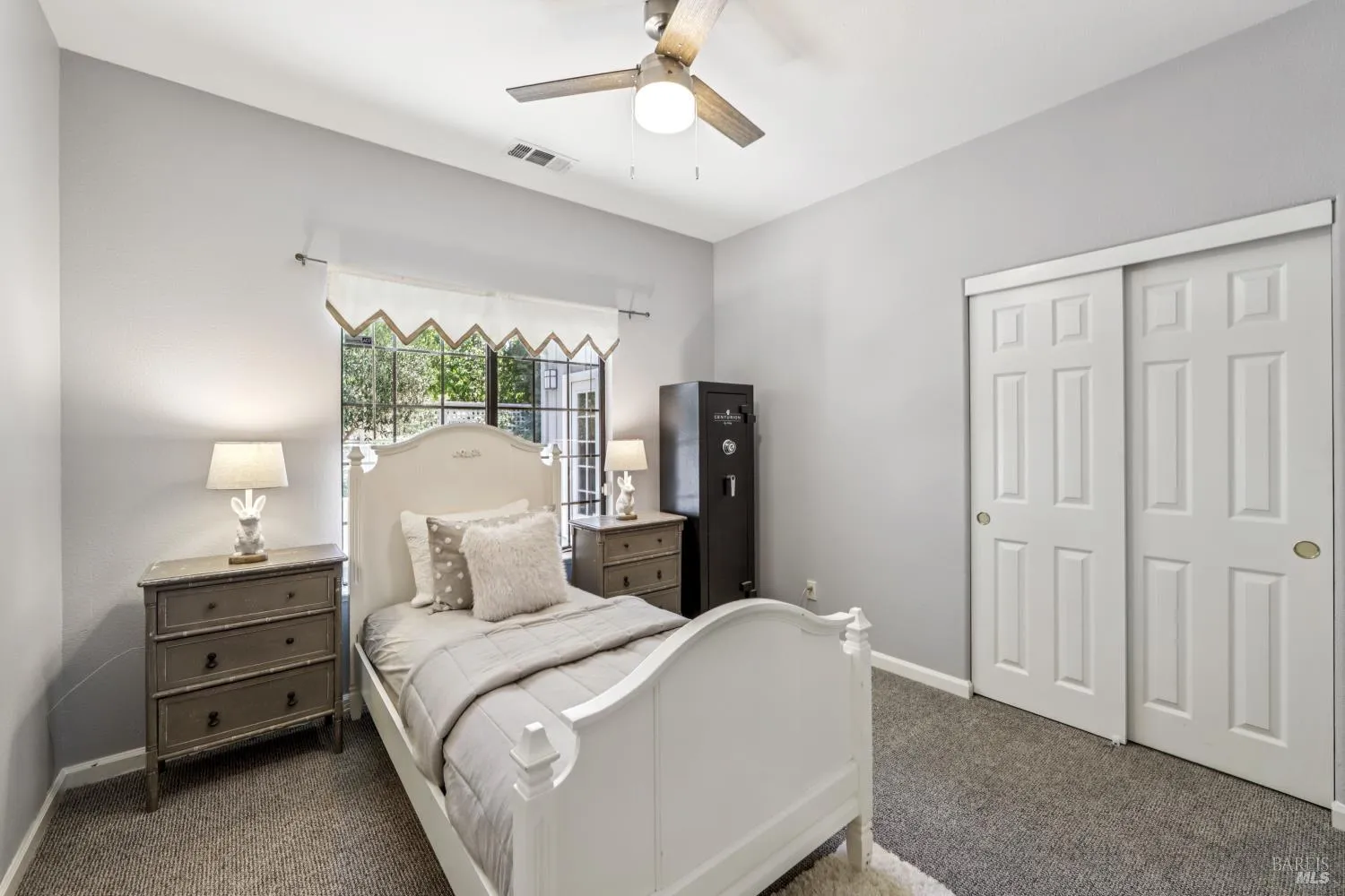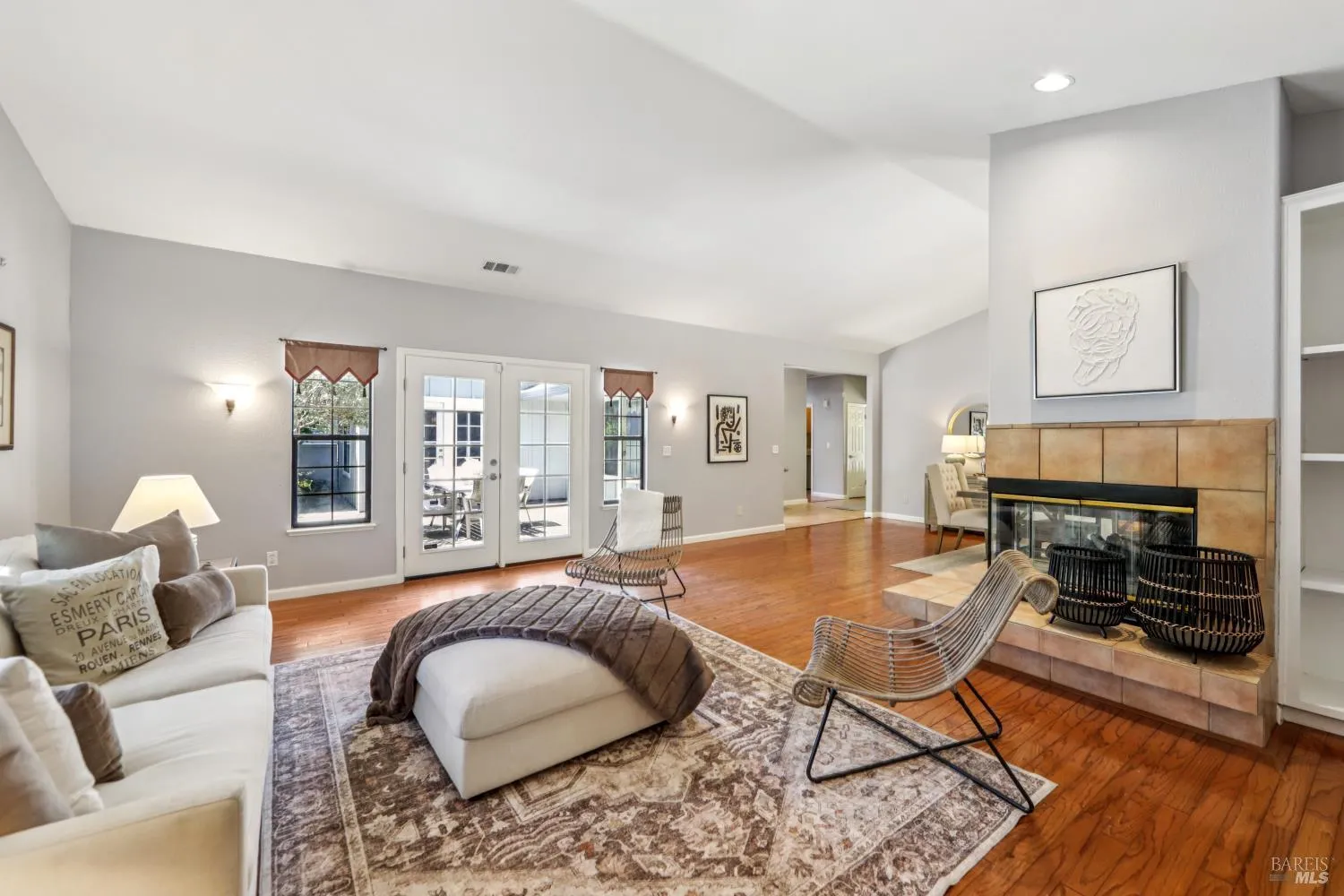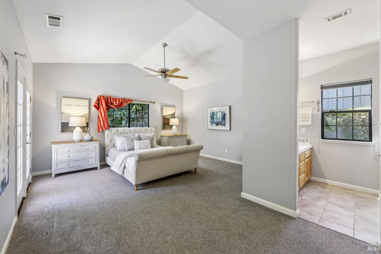 Welcome to effortless, single level living in Sonoma Greens. This beautifully maintained 3-bedroom, 2-bath detached home spans 1,869 sq. ft. and is designed with convenience, comfort, and privacy in mind. Step inside and you’ll immediately notice the soaring ceilings, abundant natural light, and elegant French doors that create an open, airy feel. The spacious living and dining areas flow seamlessly, anchored by a three-way gas fireplace that adds warmth and charm. The dine-in kitchen opens to a private front patio – a perfect spot for morning coffee, evening wine, or easy al fresco dining. The primary suite offers a peaceful retreat with a cathedral ceiling and direct access to a French-inspired back patio. Two additional guest bedrooms, a full bathroom, and a convenient laundry room complete the thoughtful floor plan. Privacy is a rare find in this community – with front and back patios plus a side buffer with no adjacent home. Ample rare off-street parking. Outside your door, enjoy resort-style amenities: stroll around the picturesque lake, take a dip in the 2 community pools, or stay active on the tennis courts – all just minutes from the world-class dining, wine, and charm of Sonoma Plaza.