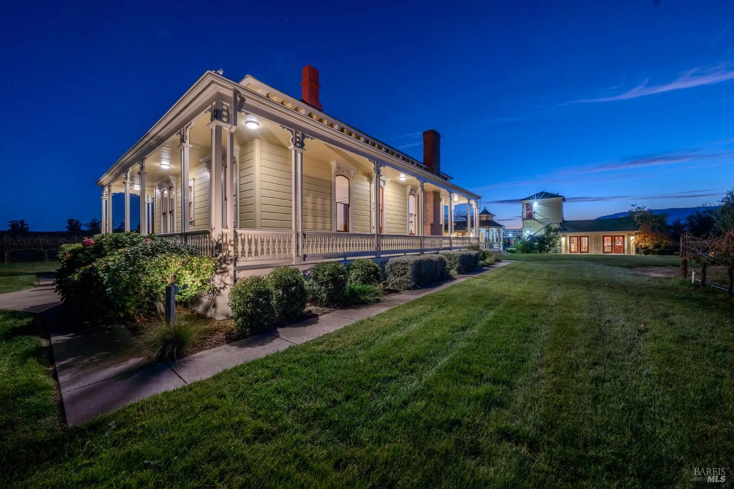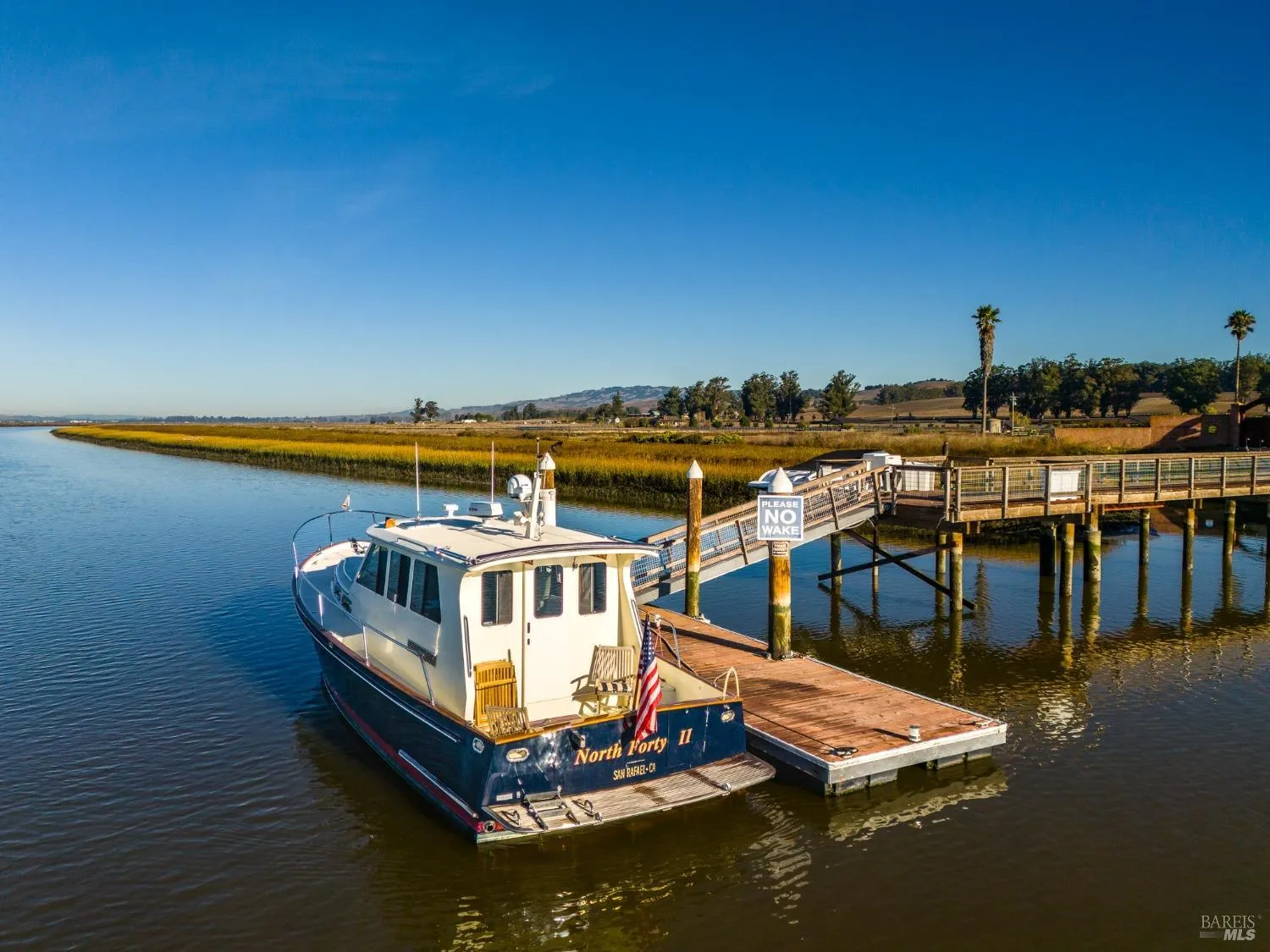 Northern California’s centennial ranch estate, a testament to luxury and exclusivity featuring a restored historic waterfront residence with a deep-water boat dock. Gain private access to the San Francisco Bay and embark on a journey that redefines waterfront living. This estate offers unmatched views of the Petaluma River, stretching westerly to Olompali State Park, and southward over Mt. Tamalpais’s. Spanning over 130 acres, the property is a crown jewel defined by 8 acres of premium vineyards situated in the renowned Petaluma Gap AVA of Sonoma County. These vineyards are not just land; they are a testament to the estate’s richness and a source of award-winning wines. Amidst the vines stands an enclave of guest residences, each a showcase of Italianate Victorian craftsmanship, thoughtfully restored to honor their rich heritage and historical significance. Embrace the freedom of the skies with the property’s private runway, perfect for jet-setting to Carmel for lunch or skiing in Lake Tahoe. The estate’s private hangar doubles as a luxury lounge and entertainment stage, ideal for hosting memorable gatherings and events. If leisurely pursuits call, you may choose to ride horseback through the estate’s vineyards, ponds, and along riverside trails.