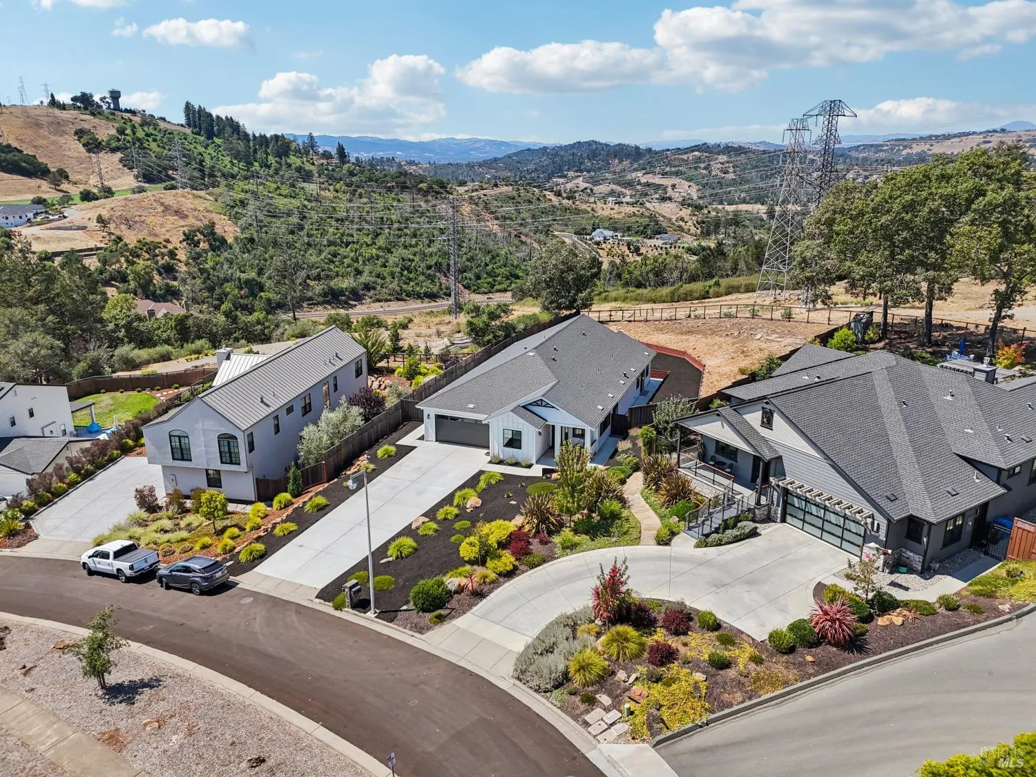 Modern elegance meets wine country charm in this stunning single-level, newer construction home designed for seamless living w/no stairs & every luxury upgrade imaginable. Set on an oversized nearly 1/2 acre lot w/views into Reibli Valley & backing to open space, this property delivers style, comfort, and room to breathe. Step inside to an expansive open floor plan, ideal for entertaining, featuring engineered hardwood flooring, automated blinds, and a striking fireplace. The gourmet kitchen is a showstopper with a huge quartz slab island, 6-burner Thermador stove, full-size wine fridge, wet bar, and professional-grade appliances. Every bedroom has access to its own bathroom, offering both comfort and privacy. The primary suite is a true retreat w/a bonus flex space (perfect for an office, studio, or 4th bedroom), spa-like bathroom w/ soaking tub, custom-tiled shower, dual vanities, walk-in closet, and direct access to the backyard. Outside, unwind under the covered patio, gather around the outdoor fireplace, and take in sweeping views plus there’s plenty of space for a future pool or ADU. Add in AC, a 2-car garage, off-street parking for 6+ cars, a charming front porch, & proximity to Fountaingrove Golf & Athletic Club, and you’ve found a rare gem in the heart of Sonoma County