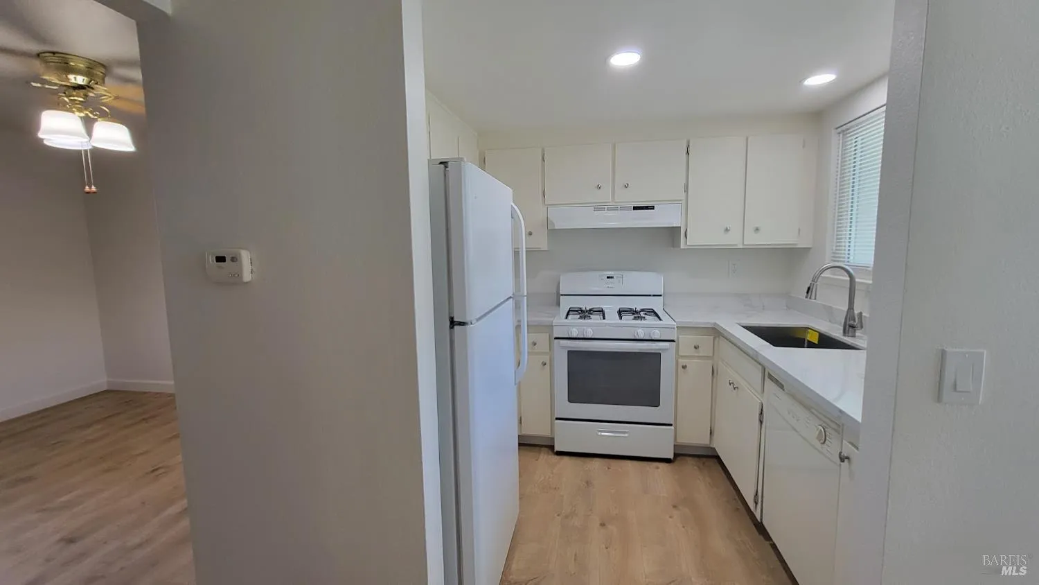 This renovated three-bedroom, two-and-a-half-bath home in Santa Rosa’s Westland Estates boasts a modern kitchen featuring quartz countertops, updated windows, fresh interior paint, and brand-new waterproof vinyl flooring throughout. Additional updates include brand new carpeting in all bedrooms and new blinds on all windows. Seamless indoor-outdoor living is facilitated by a back patio that opens to a spacious grassy area with mature trees. The property’s prime position offers quick commutes and shopping, thanks to its proximity to Oliver’s Market, Highway 12, and Highway 101, but still a quiet neighborhood. Owners also have the benefit of a detached single-car garage, plenty of guest parking, and entry to a securely fenced community pool.