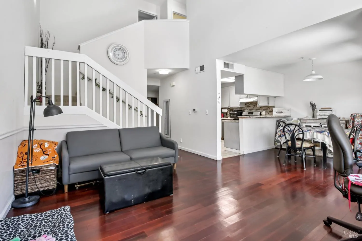 Price improvement to $619k. Welcome to this move-in ready 3BD/2BA two level condo in a convenient East Petaluma location. No neighbors above or below. A bedroom and full bathroom located on the first floor is ideal for guests, in-laws, or flexible living arrangements. The main level features a bright living room with soaring ceilings and tall windows for natural light. There is direct access via a glass door to an enclosed patio and the parking area. The stylish kitchen presents a French-door style refrigerator, marble countertops, a modern glass backsplash and painted cabinets. Carpet in all three spacious bedrooms as well as the staircase. One upstairs bedroom has a walk-in closet and private balcony. Installed cabinets in both bathrooms for added storage and style. An additional walk-in closet on the main level provides abundant storage space. The entire home is painted in modern, neutral tones. In-unit washer and dryer for everyday convenience. Two dedicated parking spaces right outside rear patio – a carport and an uncovered spot. HOA dues cover exterior maintenance, roof, management and common areas. Proximate to schools, parks and walking trails/paths, stores and restaurants. Approx one mile from SMART train station.