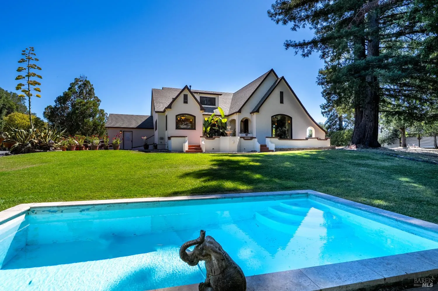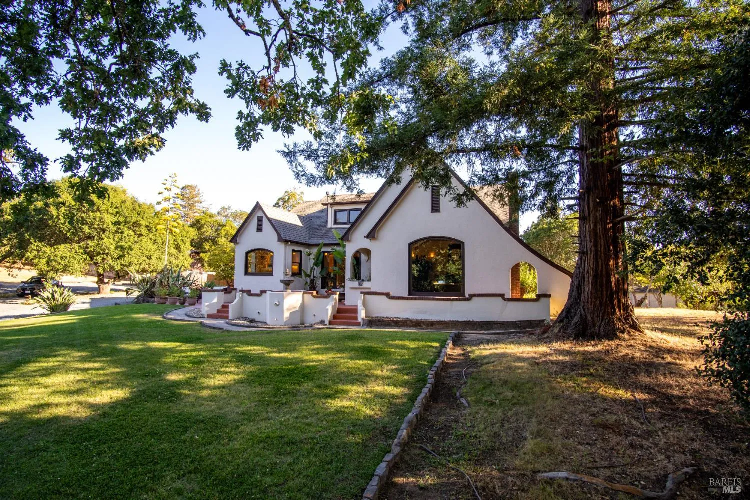 Timeless charm meets modern comfort in this rare 2.89-acre hilltop wine country retreat.Originally built in 1934 & completely renovated in 2017, this 3,100 sq ft home blends Old World character with the quality & convenience of new construction.The 4 bed 2.5 bath residence features vaulted ceilings with exposed beams, a stone gas fireplace, & an arched picture window framing oak studded views which fills the home with natural light.A formal dining room leads to the custom kitchen with ample cabinetry, stainless appliances including a 6 burner chef’s range, & a breakfast nook overlooking the green lawn & sparkling pool.Downstairs includes a laundry room, half bath, & 3 spacious bedrooms, one with French doors, another with a built-in desk, plus a full bath with soaking tub & walk-in shower.Upstairs, the private primary suite offers 2 walk-in closets, a skylit bath, seating area, & rec room.Major upgrades include all-new electrical, plumbing, roof, insulation, HVAC, well equipment with a 5,000-gal tank, & new windows.With a custom basement sauna, pool, patios, & circular drive, this private compound is your new oasis just minutes from Sonoma’s wineries, shopping, & everyday essentials.