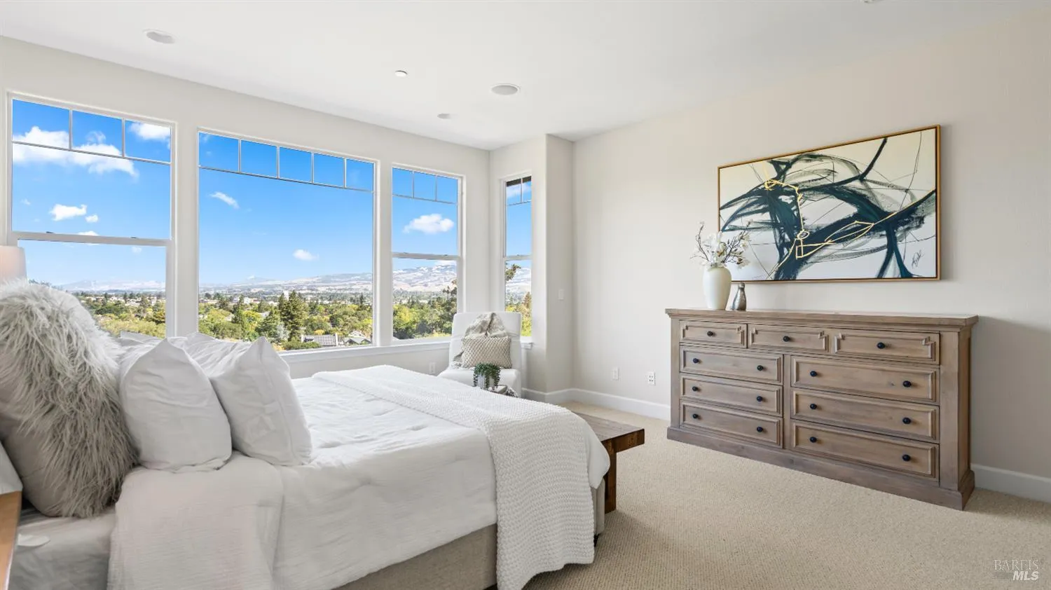 Welcome to 23 Pinnacle, a luxurious residence in the prestigious Pinnacle Heights neighborhood of West Petaluma. This home features 4 bedrooms, 3 1/2 baths, an office, soaring floor-to-ceiling windows, Brazilian cherry wood flooring, wide stairways, custom cabinetry. Upon entering, you’re greeted by a foyer leading to stunning sweeping views of Mt St. Helena, Taylor Mt, Bennett Mt, & Sonoma Mt ranges. The property just under 3/4 of an acre, includes a wrap-around deck, lush gardens, a hidden patio.Ample storage is available, including 2 fenced garden areas, a newer storage shed, & under-house storage. This larger lot offers privacy on both sides. Inside, there are 2 dining areas for gatherings, cozy fireplaces in the living & family rooms, a bright, airy ambiance. The large kitchen offers ample counter space, a walk-in pantry, top appliances,a butler’s pantry, & a wine refrigerator. Upstairs master suite features an oversized walk-in closet,2 rooms w/Jack & Jill bath for added comfort.Additional features include a mini master CEO office, a finished 3-car garage, outdoor parking for 6 or more vehicles. There’s potential for a detached guest house. Conveniently located just over a mile from downtown Petaluma, residents enjoy easy access to shops,restaurants, entertainment…