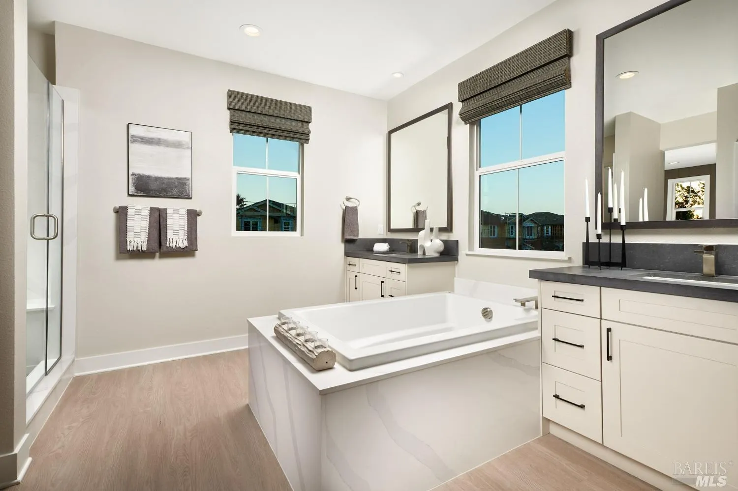 Lot 133 – QUICK MOVE IN! City Ventures community in Santa Rosa. This home features 3 bedrooms and direct access two car garage. Home features Anew Gray shaker cabinets, Upgraded Countertops, solar panel system and more. Photos are of the model home for reference and not the actual home for sale.