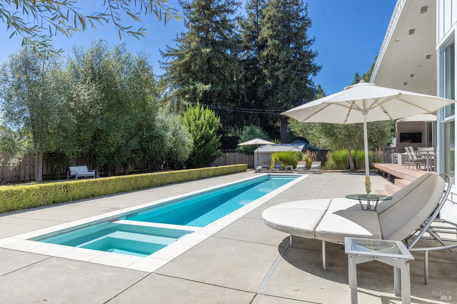 Set on a quiet cul-de-sac on Sonoma’s Eastside, this Fully Furnished single-story home with a sparkling pool and spa blends clean, modern design with thoughtful functionality. Completed in 2016 to CALGreen standards, the floor plan includes 3 bedrooms plus 2 additional flexible-use rooms that easily accommodate media, office, or guest needs. The fully furnished & professionally decorated open-concept layout includes a large great room with vaulted ceilings, a gas fireplace, and La Cantina sliding doors that extend the living space outdoors. The kitchen is equipped for serious cooking, with a 48” Wolf range, dual KitchenAid dishwashers, Sub-Zero appliances, Miele coffee system, and oversized island with Silestone counters. A formal dining area seats 10 comfortably. The primary suite opens to the yard and includes a spa-style bath with soaking tub, walk-in shower, and dual marble vanities. Outside, the private backyard offers a 45′ lap pool with integrated spa, Trex decking, mature landscaping, a dog run and multiple lounge areas. Additional highlights include Enphase solar, Sonos sound, Garage w/ EV charging, CAT 5e wiring, and automated window coverings. All just minutes from the historic Sonoma Plaza shops, restaurants, and wineries.