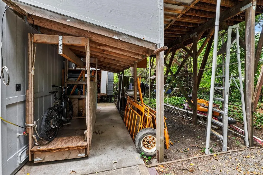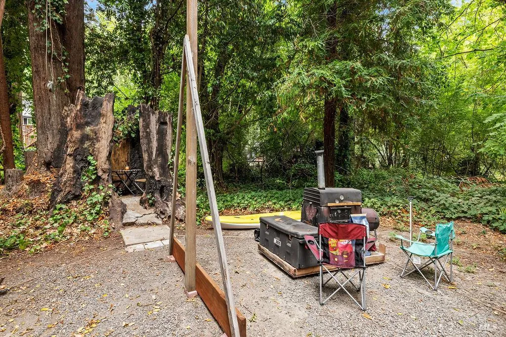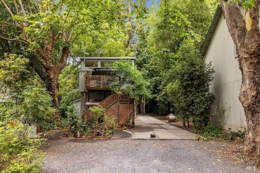 Envision yourself living surrounded by nature in a quiet, beautifully maintained home, cared for by a creative craftsman for 17 years. No HOA fees and set off the street on a large lot offering privacy. Enjoy your morning beverage as golden light filters through abundant windows, illuminating the tranquil setting. The residence features a sunroom with forest views and energy-efficient heating and air conditioning for year-round comfort. A covered deck in the front and an open deck with a forest view in the back. A convenient electric hoist assists in bringing cumbersome items up to the back deck. Situated on a spacious 9,500 sq ft level lot, there is ample room for cars, boats, RVs, gardening and more. Additional amenities include a one-car garage, potting shed and 480 sq ft of ground-level storage with ample shelving and workbenches. Minutes from town and 4 houses from the community Tennis Courts! All you have to do is move in!