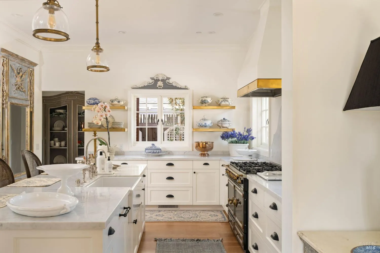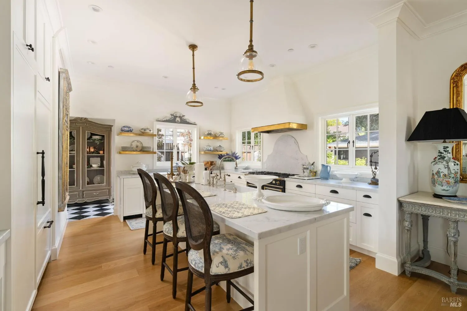 Timeless architecture and refined craftsmanship define this exquisitely restored 1923 Federal-style residence one of Petaluma’s most admired Heritage Homes. Set on the city’s premier tree-lined street, this property captures the grace of an East Coast estate with the relaxed charm of Sonoma County living.Behind the classic red-brick facade and black-shuttered windows lies a home of rare beauty and balance. Inside, sun-filled rooms flow effortlessly through a thoughtful open layout where period details meet modern luxuries. The living room, anchored by a hand-carved marble fireplace, opens to an elegant dining space and a chef’s kitchen that blends artistry and performance complete with marble countertops, a La Cornue range, brass-accented hood, and custom cabinetry.Every corner reflects intention: curated lighting, French-inspired finishes, and designer fixtures that honor the home’s heritage while offering today’s comfort. Upstairs, serene bedrooms and spa-like baths provide a private retreat, highlighted by a claw-foot soaking tub and custom tilework.Outdoors, manicured gardens, brick walkways, and vibrant landscaping create an enchanting sense of privacy. A detached ADU offers flexibility for guests, an office, or income potential all meticulously maintained.