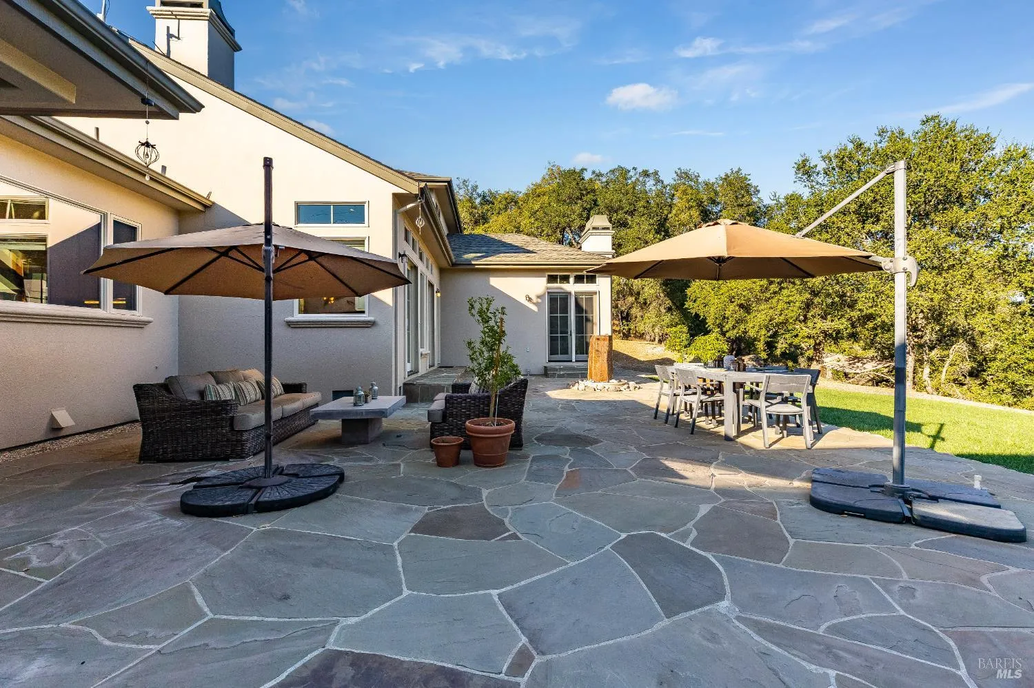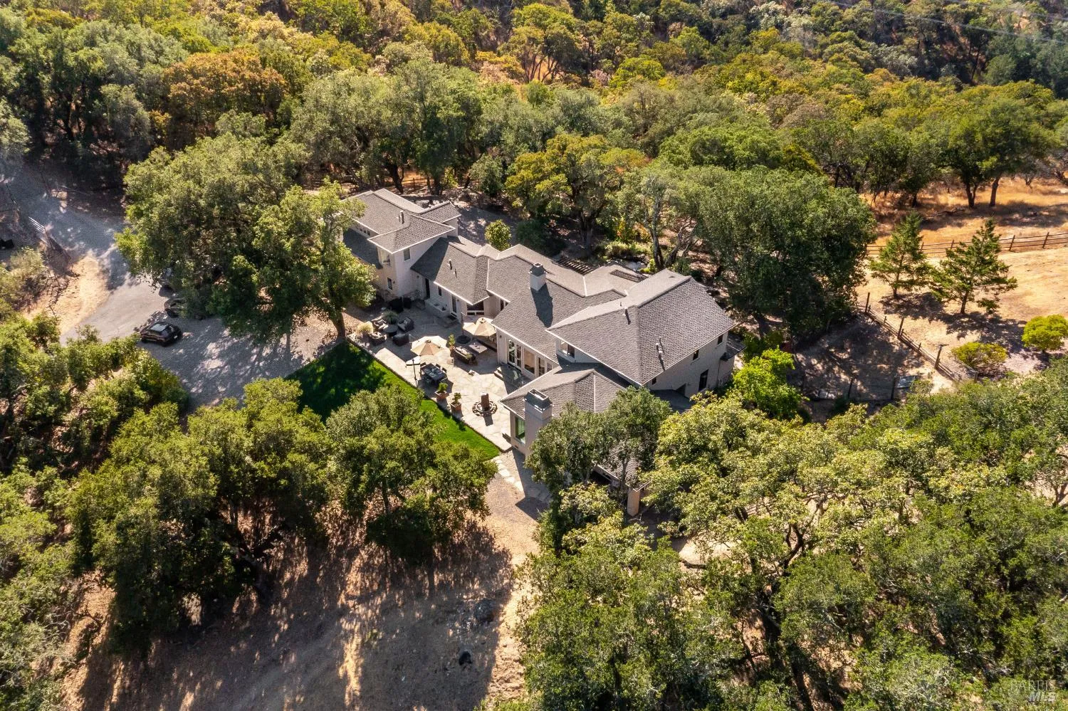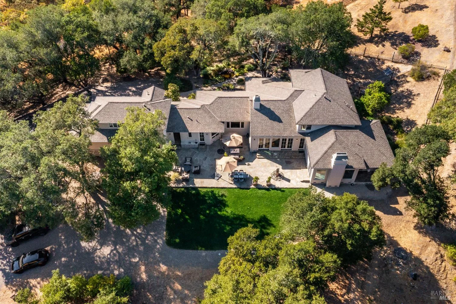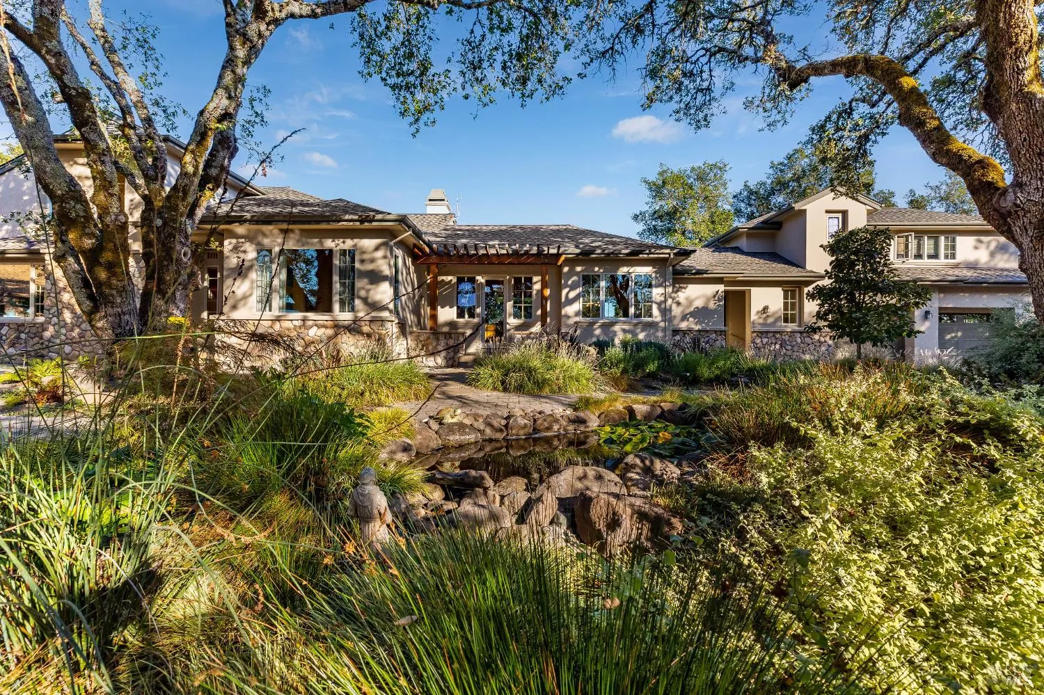 Poised on prime Sonoma County countryside 8373 Singing Hills Trl is the pinnacle of serenity and elegance. Originally part of Otto and Hansel (Mieth) Hagel’s historic ranch, this estate offers panoramic views, walking trails, a tranquil pond stocked with fish, and a versatile two story barn perfect for creative pursuits or a possible event venue.The custom 4200 sqft residence exudes warmth and sophistication with oak floors, vaulted ceiling light filled interiors and grand stone fireplaces- all creating a timeless welcoming ambiance. Custom French doors in the living room open to a flagstone patio with a built-in wet bar and soothing fountain. A chic library/study with custom built-ins and woodland views provides a quiet retreat.Designed for entertaining, the chef’s kitchen includes double ovens, a gas island cooktop, dual pantries and a charming breakfast nook. The main level primary suite is a true retreat, featuring a grand stone fireplace, sitting area, spa inspired bath, walk-in closet and private patio access. A breezeway leads to a three car garage and ADU/studio above-ideal for guests or a personal sanctuary. Located minutes from vibrant towns, this estate offers a rare combination of serene privacy and effortless daily living.