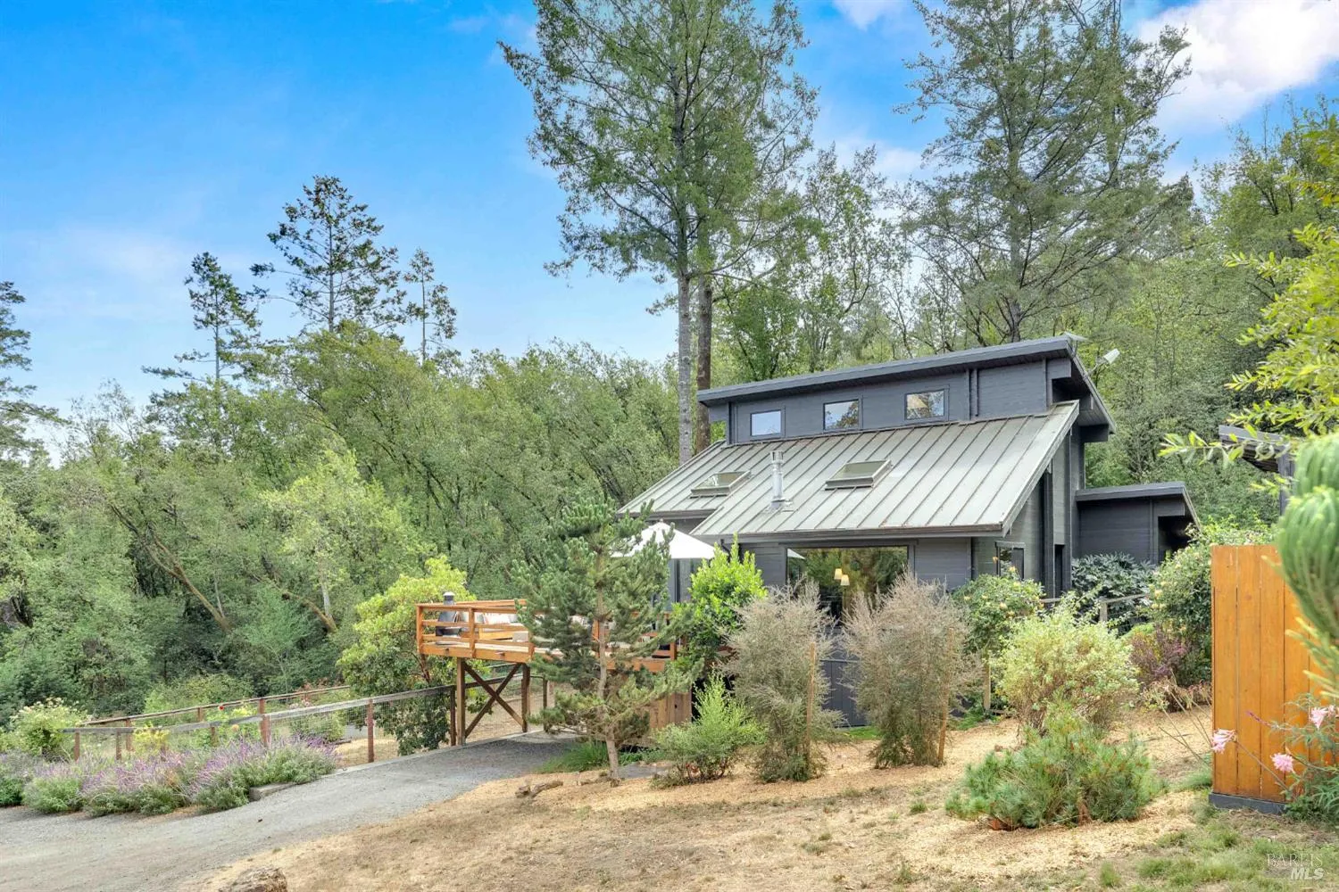 Featured in The NY Times, this one-of-a-kind off grid property combines modern character and rustic charm on approx. 6 acres in the hills of Sebastopol; just 15 min to town, 25 min to the coast and 90 min to SF. The cedar cabin offers 2 bds, 1 ba, & a spacious loft, with light-filled interiors that flow onto an expansive deck designed for outdoor living and entertaining. Surrounded by mature trees, a creek and lush landscaping, the cabin feels like an ultra-private sanctuary. A separate office structure offers a quiet space for working remotely while raised garden beds and a large yard – both surrounded by deer-proof fencing – add color and utility. Perched at the top of the site is a 50-foot lap pool with sweeping views of the surrounding forest and rolling hills. A detached 450 sqft 2-level studio provides endless possibilities: a creative space, fitness room, workshop, or additional retreat. This is a rare opportunity to enjoy off-grid living with modern upgrades that make you feel as connected as you want to be. The land itself is a sight to be seen: a private meadow, open skies and total seclusion at the end of a paved private lane. Welcome to a distinctive and tranquil West County retreat that balances modern comforts with feeling worlds away.