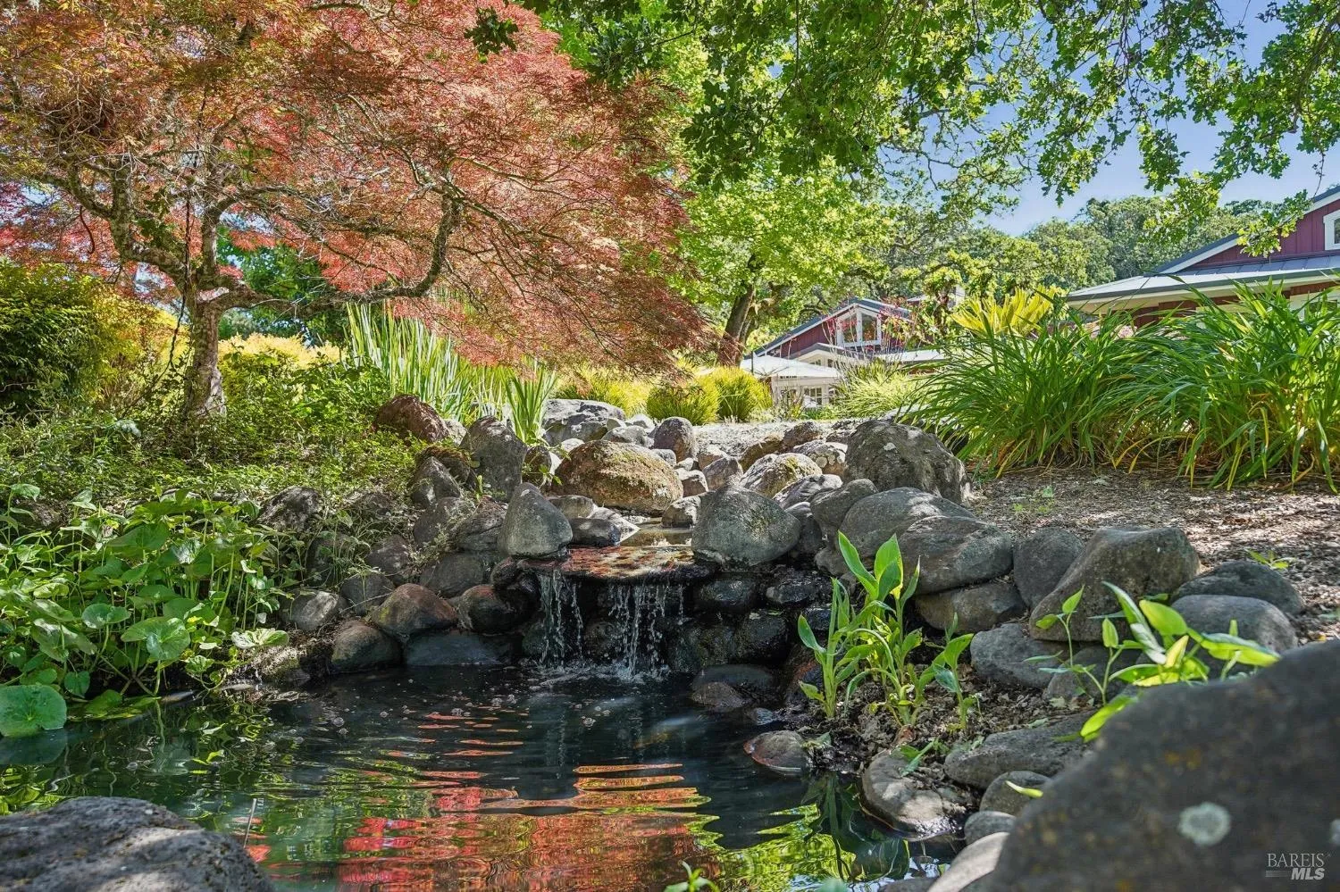Featured in Architectural Digest and lovingly known as The Williams-Sonoma House being that it was the home of W. Howard Lester, the president & CEO of the gourmet kitchenware chain, this estate is a statement in casual & refined Wine Country living. Nearly 9 acres of park-like grounds with year round pond, creek, trails through nature, rolling lawns, mature landscaping, and adjacent to the 1500+/- acre Jack London State park. The 3 bedroom plus bonus room/4 bath single level residence has an open floorplan and is the epitome of indoor/outdoor living with walls of French doors and floor to ceiling glass. Light and bright interiors with open beam ceilings in most rooms. Primary suite with fireplace, two walk in closets, and bonus room for the kiddos who might want to be a little closer to their parent’s room. In the hills it is rare to find such a large parcel with so much level land for outdoor enjoyment. Charming cabin is creekside and ideal for overflow guests. Take a dip in the pool, dine al fresco under the ancient Oak overlooking your private pond, wander the trails, or just unplug in the sunshine with quiet time only 45 minutes north of the Golden Gate. An estate with history and a true one of a kind.