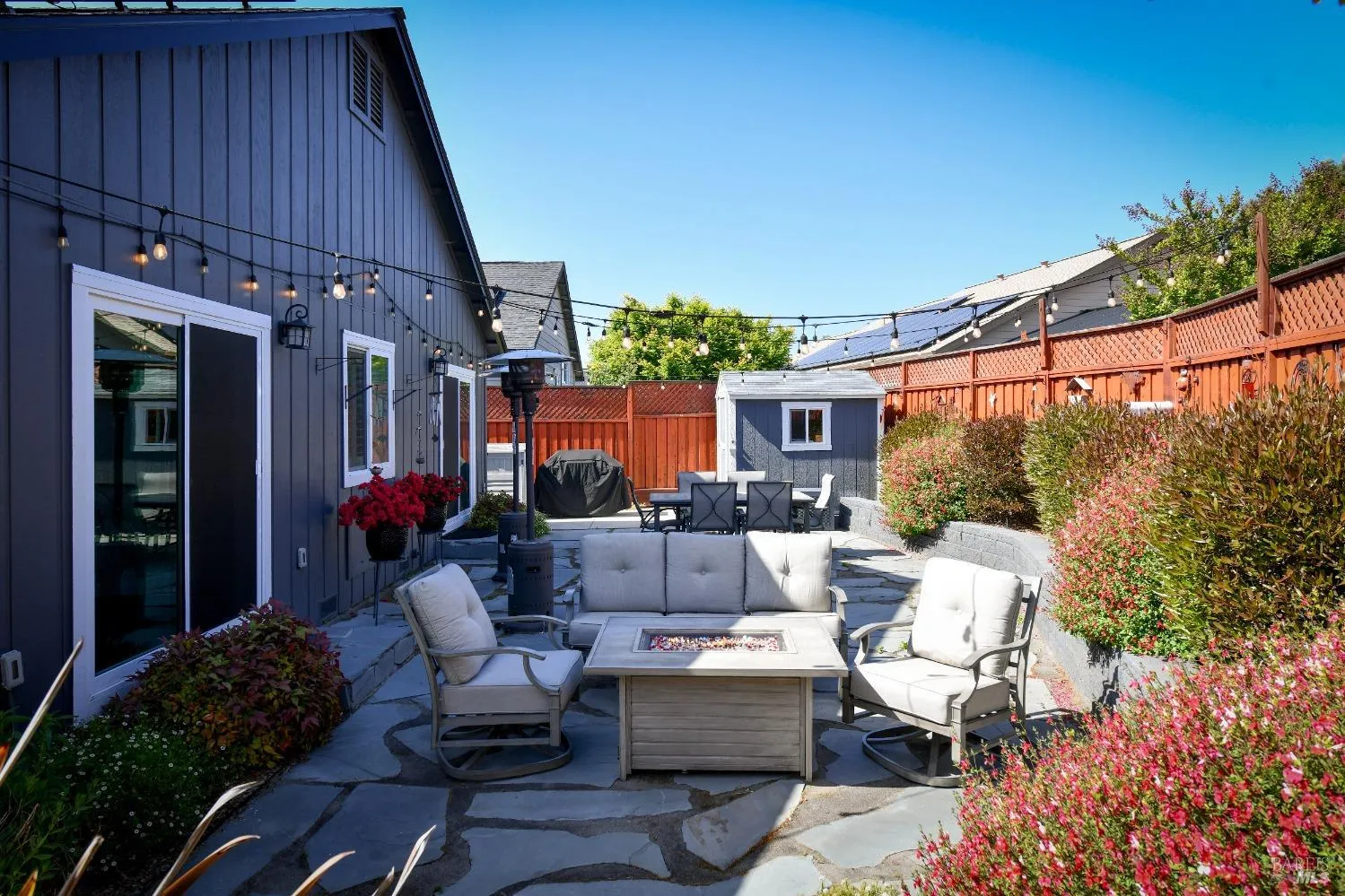 Beautiful Coffey Park Single-Story Home, built in 2019 and nestled in the heart of Coffey Park neighborhood. Offering 1,375 sq. ft. of thoughtfully designed living space, this home features 2 spacious bedrooms and 2 well-appointed bathrooms. The inviting primary suite is a true retreat, featuring a generous walk-in closet and a beautifully finished en suite bathroom, complete with a jetted tub and a separate shower. Soaring vaulted ceilings and abundant natural light. The open-concept layout seamlessly connects the kitchen, dining area, living room, and backyard. All custom cabinets offer soft close drawers and cupboards, walk through pantry with an abundance of shelves! All doors in the house are solid wood, all windows are upgraded. The front and back yards are professionally designed with an automatic sprinkler system for the plants and the lawn. Beautiful water feature in the back yard sounds like a running brook.The best feature… are the solar panels! There are enough to run the home, enough battery back up during an outage. A tough shed in the back yard has electricity perfect for storage or a shop.The garage is finished with recess lighting. Bay window has built in storage and seating. Water spigots on every corner. Christmas plugs in the eaves. Move-in ready home!