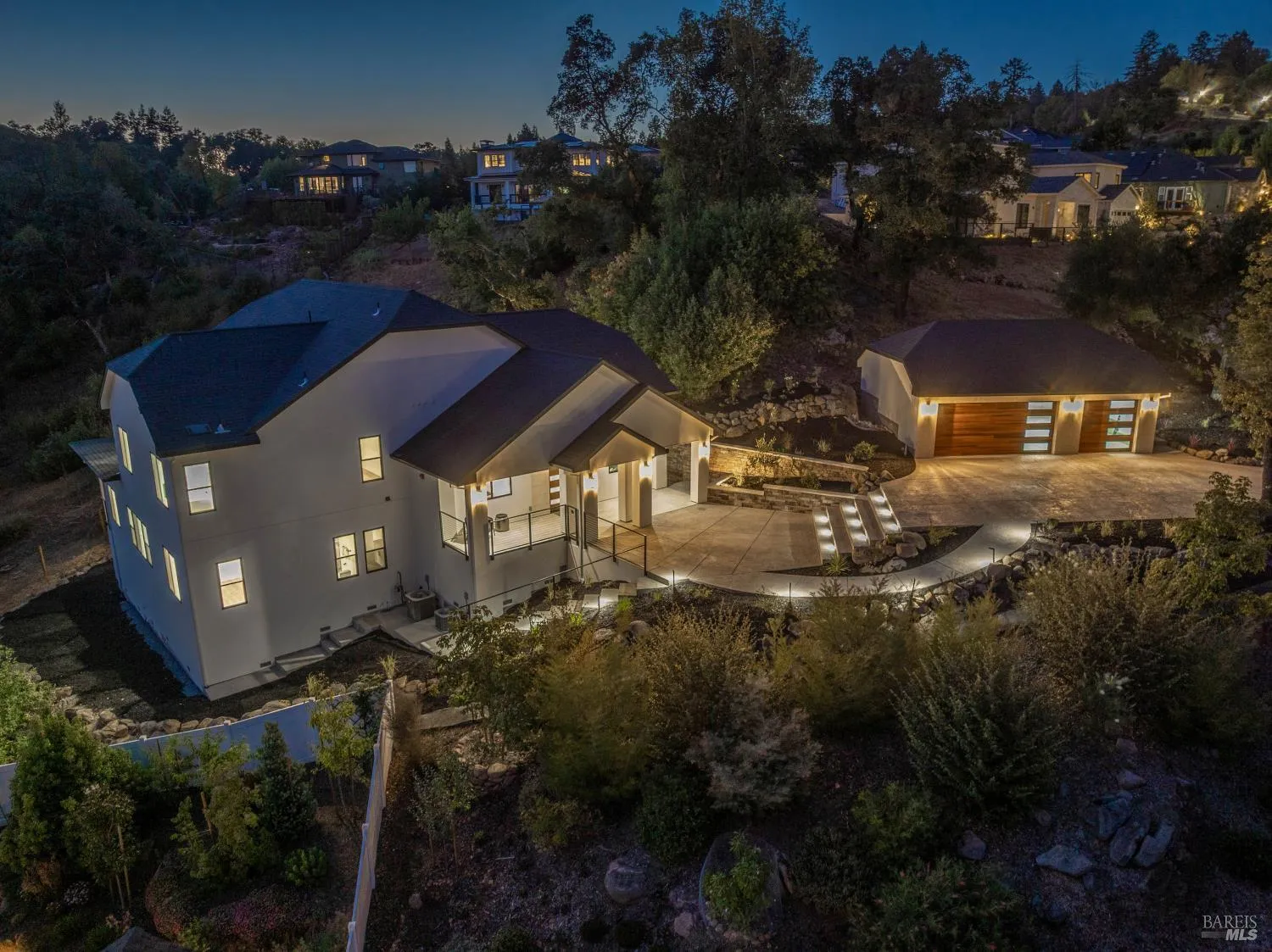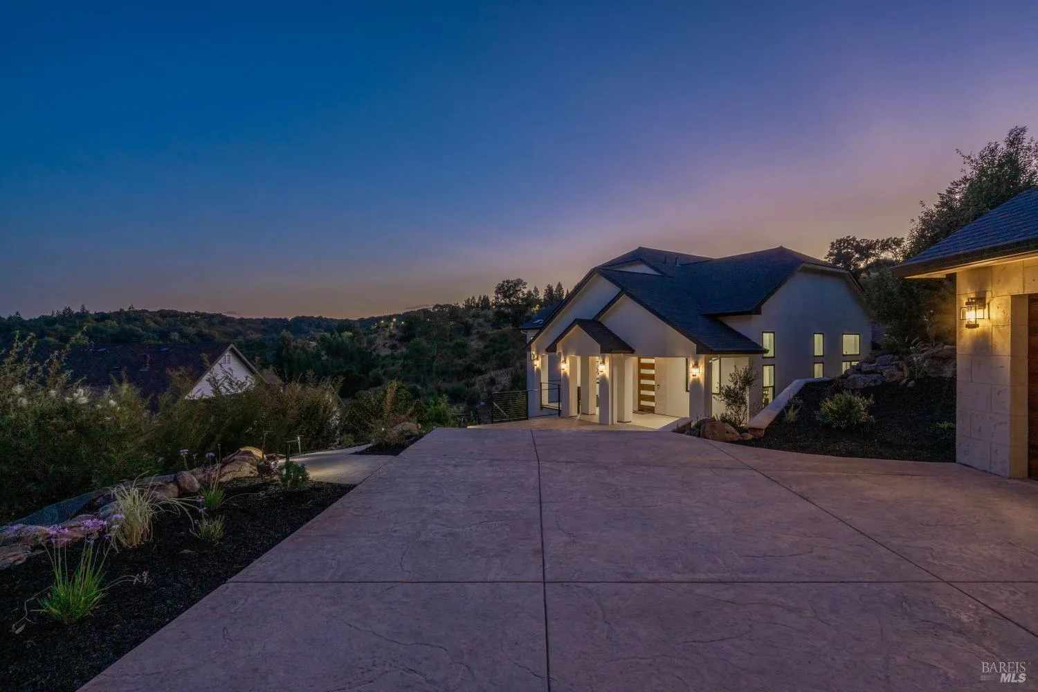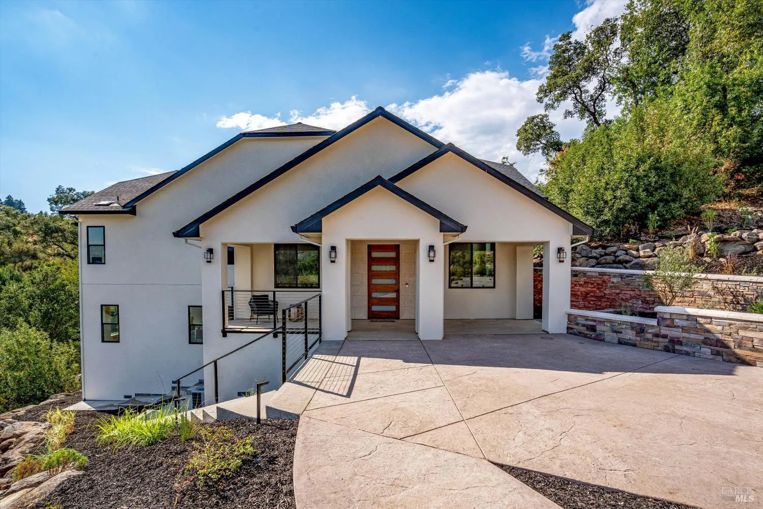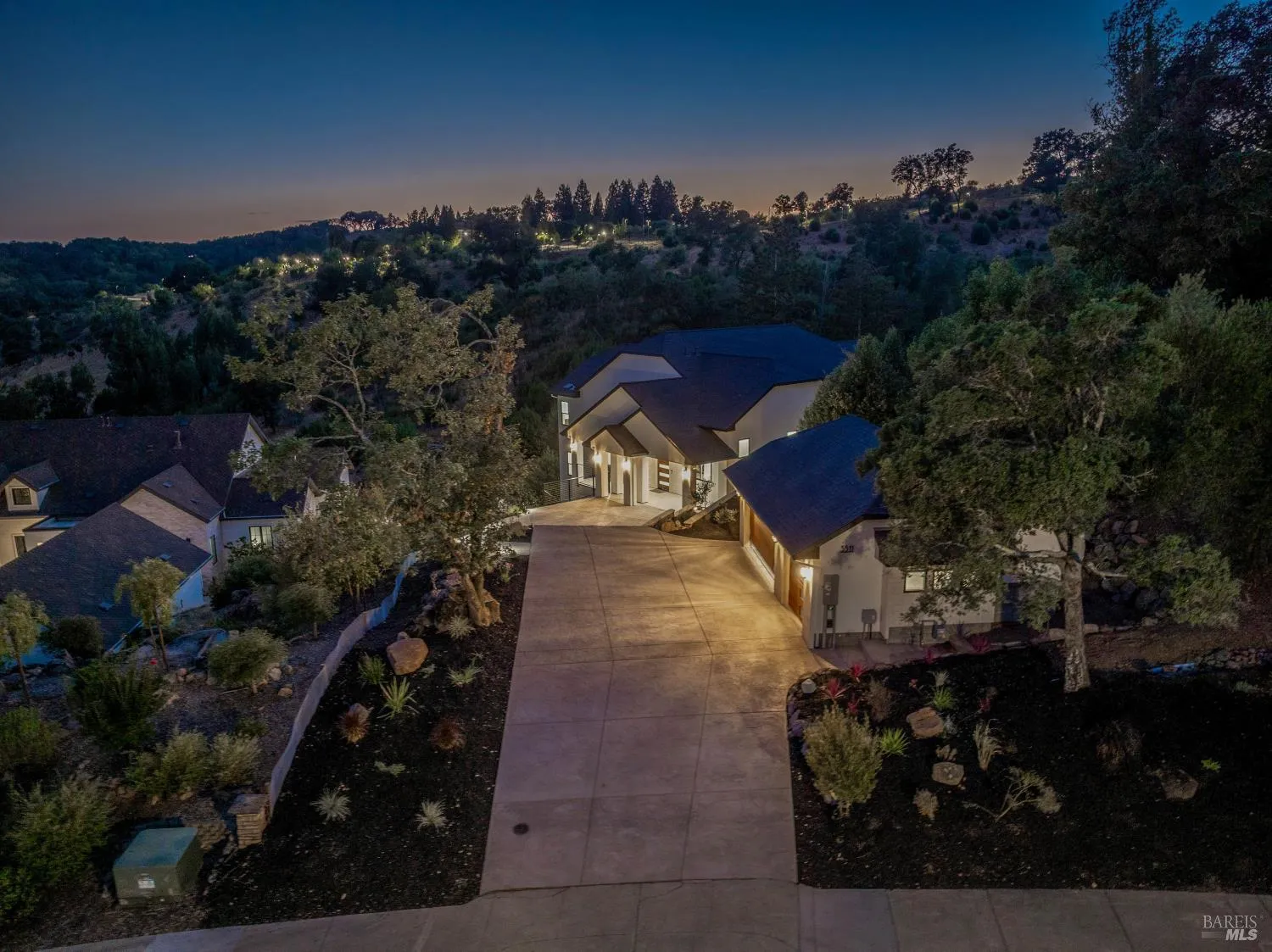 Tucked away in a quiet cul-de-sac, this stunning new construction offers the perfect balance of luxury, privacy, and Wine Country living. Set on a generous and private 0.66 acre lot, the home spans 3,700 square feet and features 4 bedrooms and 3.5 baths, along with a detached three car garage. The main level is designed for both everyday comfort and effortless entertaining. A gourmet kitchen with stainless steel appliances anchors the heart of the home, flowing seamlessly into the dining area, breakfast nook, and two inviting living spaces. An office on the main floor provides the ideal work from home retreat, while abundant natural light creates a warm and welcoming atmosphere throughout. Upstairs, the primary suite is a true sanctuary. Wake up to peaceful mountain views and unwind in the spa like bathroom, complete with a luxurious soaking tub and an expansive walk in closet, your own private escape at the end of the day. The lower level offers incredible flexibility for families or guests, featuring three additional bedrooms and a convenient kitchenette, perfect for multigenerational living or extended stays. Surrounded by natural beauty and set back from neighboring homes, the property provides exceptional privacy and tranquility, perfect for relaxing, entertaining, or simply enjoying the peaceful Wine Country setting. This exceptional home truly captures the essence of Sonoma County living: elegant, serene, and thoughtfully designed for those who value space and privacy.
