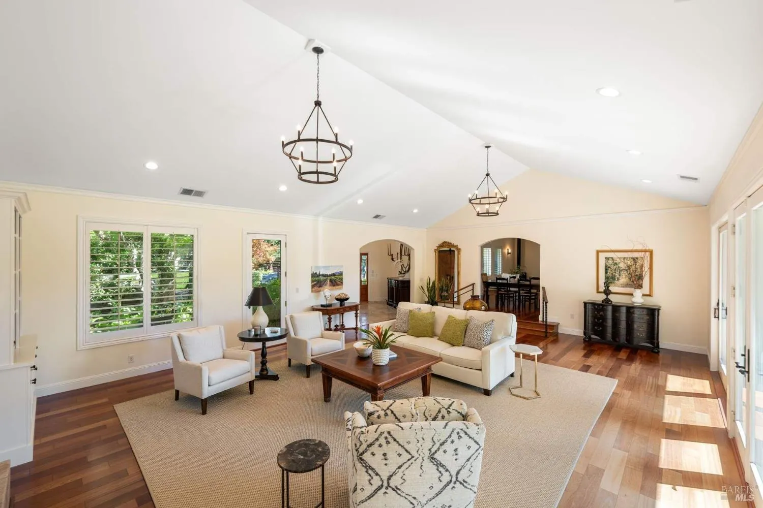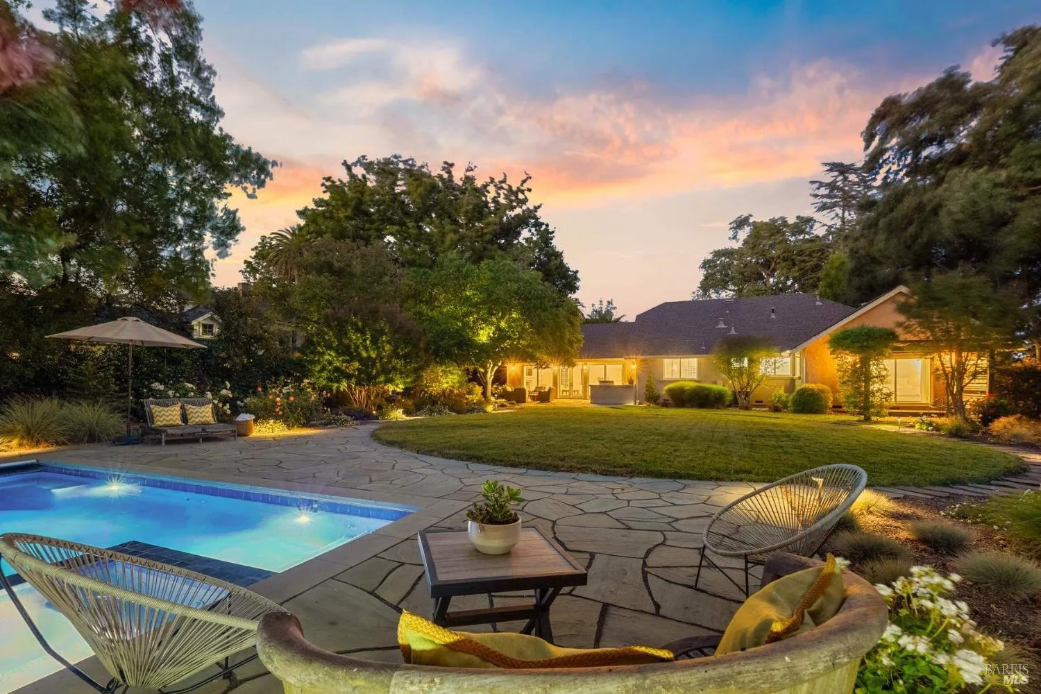 Just minutes from the charm and energy of Historic Sonoma Plaza, this inviting ranch-style retreat rests in one of Eastside Sonoma’s most coveted neighborhoods. Set on nearly half an acre of landscaped grounds, the property showcases lush gardens, a sprawling lawn, and a sparkling pool and spa with an expansive patio and outdoor kitchen ideal for both entertaining and quiet enjoyment. Inside, over 2,800 sq. ft. of single-level living features soaring cathedral ceilings, warm hardwood floors, and plantation shutters filling each room with natural light. The chef’s kitchen pairs elegance with function, offering a Wolf range, Sub-Zero refrigerator, quartzite counters, and walk-in pantry with wine fridge. The primary suite is a private retreat with a spacious walk-in closet, spa-like soaking tub, and generous shower, plus private sitting area access. Two additional bedrooms, a full bath, and a half bath provide comfort for family and guests. Practical features private well, 3-bedroom septic, natural gas, and back-up generator ensure year-round peace of mind. Blending sophistication, comfort, and an enviable Sonoma Valley address.