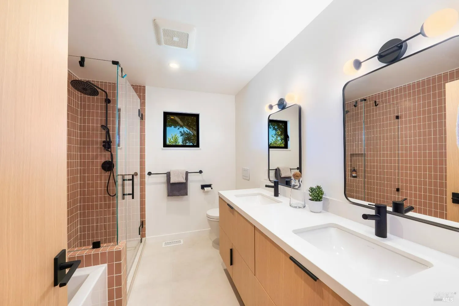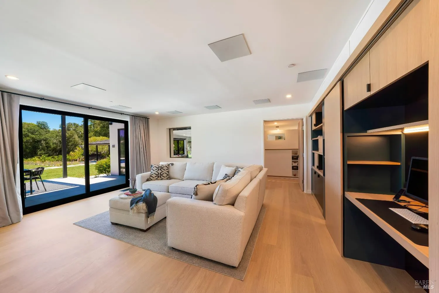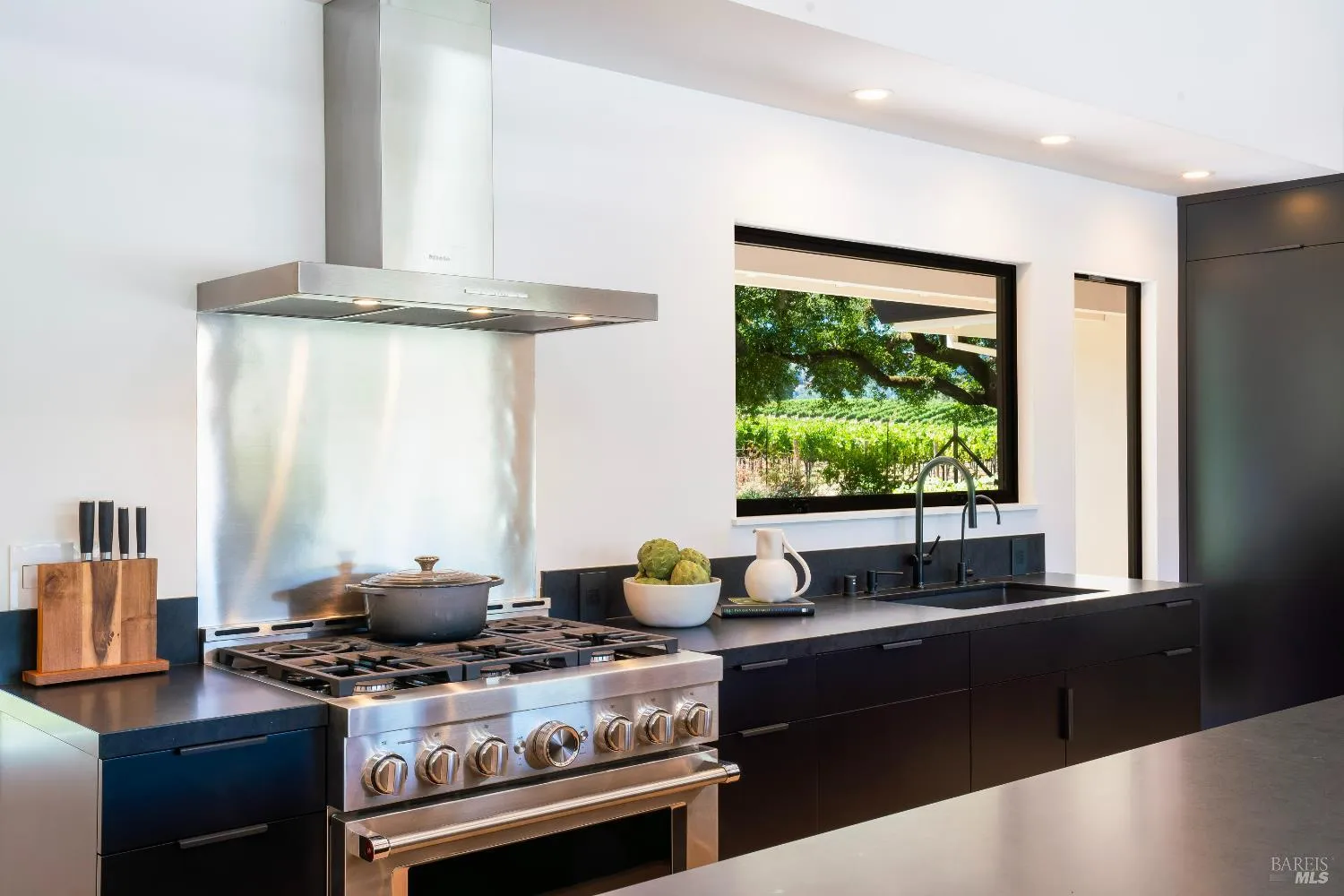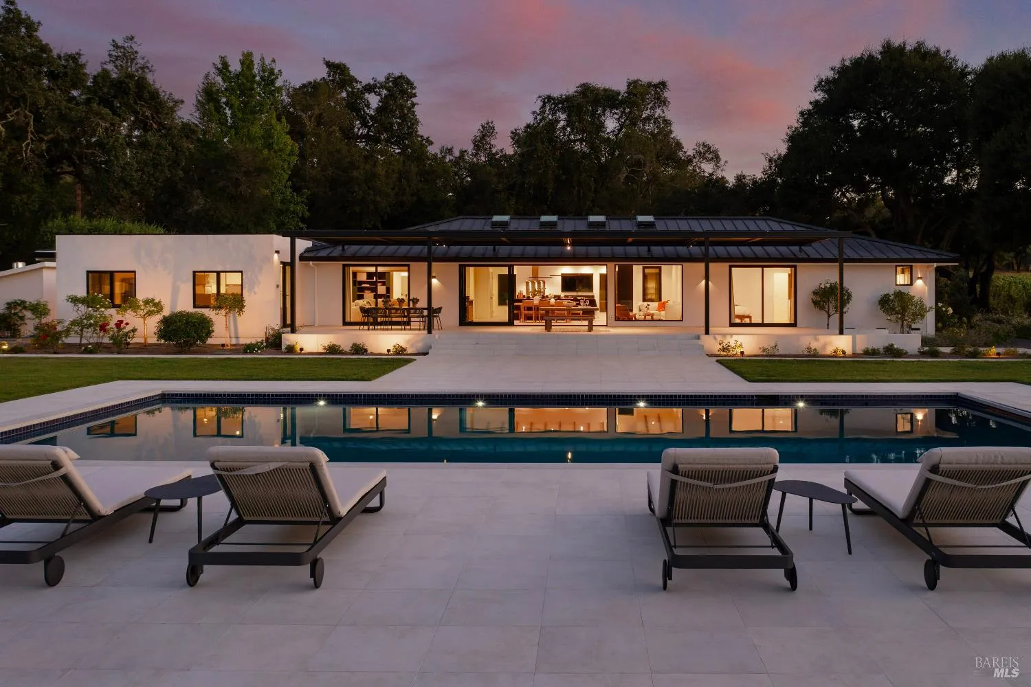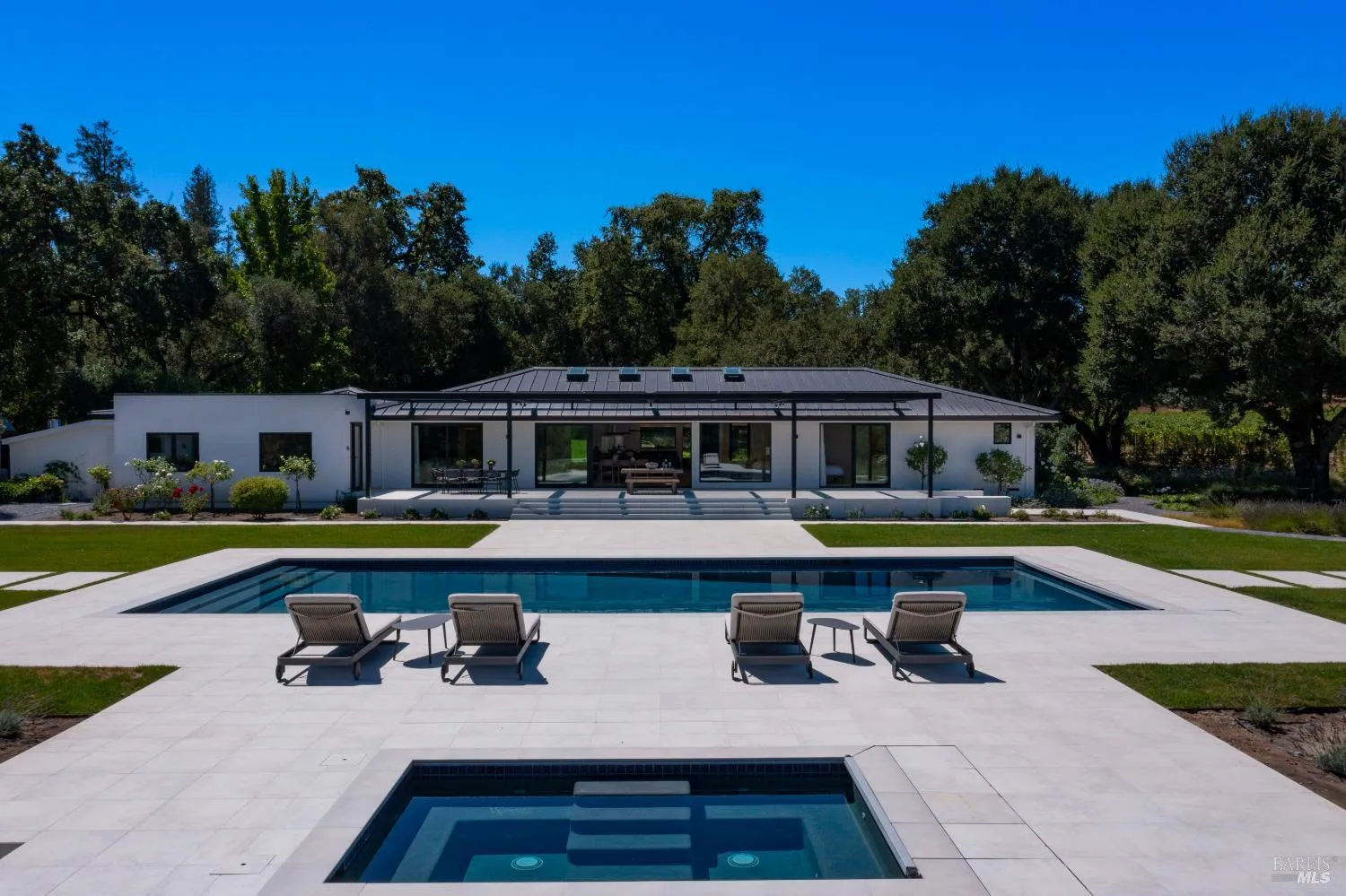 Modern country retreat offers serene lifestyle that beautifully blends metropolitan style w/rural comfort. Turnkey & recently renovated w/ exceptional attention to detail, premium appliances, Monarch plank flooring, beautiful finishes. Single-level residence surrounded by scenic vineyards, graceful oaks, lawns, w/ Maacama Creek frontage. Minimalist aesthetic, expansive windows & doors create seamless indoor-outdoor flow. Clean lines, vaulted ceilings, & open-concept floor plan in main living area offer an airy, modern ambiance & separates bedroom wing from spacious family room w/custom bunks & access to terrace. Additional media room w/custom cabinetry featuring discreet desk workspace & custom library wall. Primary ensuite overlooking pool & views, plus two additional guest BRs. Designed for entertaining, the grounds feature dining terrace w/mechanized trellis overlooking 20’x 45′ pool & lush landscaping, 8′ x 12′ spa, open-air cabana w/motorized wall screens, outdoor kitchen w/island, pizza oven, pool bath & shower, SportMaster tennis court, delightful vegetable garden w/raised beds & fruit trees, & approx 1.5 acre hobby vineyard. Tesla 22.4Kw Solar array + Powerwalls, multiple Tesla EV chargers, generator, 2 wells. A rare sanctuary of modern design & resort style amenities.