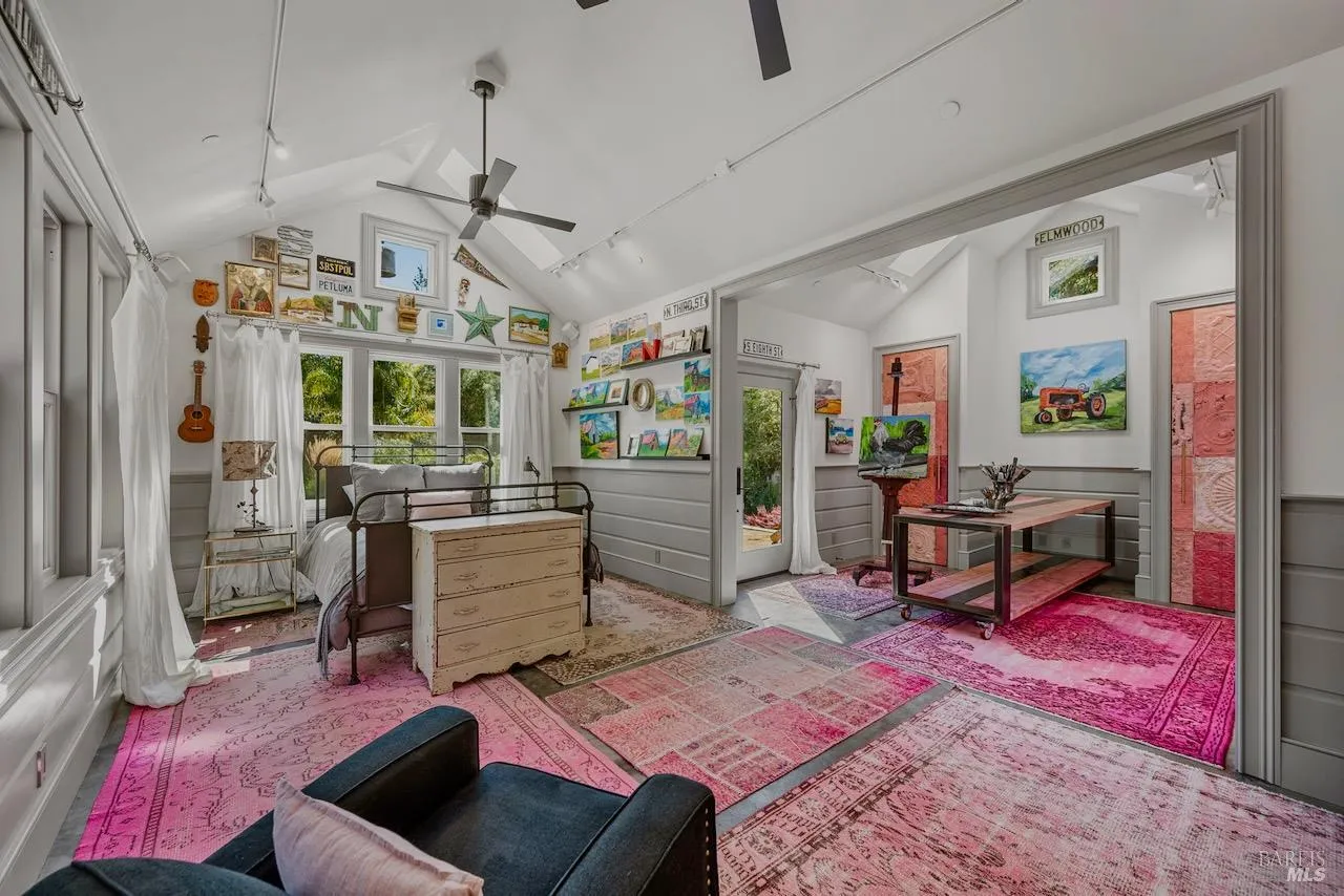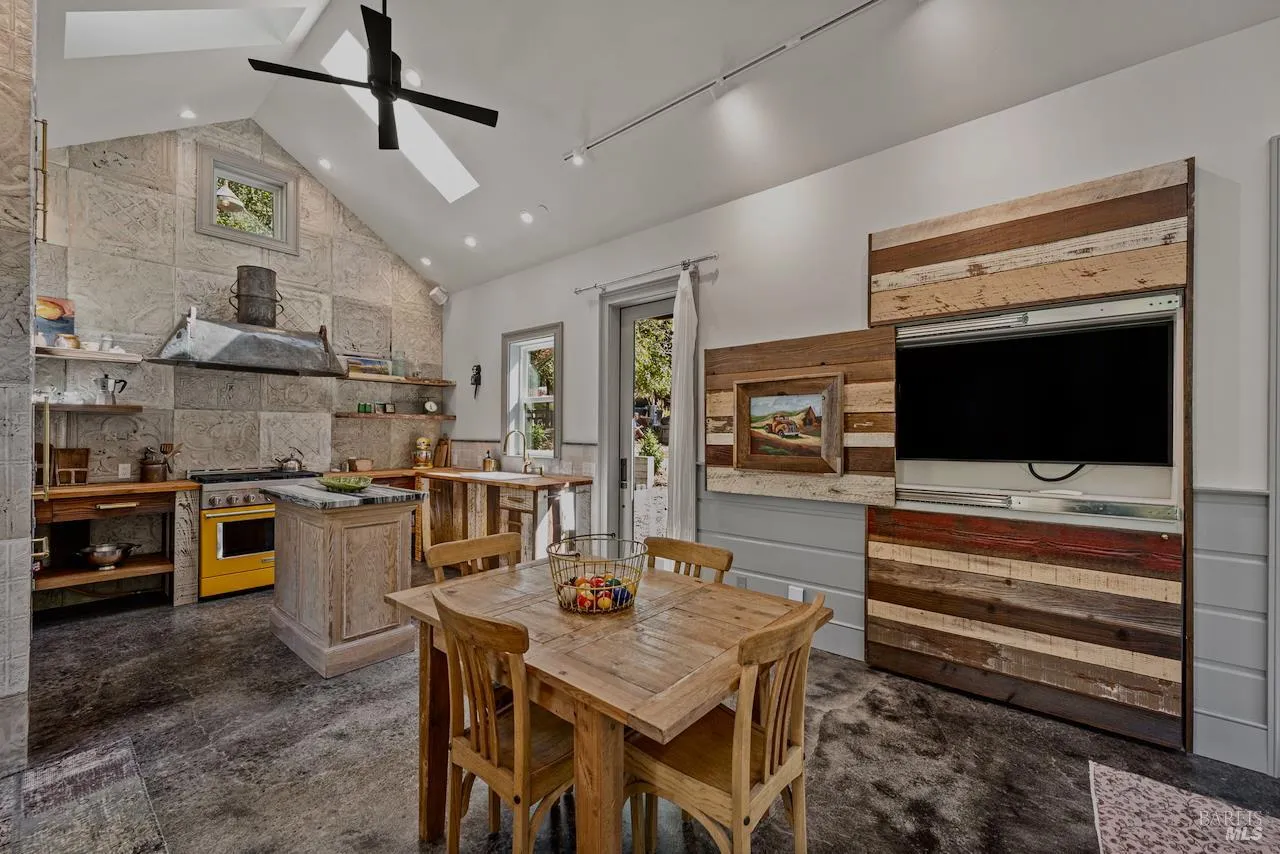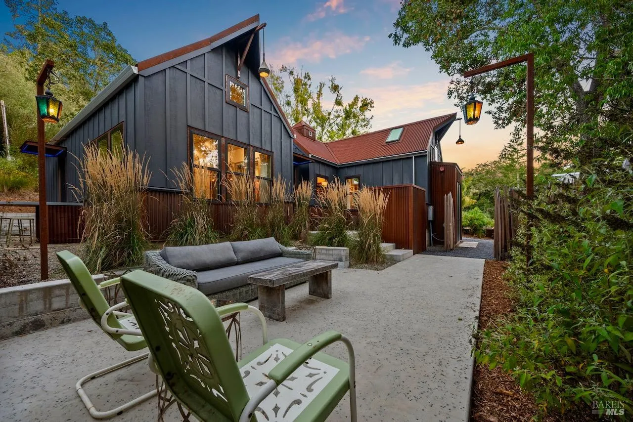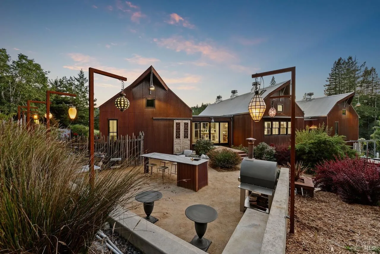 Featured in Architectural Digest and Dwell, this Sebastopol retreat by Dwelling Point Design epitomizes bespoke living. Fifteen-foot ceilings, board-formed concrete, and corten steel siding set the architectural stage, while interiors are layered with global provenance: custom flooring milled in the Sierras, hand-glazed Zellige tile from Morocco, artisan steel vanities, and vintage chandeliers from Paris, Amsterdam, and Turkey. At the heart, a custom LaCanche 53” range anchors the chef’s kitchen–paired with Sub-Zero and Cove appliances. A phenomenal guesthouse–private, comfortable, and spacious enough to live in full time yet perfect for visitors–expands the property’s versatility and lifestyle appeal. It’s just as thoughtfully designed as the main residence. Outdoor living includes a kitchen with wood-fired pizza oven, a spa, and extensive gardens, all anchored by a striking steel pavilion. Every element is both curated and considered–solar power, whole-home generator, and smart systems balancing technology with timeless design. Springwater is more than a home. It’s a vision of Wine Country living–crafted, storied, and unforgettable.