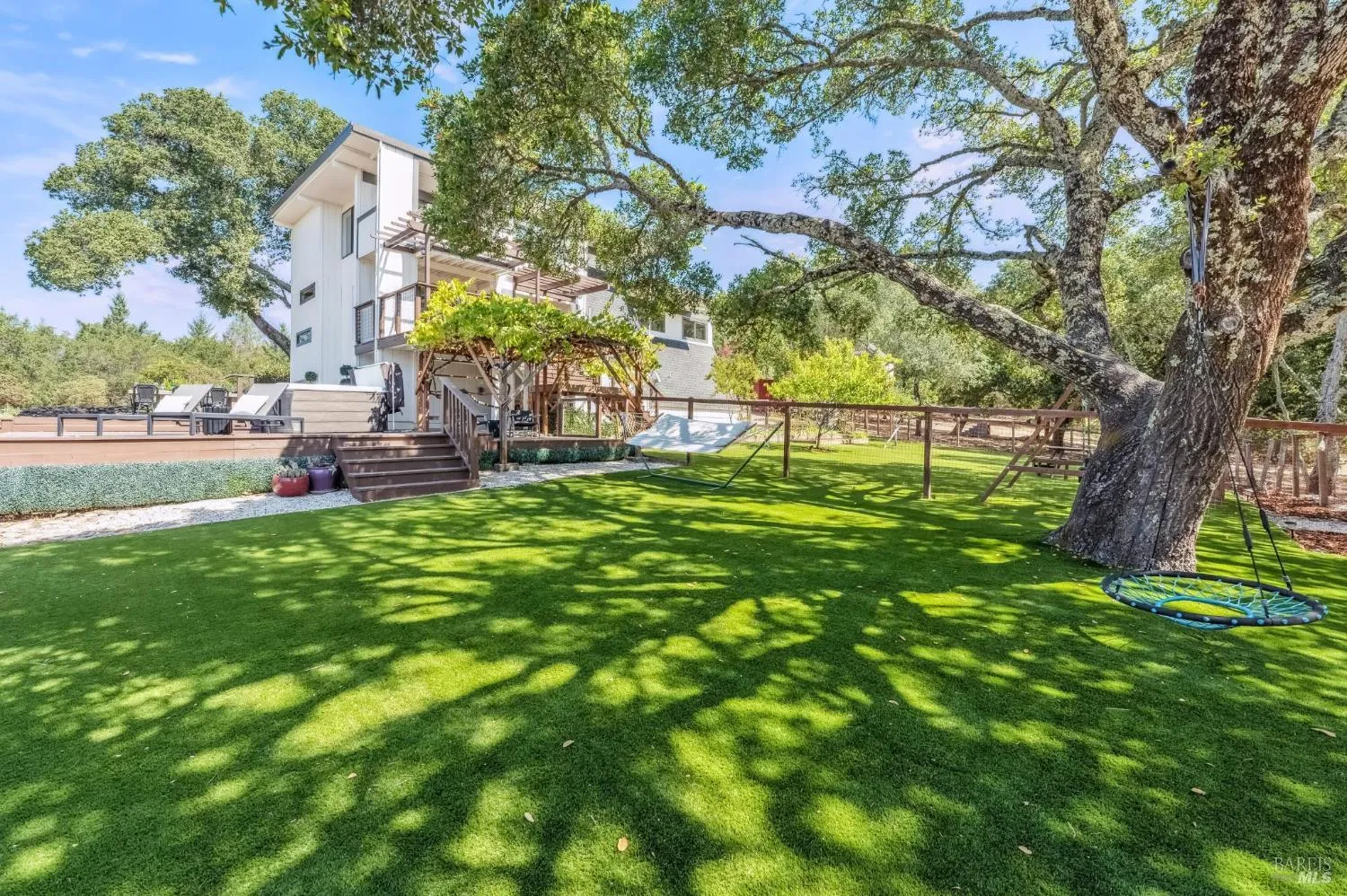 Now offered at $1,850,000 – exceptional value in Glen Ellen’s coveted Trinity area. Framed by majestic oaks and redwoods on approx. 3.36 acres, this contemporary retreat delivers the Wine Country lifestyle with room to relax, gather, and play. Inside, soaring beamed ceilings and hardwood floors set a warm, airy tone. The chef’s kitchen boasts granite countertops, cherrywood cabinetry, a pantry, and a sunny breakfast nook overlooking the deck. Two spacious bedroom suites provide great separationone with a walk-in closet and balcony, the other with a light-filled sunroomwhile the versatile loft suits office, fitness, or guest use. Upgrades include a fully owned smart solar system under warranty, enhancing energy efficiency. A two-car garage with extra storage and a wine cellar completes the interior. Outdoors, swim in the sparkling lap pool, unwind in the hot tub, play bocce or horseshoes, and entertain under the open-air pavilion. A broad lawn, fenced garden with fruit trees, and whimsical extrasa treehouse and zip linecreate your own private park. With valley panoramas from many windows, this is indoor-outdoor living at its best. Potential for a vacation rental permit; buyer to verify.