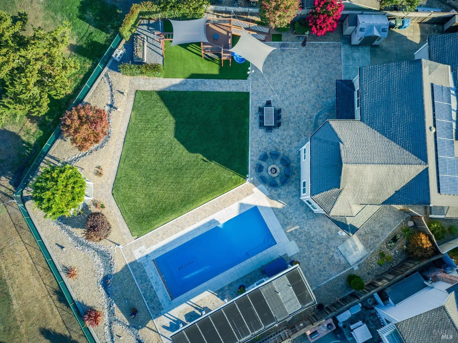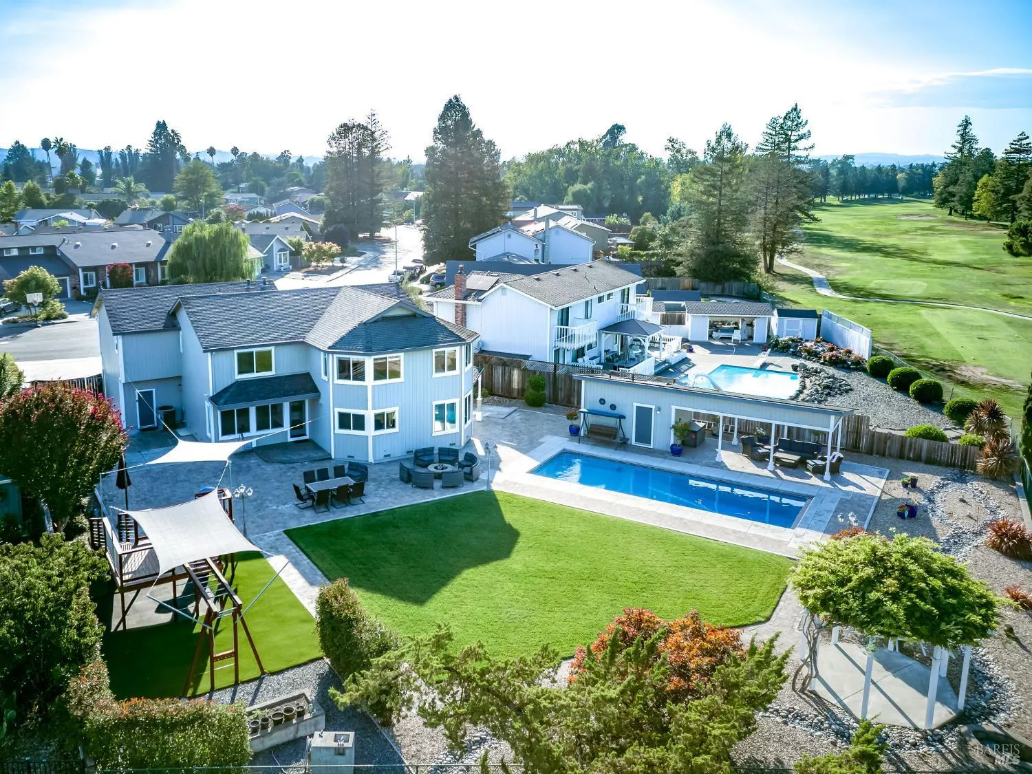 Welcome to your new home at 5720 Dexter Circle in Rohnert Park! Nestled on a quiet modified cul-de-sac along the Foxtail Golf Course, this stunning two-story home is designed for both everyday living and effortless entertaining. Spanning 3,470 sq. ft., it offers 5 spacious bedrooms and 3.5 bathrooms, providing plenty of room for everyone to spread out, grow, and create lasting memories. Step outside to your own private retreat, complete with a large paver patio, endless pool, pool house with covered lanai, natural gas firepit, and play structure overlooking sweeping views of the golf course. Whether it’s a summer barbecue, a pool party, or a cozy evening by the fire, this backyard is built for year-round enjoyment. Inside, the heart of the home features a bright kitchen, living room, and breakfast area framed by 12 windows that showcase the scenic golf course views. Upstairs, you’ll find all five bedrooms plus a convenient laundry room .Set on a rare 0.41-acre lot, the property offers endless possibilities for storage, room for pets, or space to host celebrations. The attached 3-car garage, wide driveway, and large side gate make it easy to store recreational vehicles, boats, or larger equipment securely.