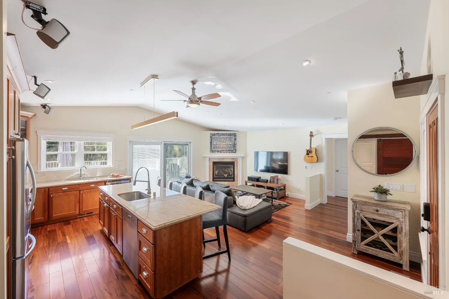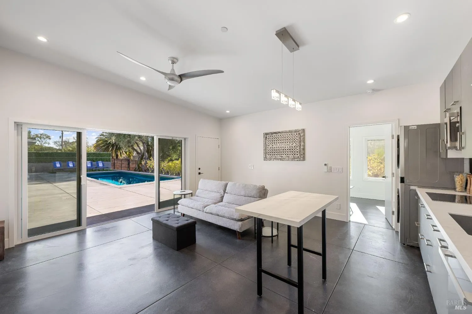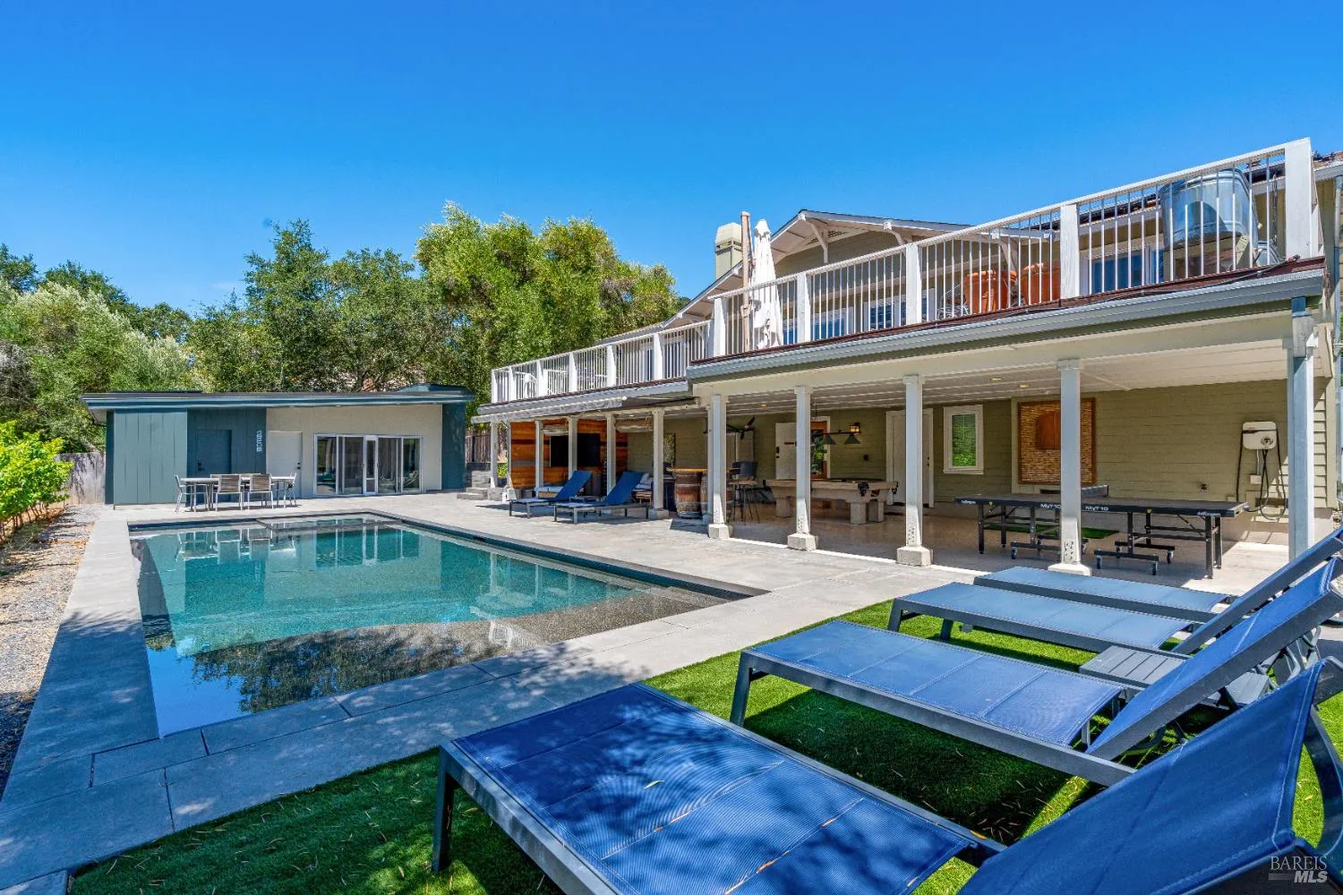 Gated Glen Ellen retreat on .69 acre with sweeping Sonoma Mountain views. With 2,137 sq. ft. of living space the main home offers 3bd/2ba, hardwood floors, updated baths, and expansive decks. A new 1bd/1ba ADU includes Miele appliances and laundry. Grounds feature a pool, outdoor shower, drought-tolerant gardens, a 60-vine Grenache vineyard with path to the creek, plus solar, a large shop and space in the basement. Property is on public utilities. Downtown Glen Ellen, ~1 hour to San Francisco.