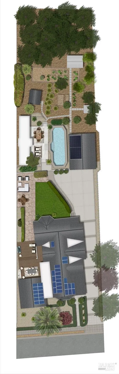 Rare offering just off the Sonoma Plaza – gorgeous downtown east side home on an large parel. Designer-renovated to combine timeless authenticity with modern convenience. Light-filled main home has 3 generous bedrooms (2 are ensuite) and 2.5 baths, high ceilings, hardwood floors, curated fixtures and a soothing color palette. Oversized windows and French doors frame and access lush gardens for everyday living and event style entertaining. Glassed vestibule leads indoors to inviting spaces including great room living/dining room with outdoor terrace and garden access. Skylit gourmet kitchen opens to spacious dining/family room. Luxurious primary suite wing with a boutique retreat feel has a bay window sitting area, custom built-ins, walk-in closet and a spa-like bathroom. Detached guest quarters aside the pool is an enchanting converted train car with hardwood floors and a full bath – private and stylish w/outdoor entertaining area. Multiple entertaining patios and a bountiful farm-to-table growing garden with outbuildings sustains the in-town yet country feel of Sonoma. Includes an oversized garage with room for a boat(s), solar & a generator. Coveted location a stroll to the park, shops & entertainment, 1+/- hour to San Francisco.