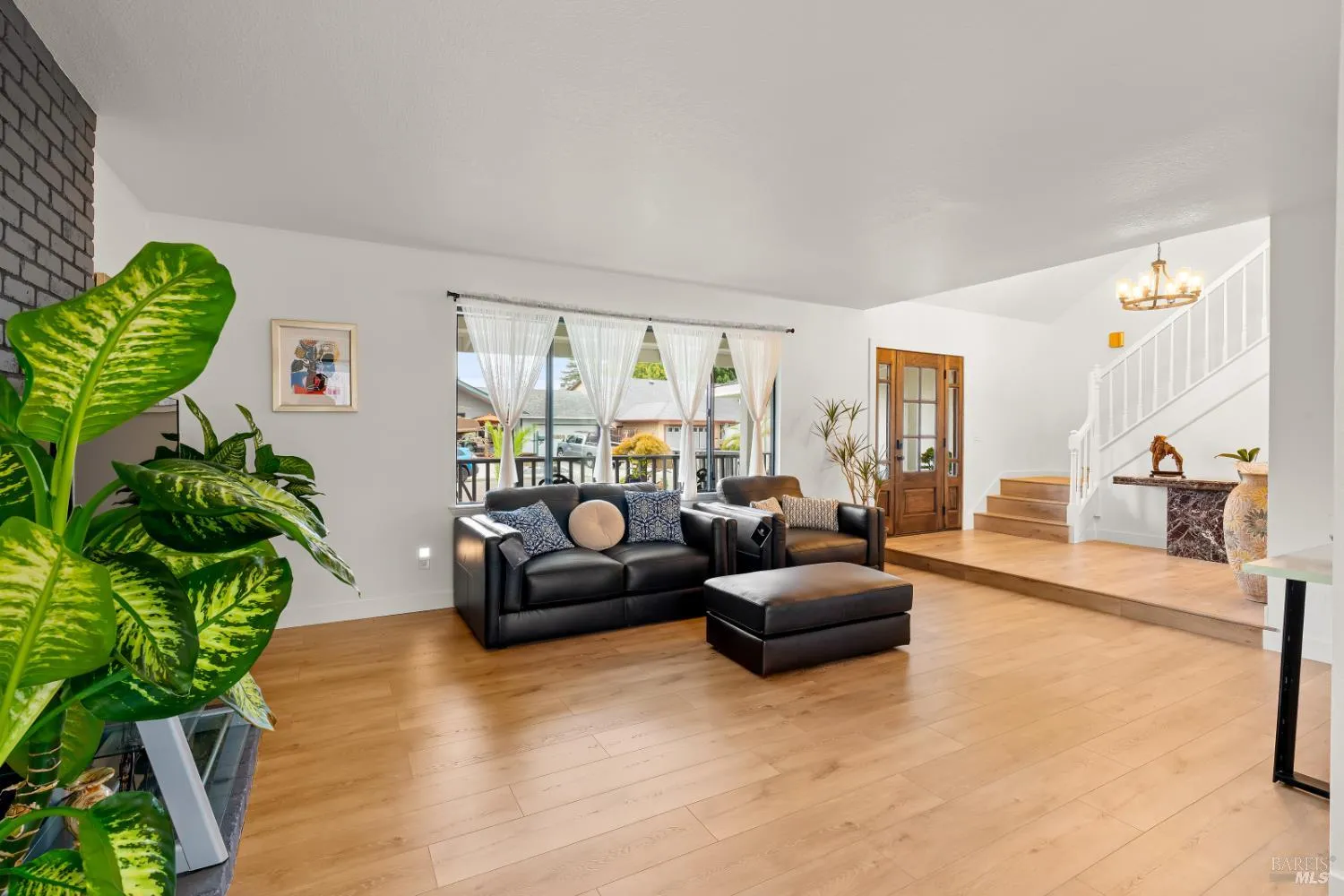 Welcome to the move in ready beautifully updated 4-bedroom home with a 5th bedroom option on main level and 3 full baths in Rohnert Park’s desirable E Section. The spacious layout features a large downstairs suite with two sliding doors to the yard and a fully remodeled bath ideal as a private bedroom, office or rental. Upstairs offers a primary suite with ensuite bath and 2 huge walk-in style closets, plus 3 more bedrooms, a bath and a storage room. Extensive upgrades include a stunning kitchen with abundent modern wood cabinets, quartz counters, elegant backsplash, recessed lighting and newer appliances; remodeled baths with quartz surrounds and contemporary vanities; waterproof laminate flooring throughout; fresh paint inside and out; new ceilings, garage and entry doors, and vapor barrier. Mechanical upgrades include a newer furnace, tankless water heater, new Moen Flo Smart water monitor/shutoff, and brand-new high-end washer/dryer. Outdoor highlights feature two covered patios, new palm and fruit trees, potential RV/boat parking, and generous front/side/backyard spaces. With no HOA or Mello-Roos, this home offers both comfort and value. Conveniently located near parks, schools, shopping, SSU, Green Music Center, SMART Train, Hwy 101, restaurants and more. Do not miss it!