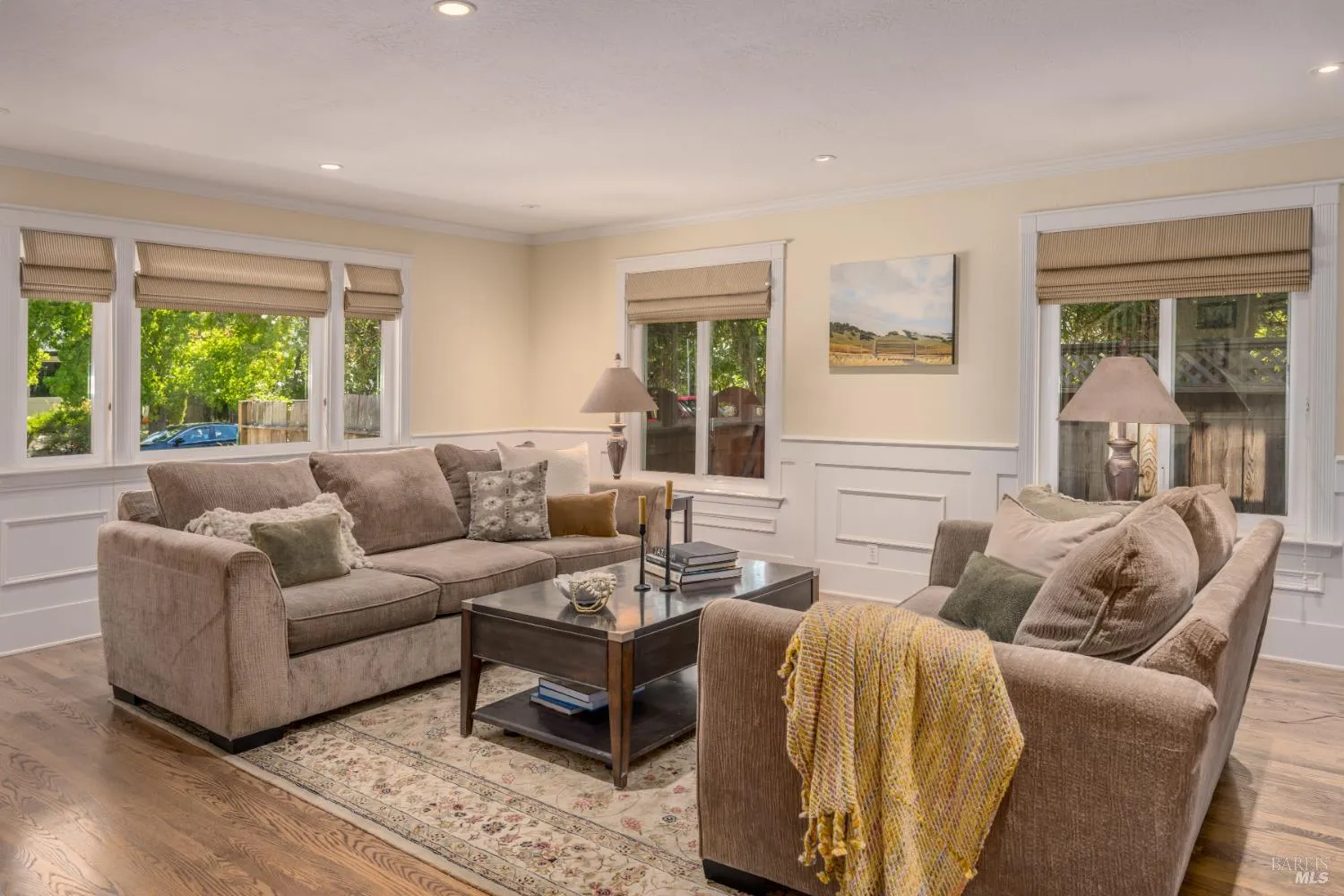 Located on Sonoma’s east side just blocks from the Plaza, 775 4th Street East blends Craftsman character with modern updates. The 4-bedroom, 3-bathroom home features a formal dining room, spacious living areas, and a chef’s kitchen with custom cabinetry and a vintage O’Keefe & Merritt stove. Quality details include hardwood floors, wainscoting, recessed lighting on Lutron dimmers, Emtek hardware, and a stone fireplace. Upstairs, large bedrooms with dormers and ample closets provide private retreats, while a main-level guest suite adds flexibility. Outdoors, the backyard is designed for entertaining with a half-court sport court and professionally landscaped gardens with programmable Luxor lighting. Additional highlights include central heat and air, a two-car garage, and proximity to schools, parks, and world-class dining.