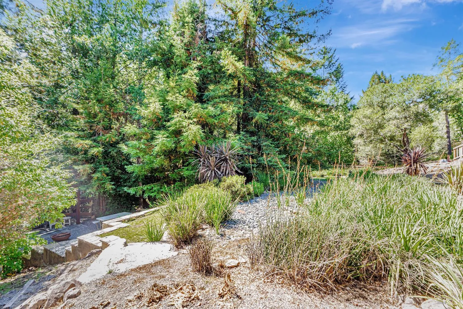 This Sebastopol country property presents an exceptional blend of open meadow, ideally suited for fruit trees and gardens, and serene walking trails through a redwood forest, all encompassed within 4+ acres. The light-filled 3-bedroom home features Craftsman details and is designed for seamless indoor/outdoor living. The kitchen includes substantial cabinetry and adjoins a sunroom, while the inviting living room is equipped with a stand-alone gas fireplace and flows to a spacious deck with scenic views. The spacious primary suite accommodates a separate office area and a cedar-lined walk-in closet. The primary bathroom is notable for its extensive glass-block and tile shower. The family/game room, equipped with a wet bar, offers opportunities for fun and recreation. In the multi-room basement there’s a wine cellar and room for hobbies. There’s a two-car detached garage. Outdoor amenities feature an amphitheater and stage for gatherings and activities. There’s a separate fully fenced area for pets, mature fruit trees and raised garden beds. Experience the restorative benefits of nature along the property’s forested trails. This distinctive property is located within desirable West Sonoma County, less than 12 miles to the beach and under 7 miles to Sebastopol.
