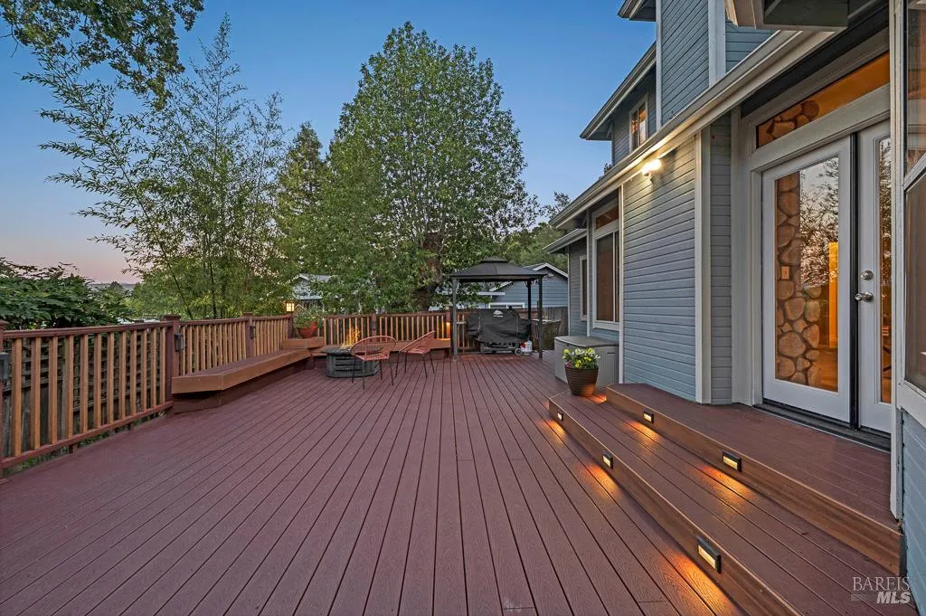 Entertainer’s Dream in Private Bennett Valley Setting! Welcome to this expansive home -From the moment you arrive, a two-story entry and sweeping staircase set the tone. Vaulted ceilings soar above a sunken living room anchored by a fireplace,and the adjacent dining area comfortably seats 10, with a great open floor plan. At the heart of the home, the updated kitchen shines. A garden window fills the space with natural light, and new appliances including an induction cooktop and stainless refrigerator. A breakfast nook offers wraparound views of the hills. The open-concept layout flows seamlessly into a cozy den, complete with a wet bar and built-in refrigerator to support entertaining. French doors lead to a generous Trex deck featuring built-in seating, a pergola, and a propane fire tableideal for entertaining. On the first floor, a guest bedroom and full bathroom provide an ideal guest suite. A conveniently placed laundry room adds everyday ease. A 3-car garage offers built-in cabinetry, a workbench, and overhead storage. Retreat upstairs to the primary suite, where vaulted ceilings, a jetted tub, oversized shower, and walk-in closet. Two additional large bedrooms share a double‐sink bathroom with shower over tub. This stunning 4 bedroom home is spacious and comfortable!