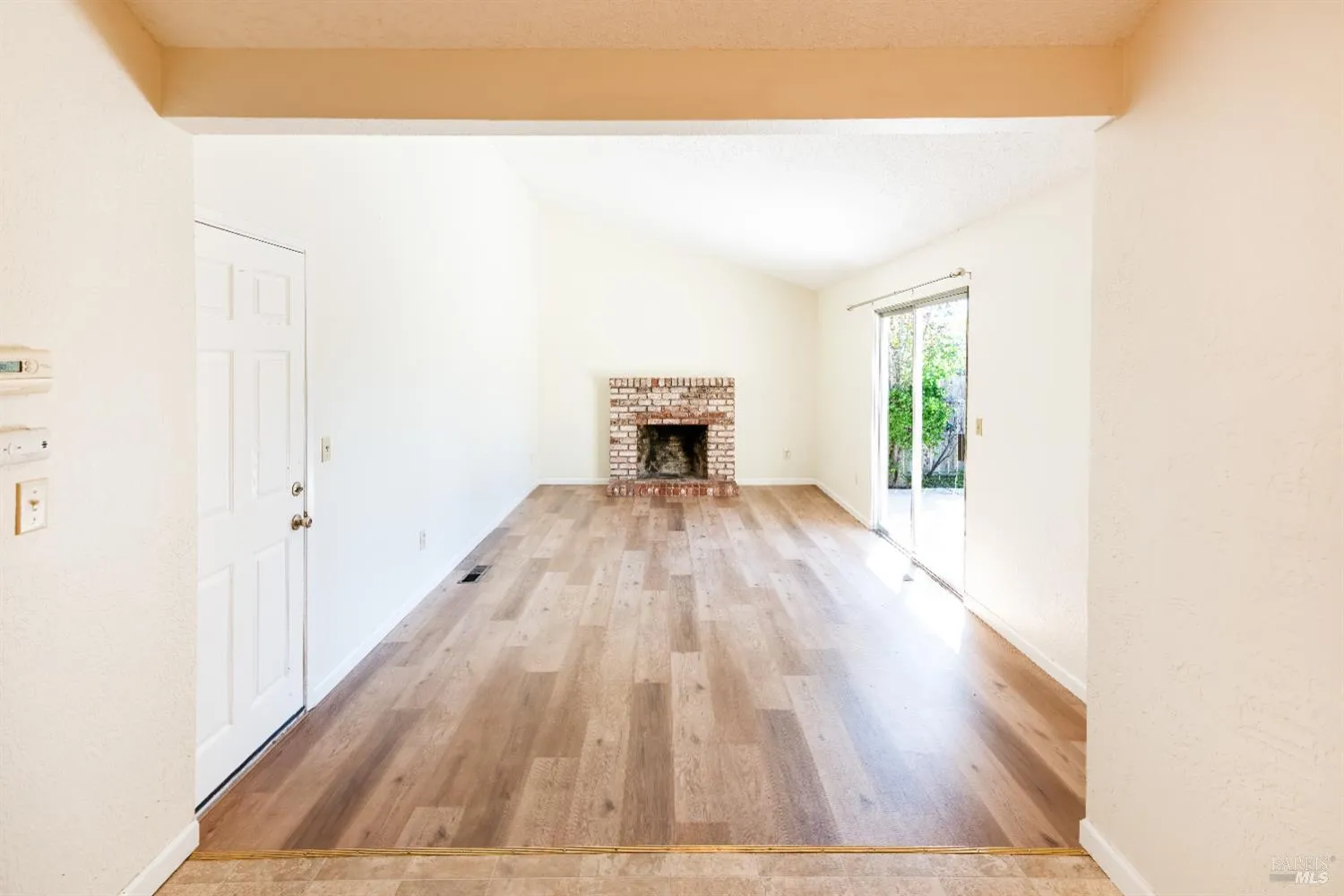 Welcome to this spacious and light-filled 4-bedroom 2-bath home. Bring your designer’s touch! The home features vinyl wood floors in all of the rooms except in the kitchen, baths and entryway. The living room has cathedral ceilings, while the cozy family room includes a charming fireplace and seamlessly connects to the kitchen and dining area in a semi-open layout. The family room sliding glass door leads to a generous cement patio. The primary bedroom offers its own en-suite bathroom and direct access to the backyard via another sliding glass door. The patio, newly installed just a year ago, provides an ideal space for hosting gatherings or enjoying quiet moments with family and friends.