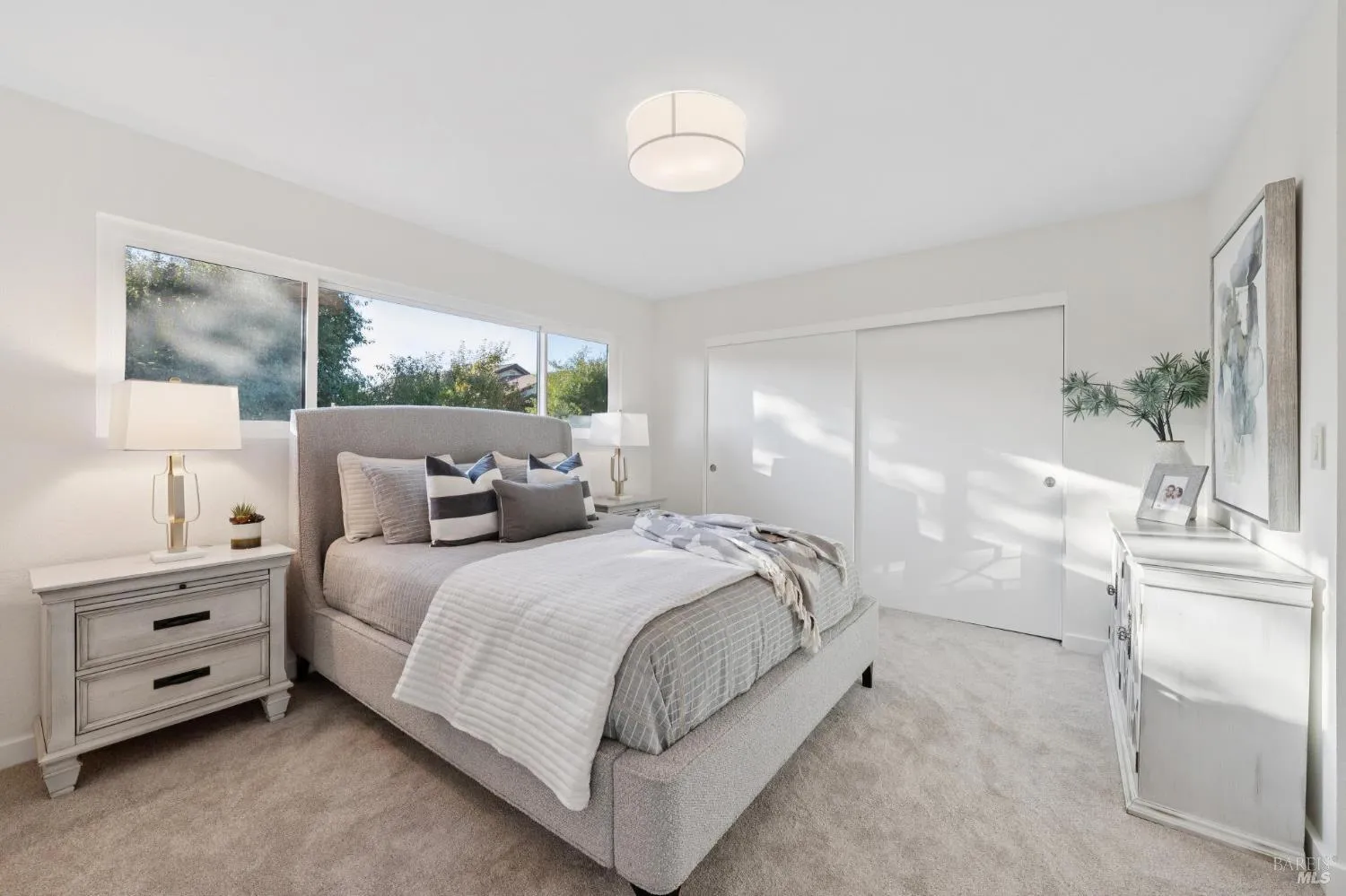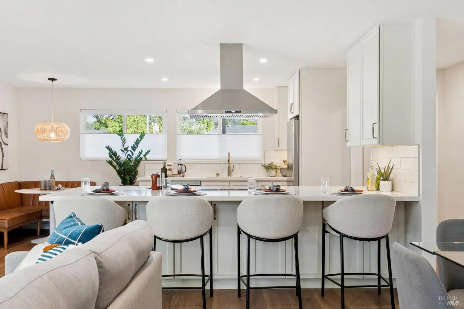 Welcome to 225 Mountain View Drive, a sophisticated, fully renovated residence in an ideally located 55+ community, just minutes from the Healdsburg Plaza and the Russian River. This single-level 2-bedroom, 2-bath home (1,286 sq ft) blends modern comfort with timeless elegance. The reimagined kitchen features quartz countertops, soft-close cabinetry, a peninsula with bar seating, an induction range, a French door refrigerator, and a whisper-quiet dishwasher. Both bathrooms showcase refined tile surrounds, quartz countertops, and champagne bronze fixtures. Durable luxury vinyl plank flooring extends throughout, paired with soothing interior hues, modern baseboards, and contemporary dimmable lighting. Outside, a private fenced yard with a covered patio and refreshed landscaping creates a serene retreat, with Fitch Mountain views framed from the kitchen. Milgard Low-E windows and sliders, a 2025 roof, and updated HVAC elevate efficiency and peace of mind. Residents enjoy exclusive access to pools, a clubhouse, and scenic riverside trails, all moments from Healdsburg’s celebrated restaurants, galleries, and shops.