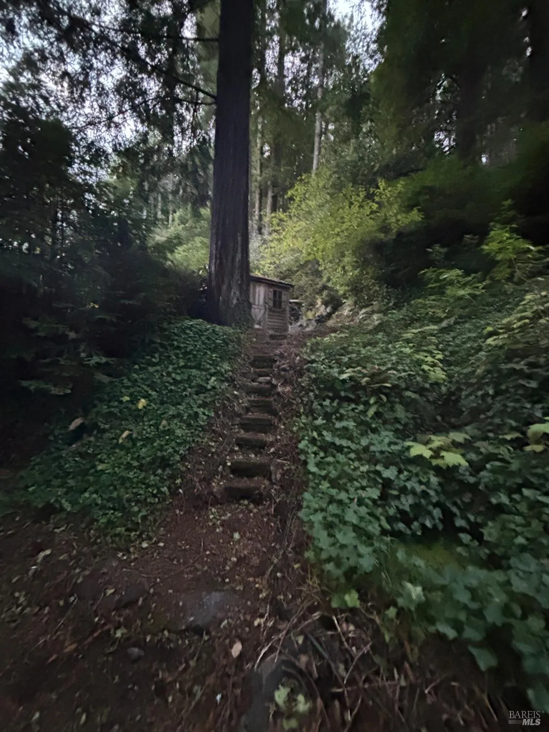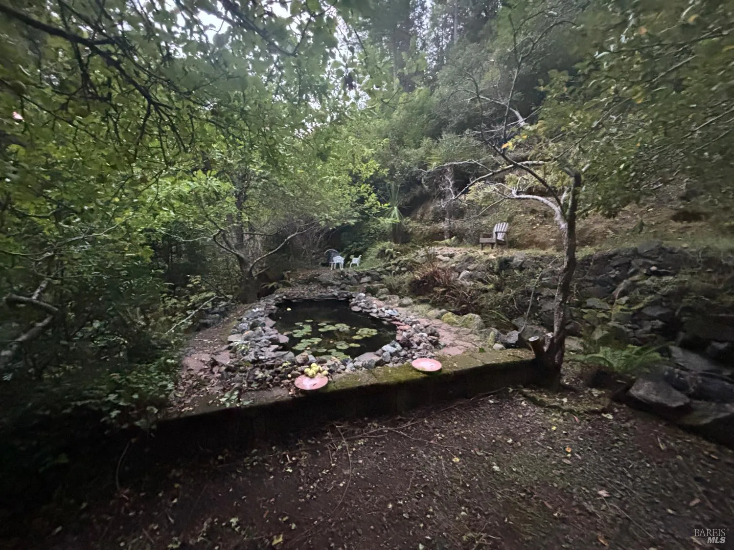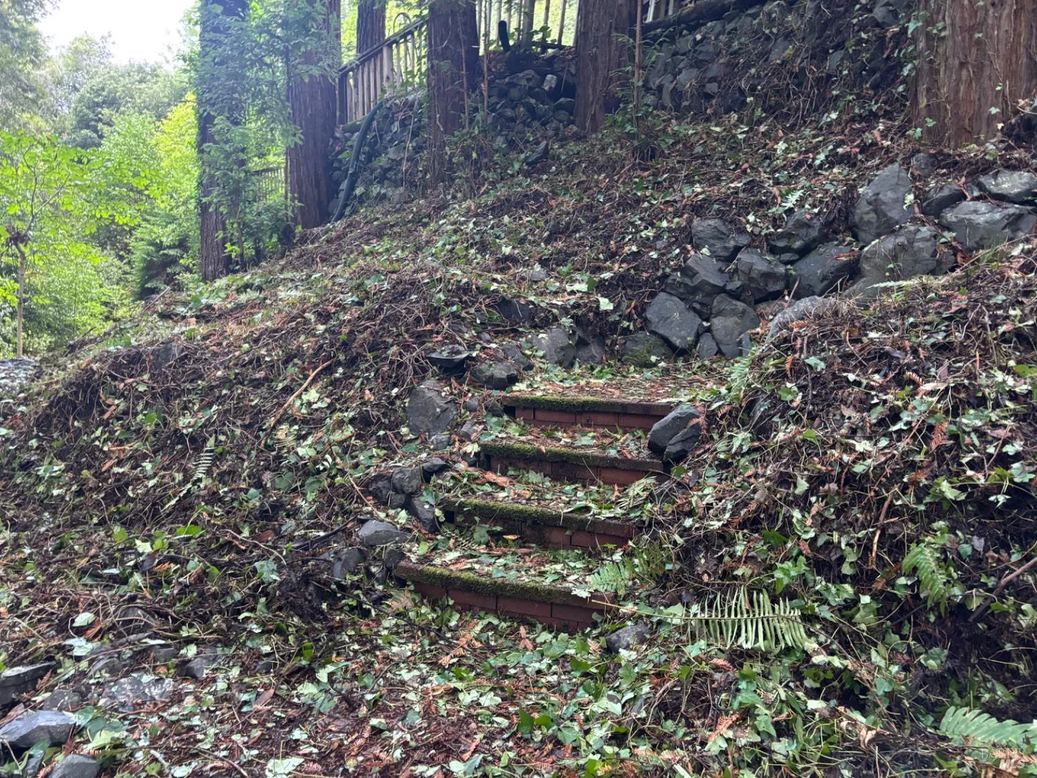 Oasis in the Redwoods! Privacy galore, once you get through your gates with 4.32 acres of Redwood Trees on the side of a steep mountainside, trails throughout-they go way up the mountain, count 100’s of Redwood Trees that the buyer will own. This home has several flat, useable, terraced entertaining areas, lined with innate rock walls. Enjoy the quiet, peace and tranquility, perched just above some of your neighbors, with no one above you. Ferns galore, towering Redwoods, water seeping off of the hillside. There is an eight foot deep rocked pond in front of the house. Needs a lot of work, heavy fixer, needs a new roof and outside stairs, PLUS the kitchen and both bathrooms need remodeling, it needs new floor coverings and there is quite a bit of dry rot near windows and doors. Deck and railings also need repair. Then, however, you will have a great retreat/home that you can treasure for years to come. Koi pond in the front, smaller ponds in the rocks. Better pictures by tomorrow, the front yard is not on a hill. It’s flat to the front door. Remarkable rock work throughout. Upside is a beautiful SFD or retreat, comps are in the $700k’s.